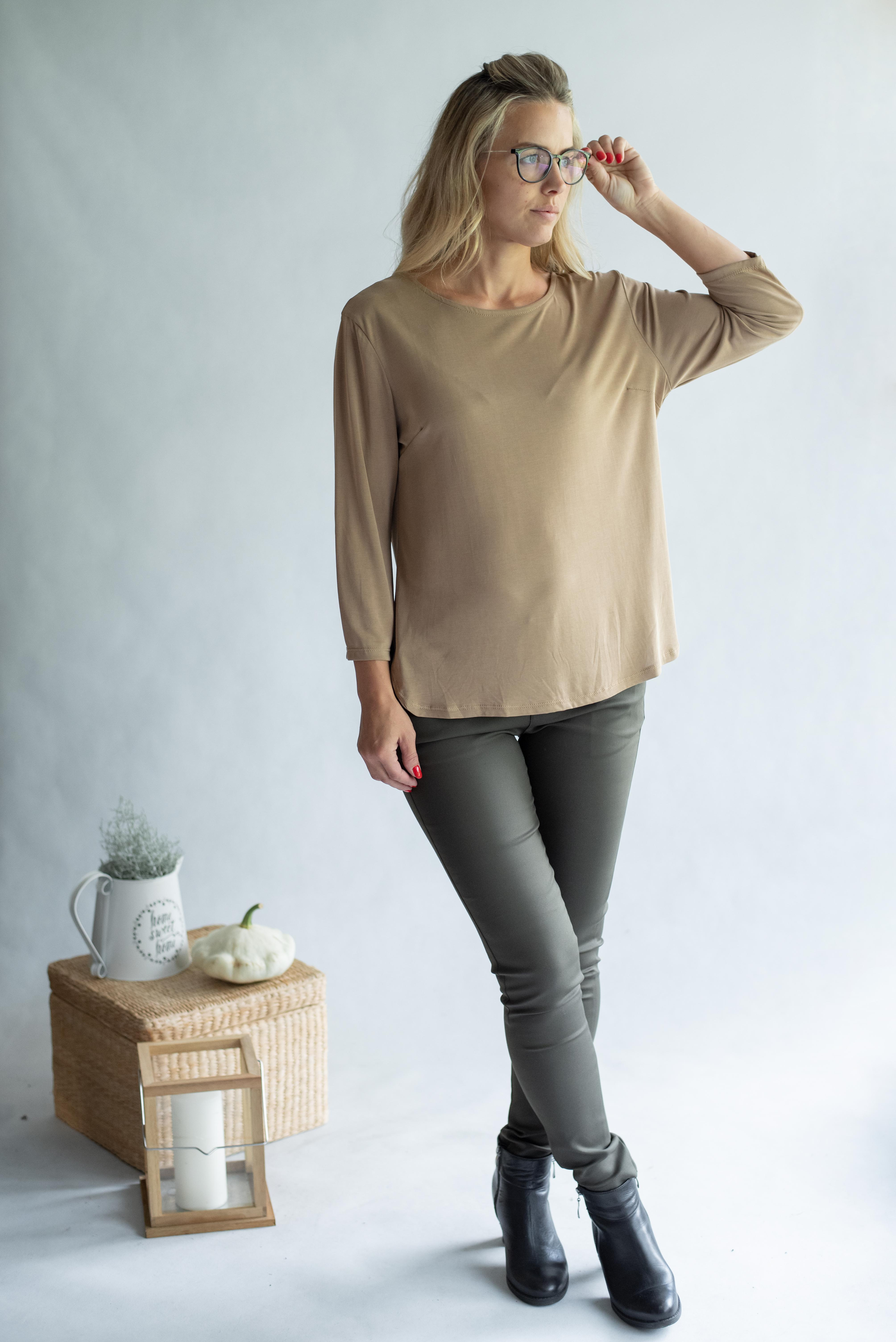 Halenka s kulatým výstřihem 3/4 rukáv , pro každodenní pohodlné nošení.