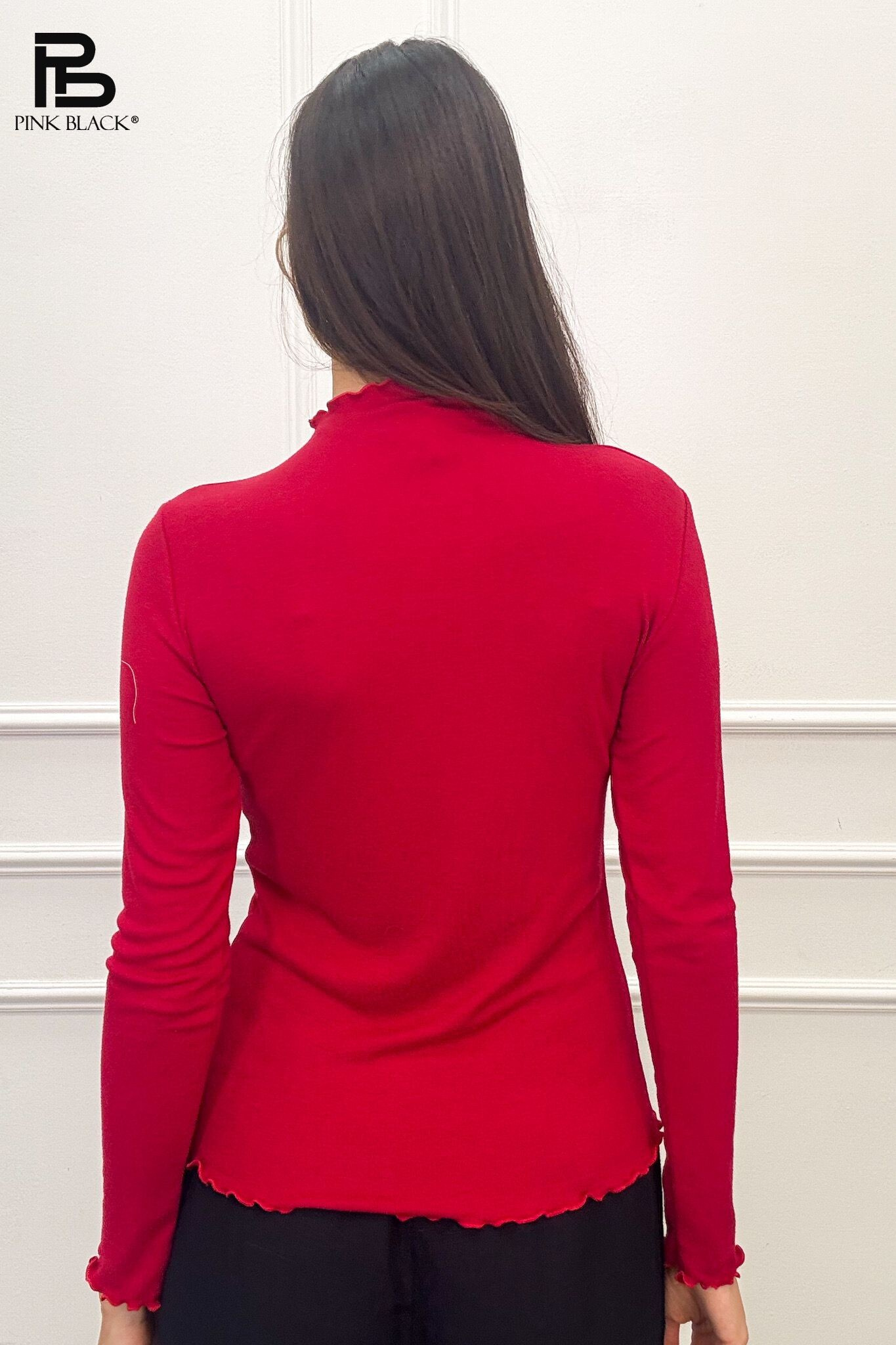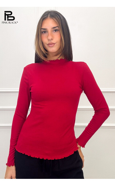 Elegantní halenka se stojáčkem. Halenka má drobné řasení v oblasti krku, rovněž rukávy a spodní část zakončena jemným řasením.