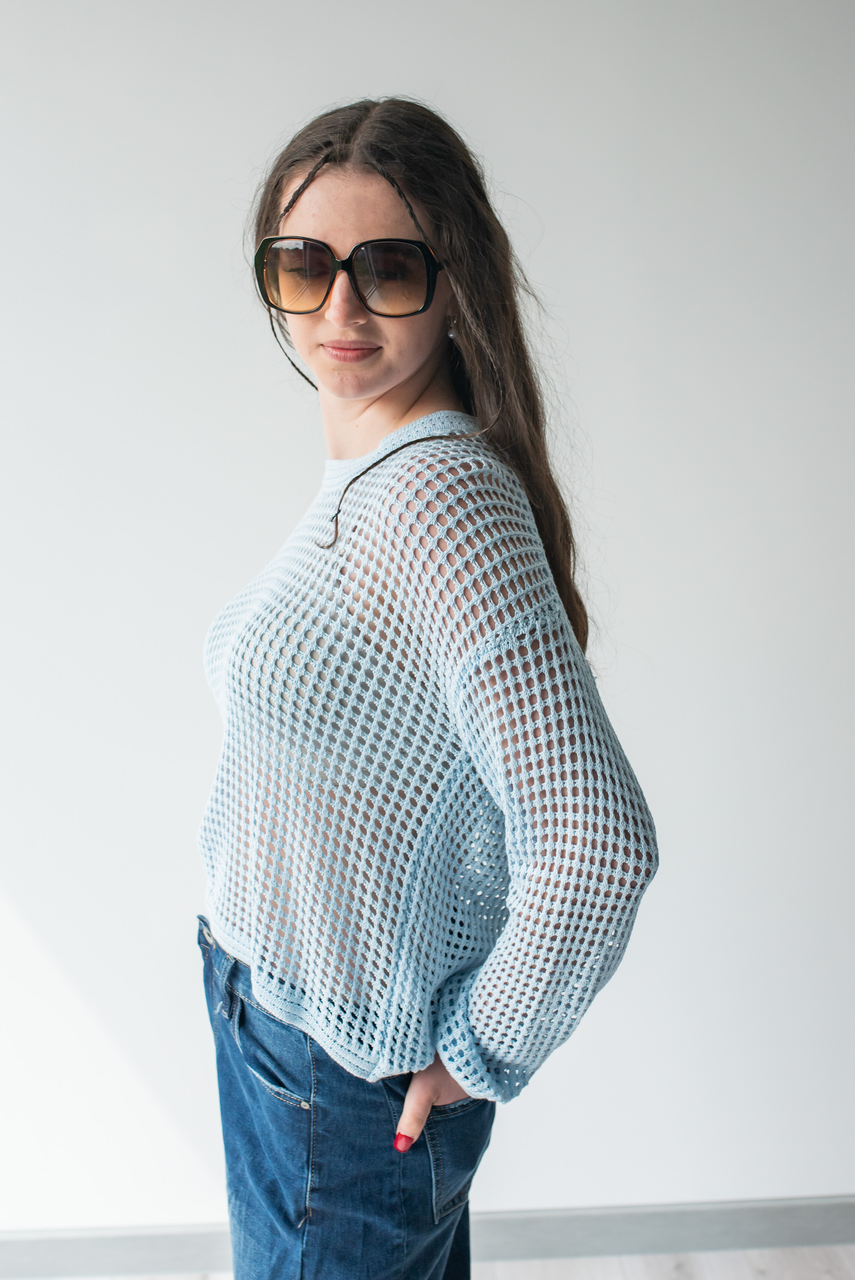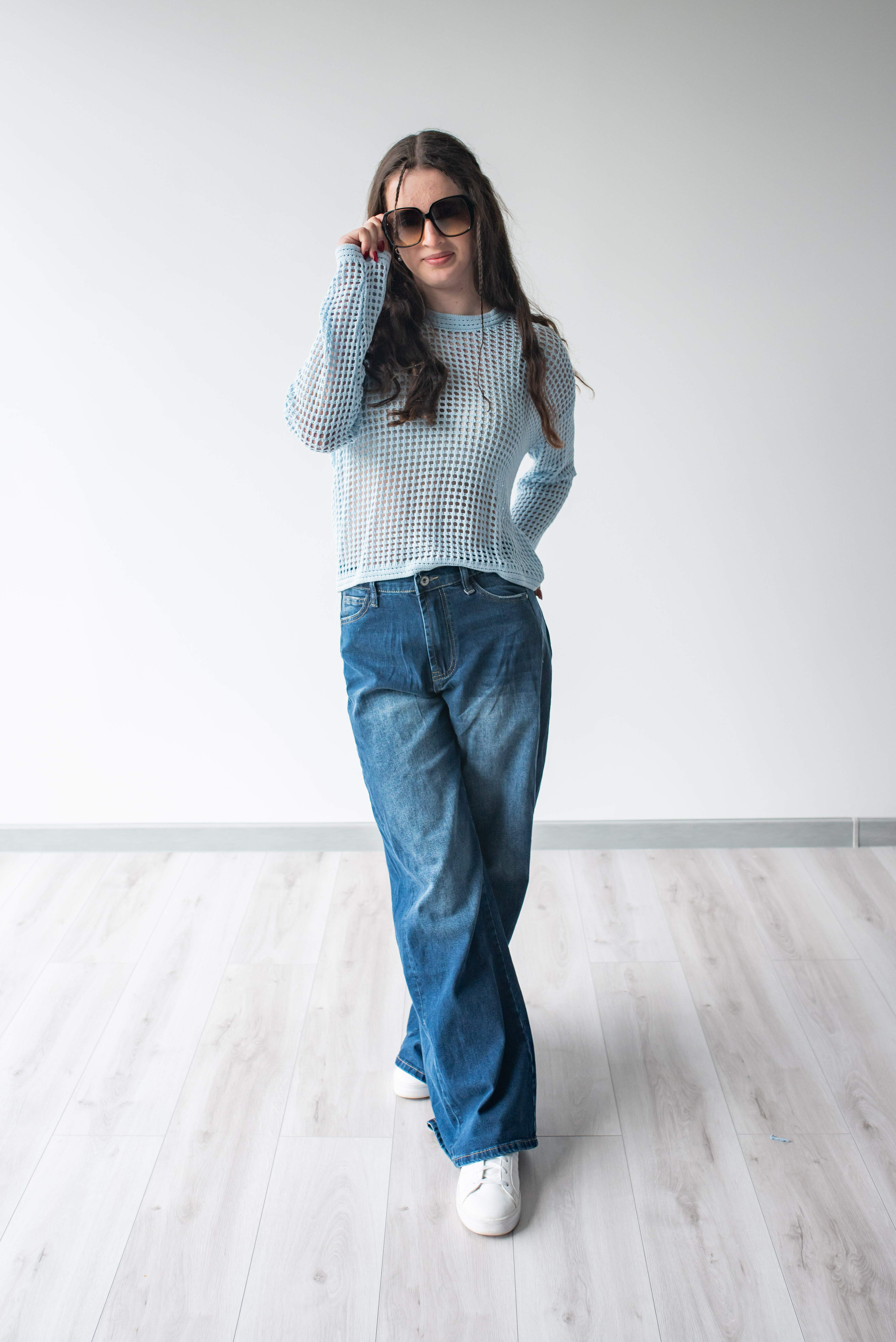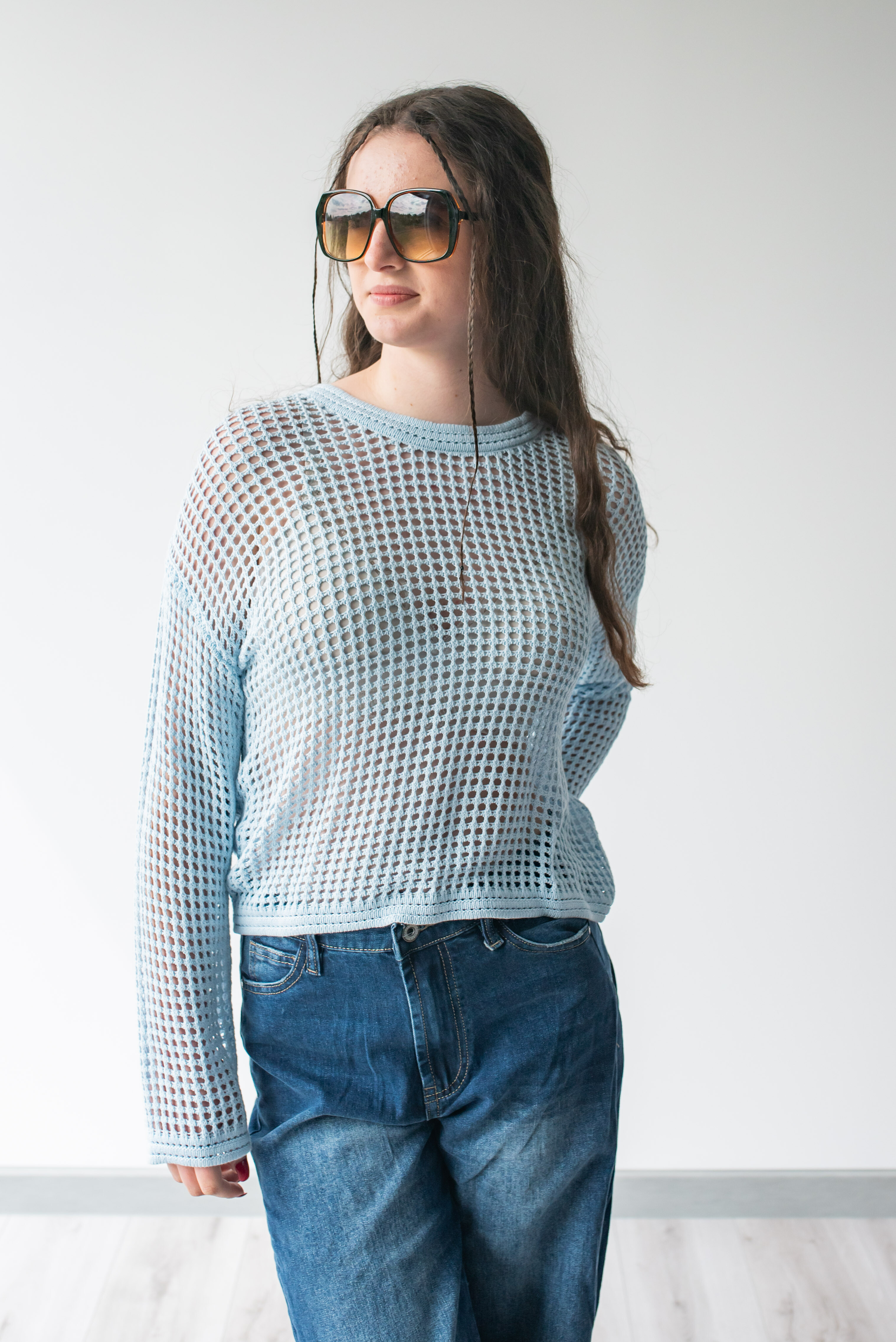 Módní úpletová halenka s dlouhým rukávem