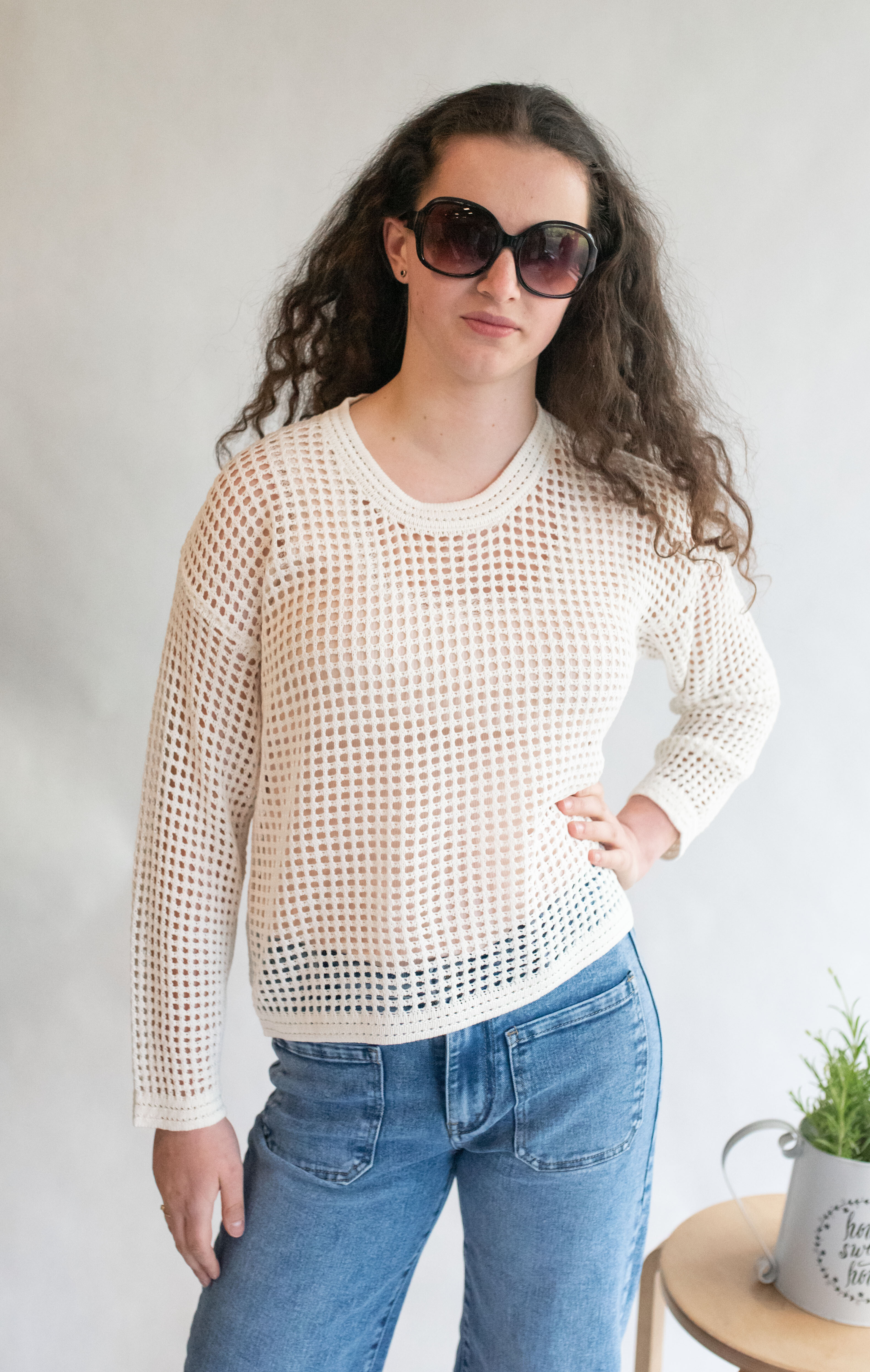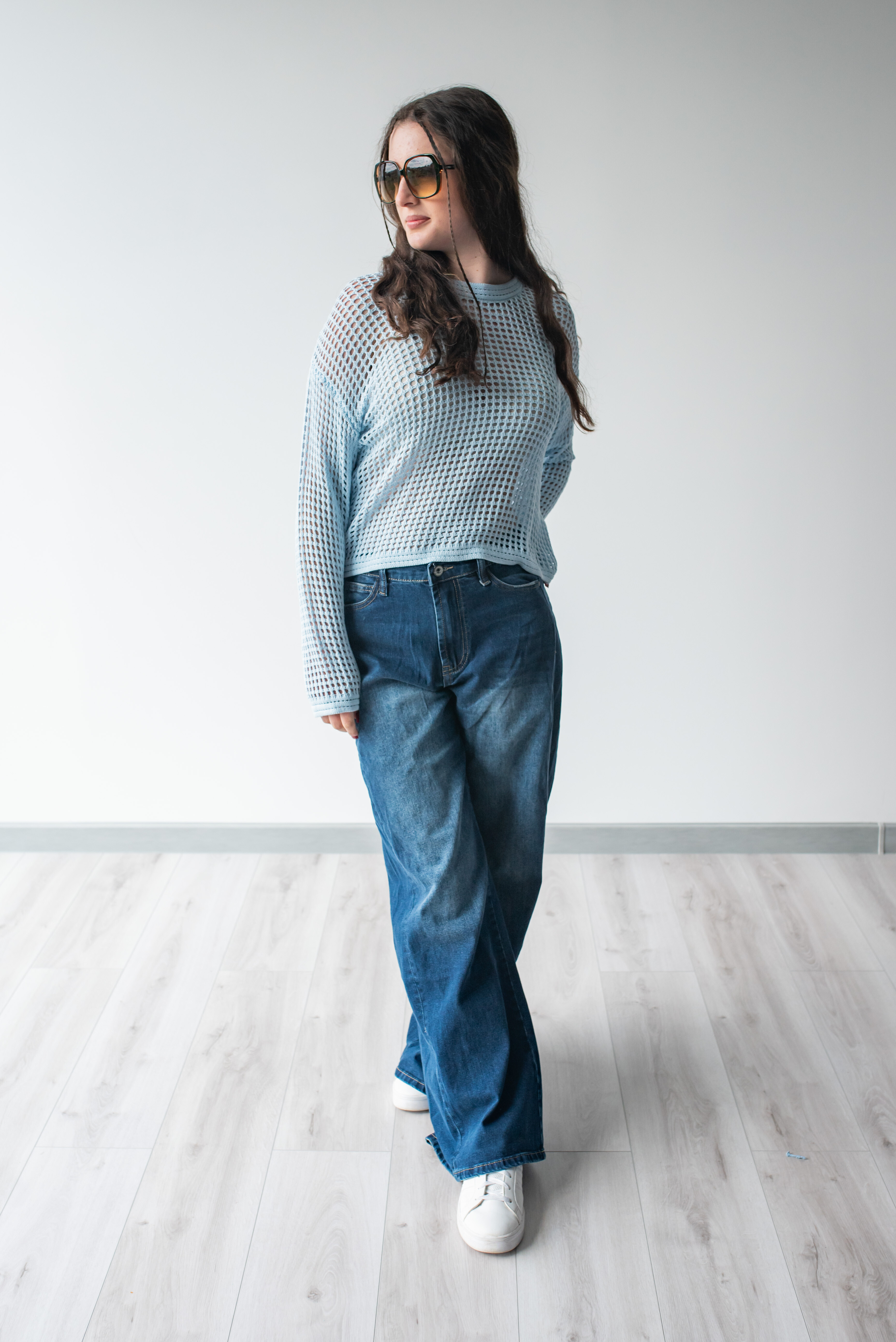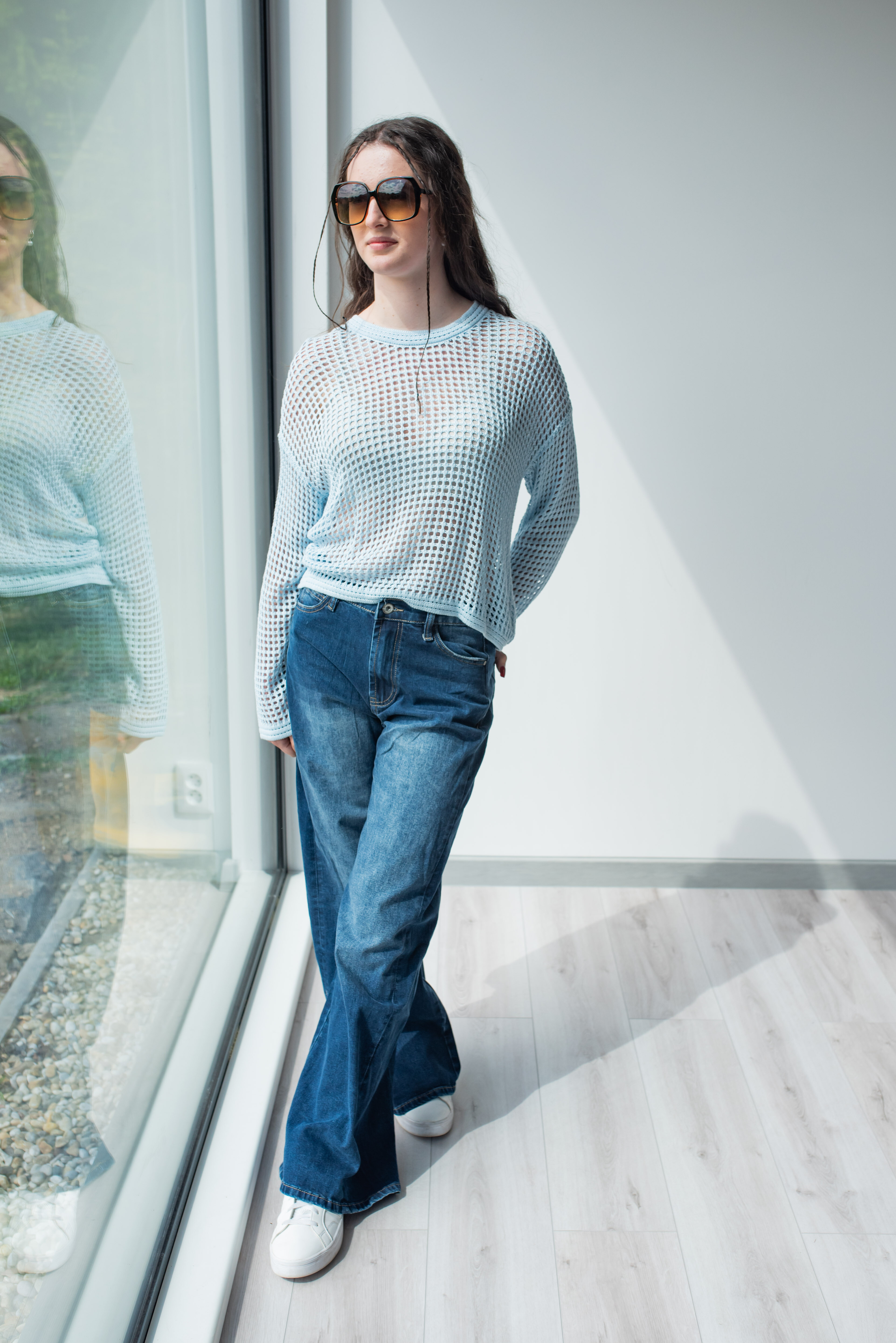 Módní úpletová halenka s dlouhým rukávem