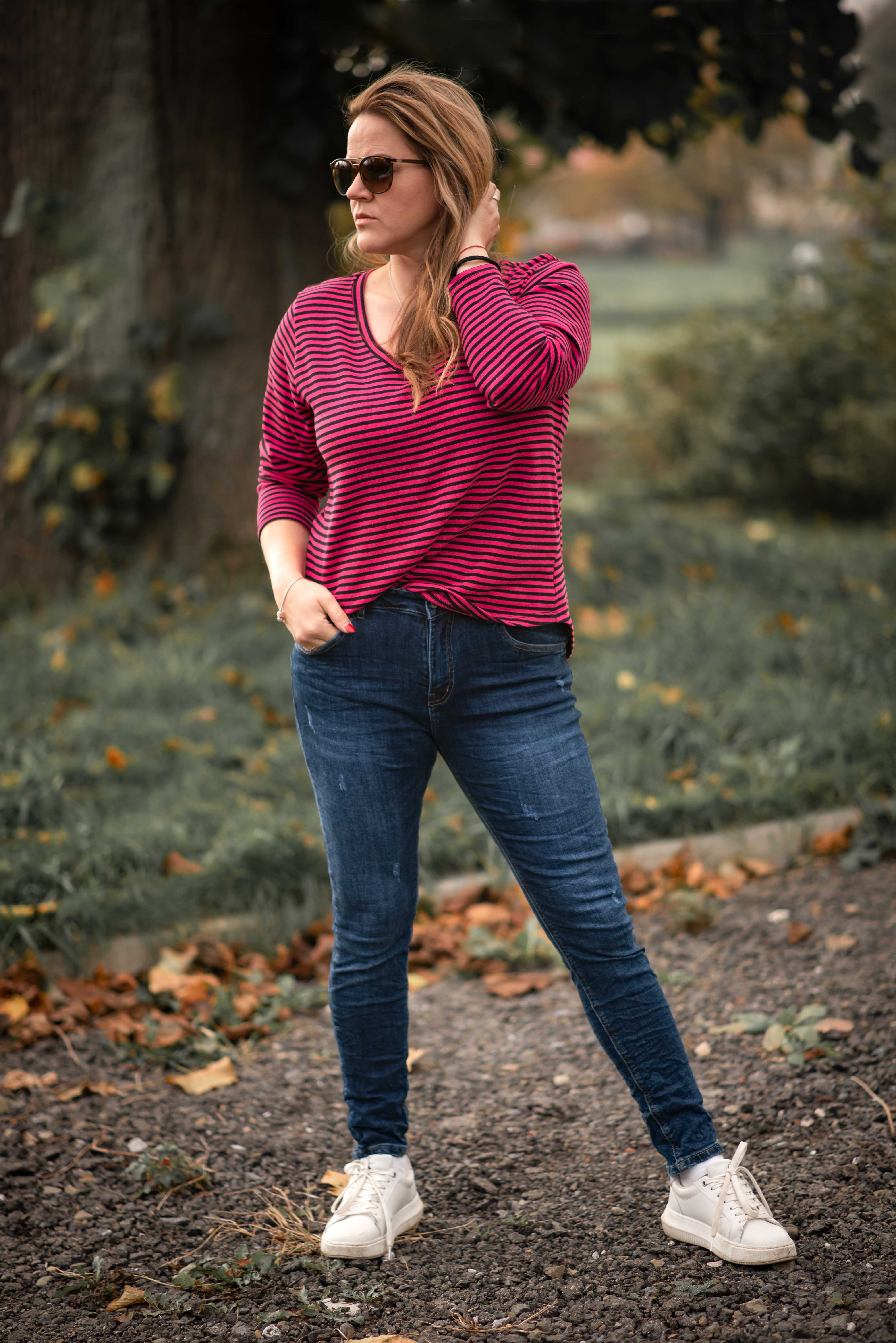 Módní dámská halenka s úpletového materiálu dlouhým rukávem a zdobením v zadní části