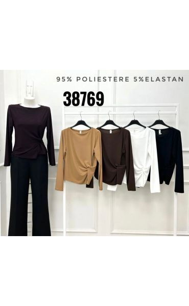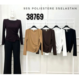 Elegantní halenka zavinovací s uzlíkem na boční straně. Halenka má dlouhý rukáv a kulatý výstřih.