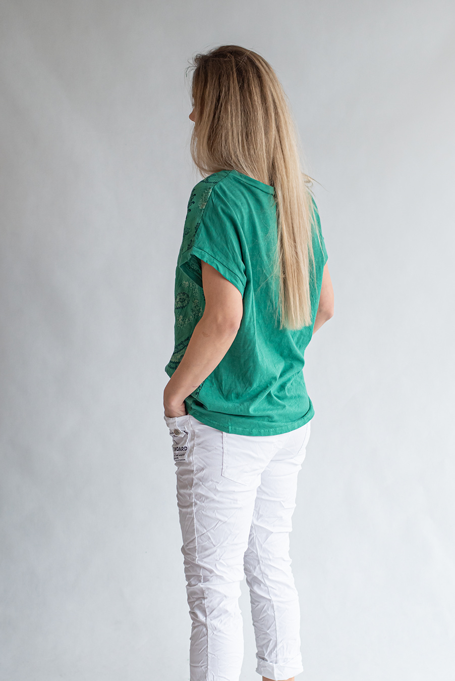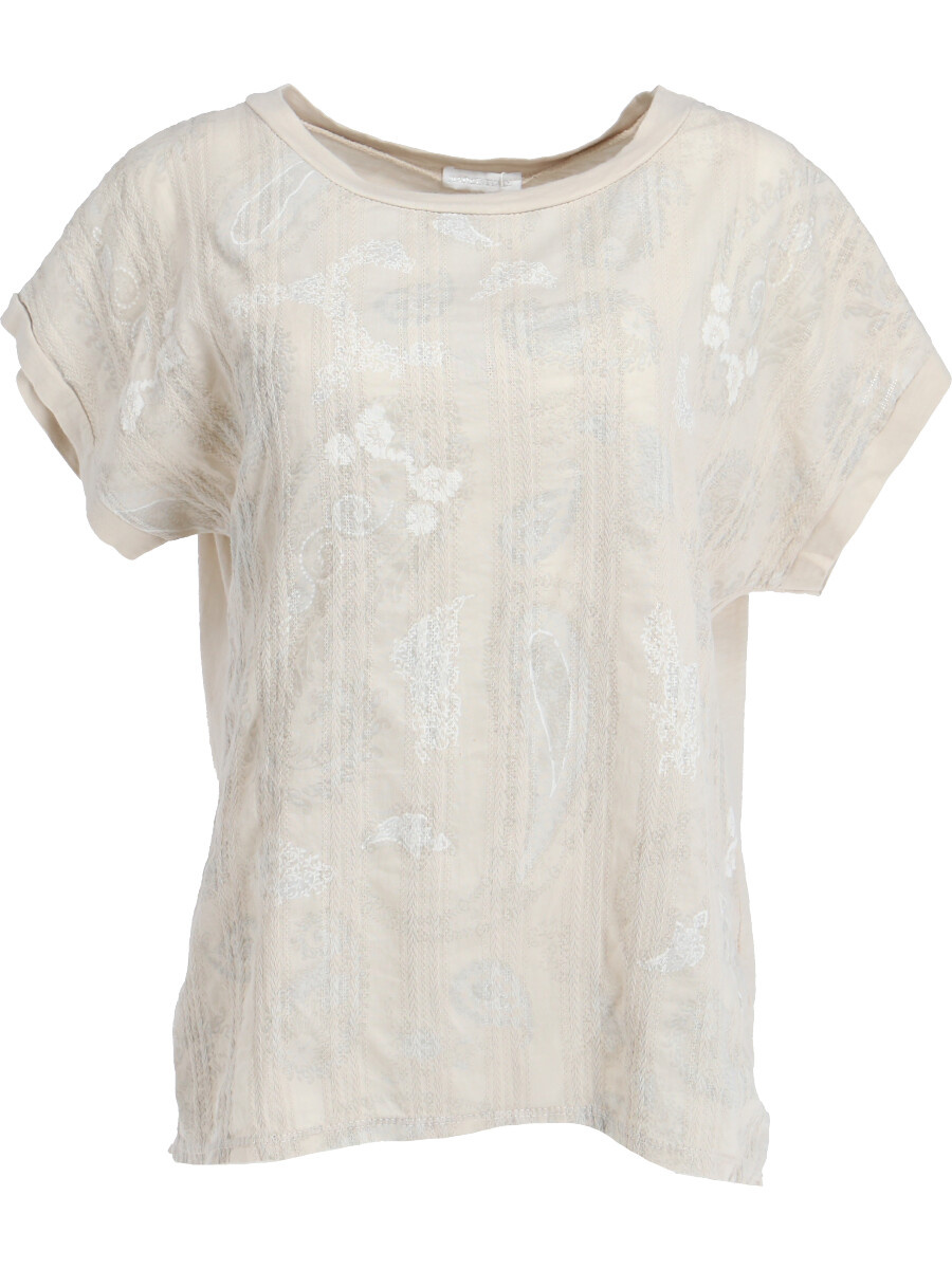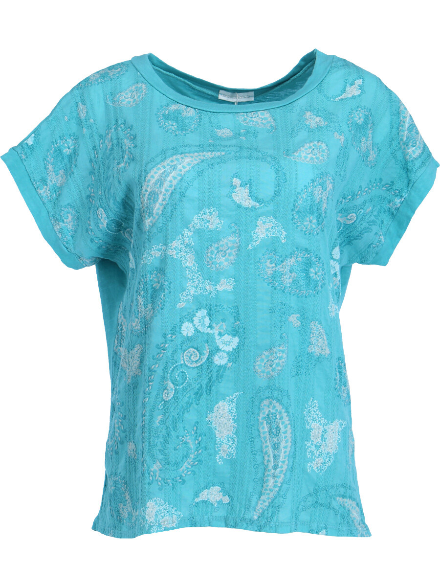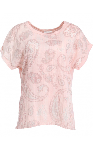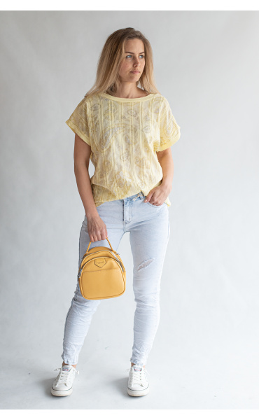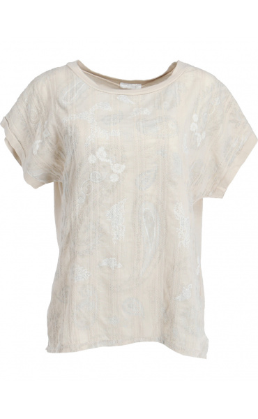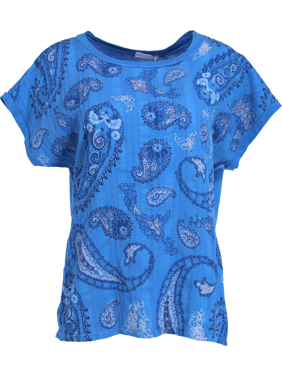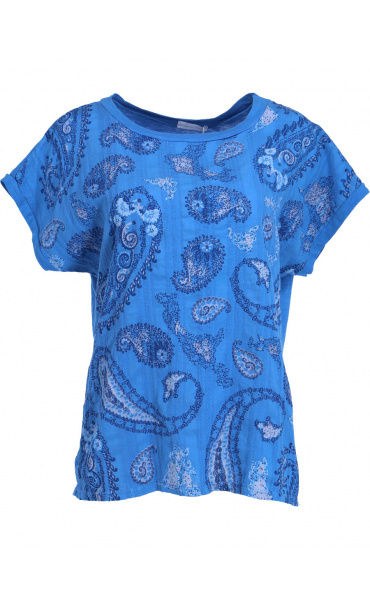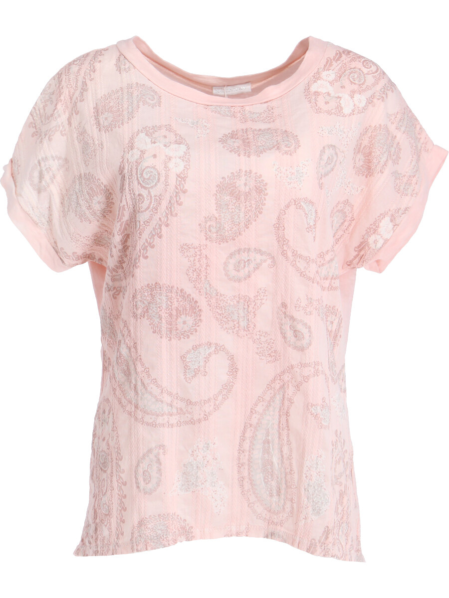 Módní dámská bavlněná halenka volnějšího střihu a krátkým rukávem.