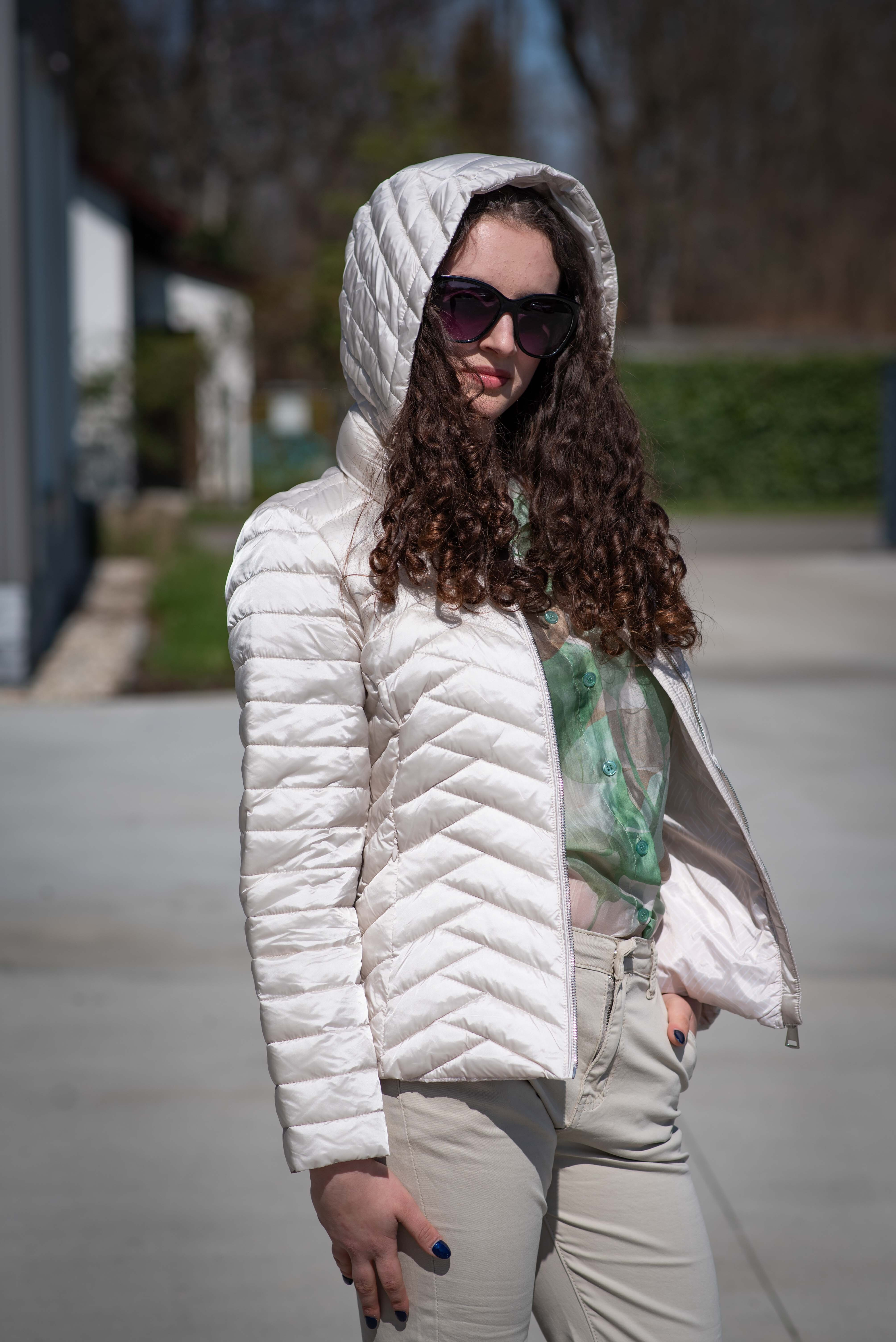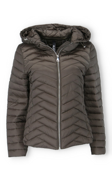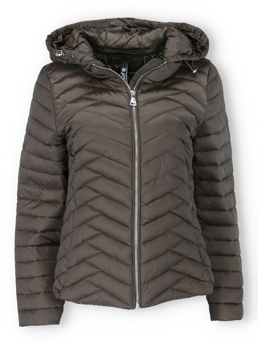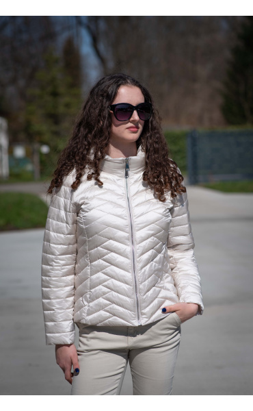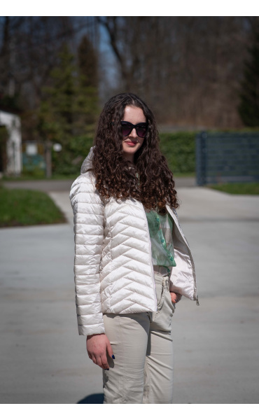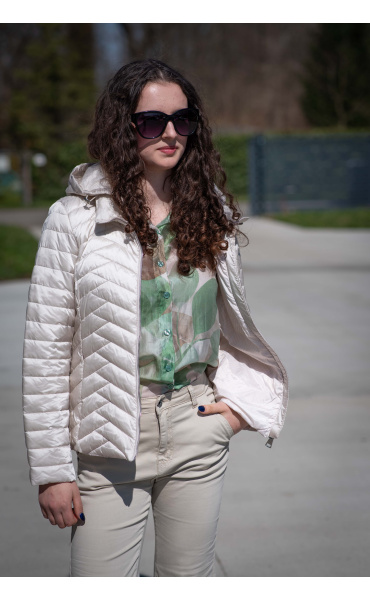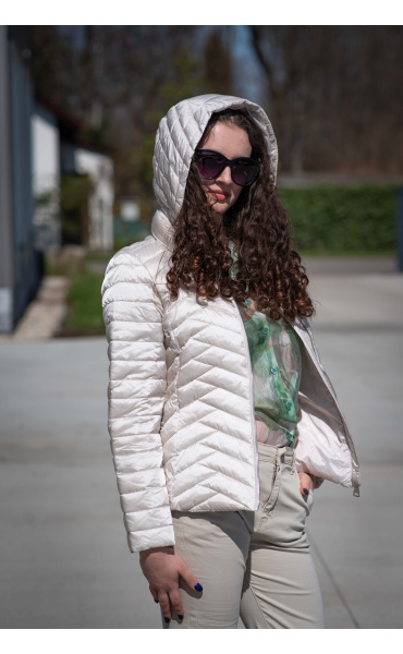 Dámská jarní bunda prošívaná krátká. Bunda má odnímatelnou kapuci a všité kapsy.