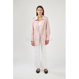 Jarní trenčkot s délkou pod zadek. Trenčkot má dvouřadé zapínaní na knoflíky a vázání v pase. Kabátek má všité kapsy po stranách a podšívku. Trendy kousek do Vašeho šatníku.