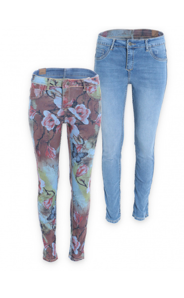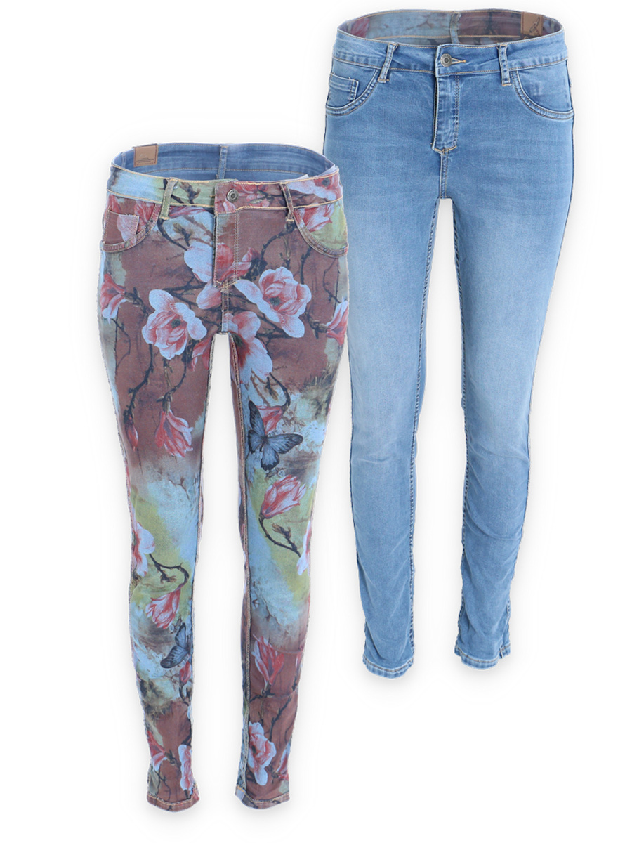 Módní oboustranná jeansové kalhoty, elegantní dobře sedící kalhoty s oboustranným designem.