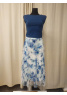 Elegantní společenské šaty s 3/4 rukávem , modrá vzorovaná