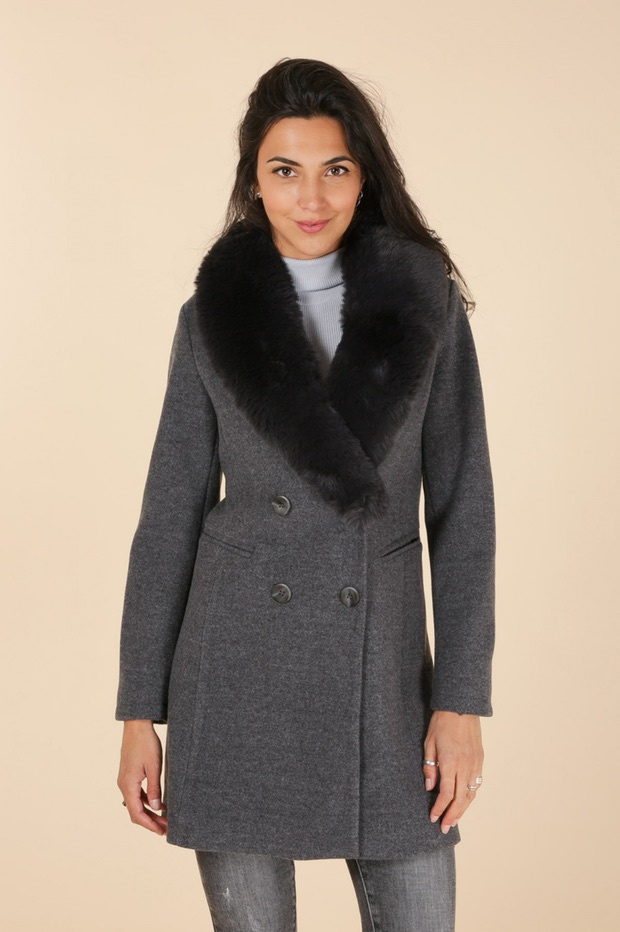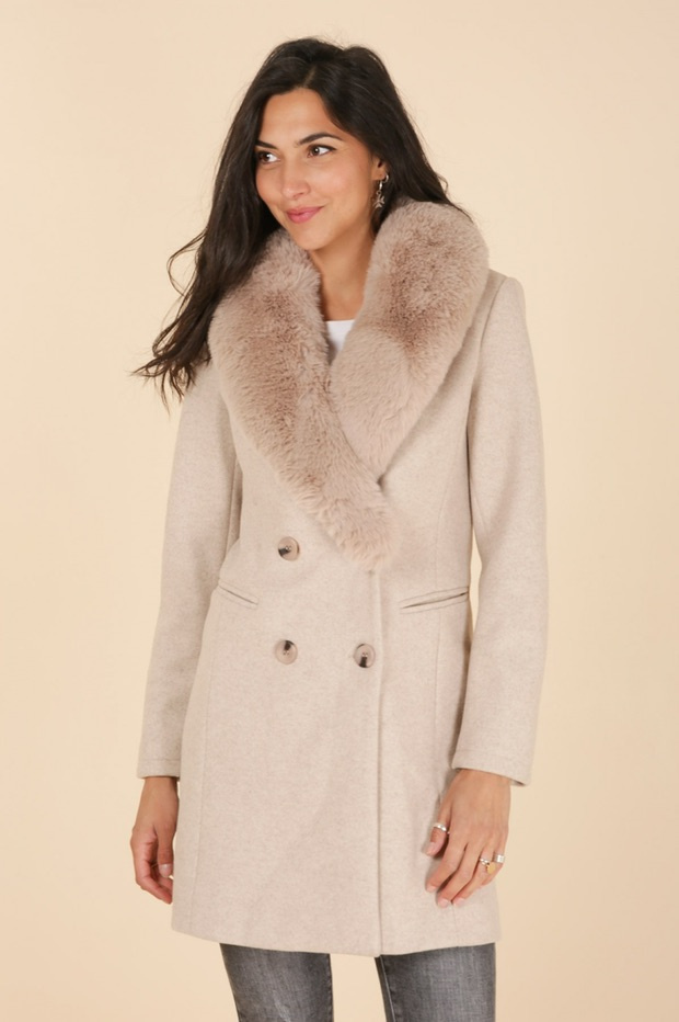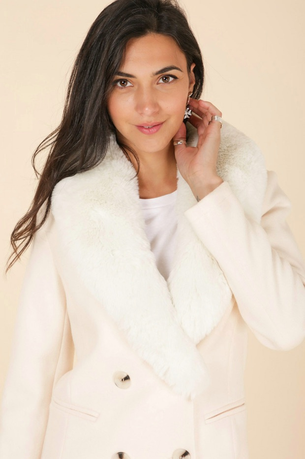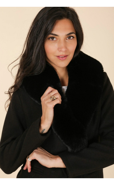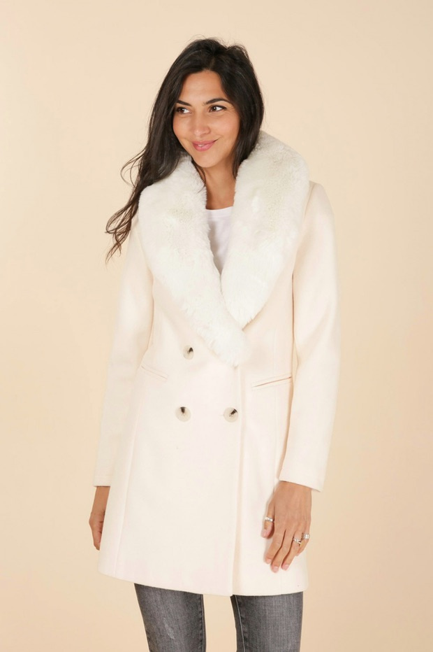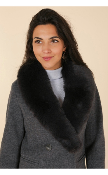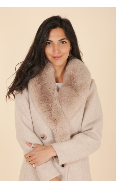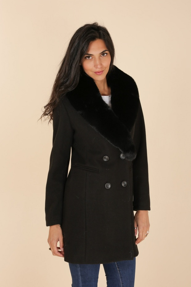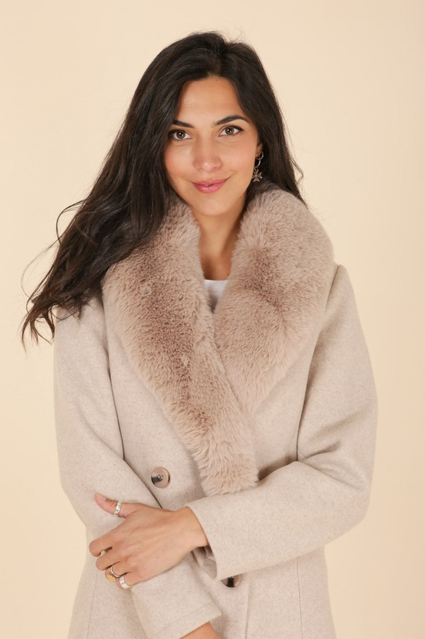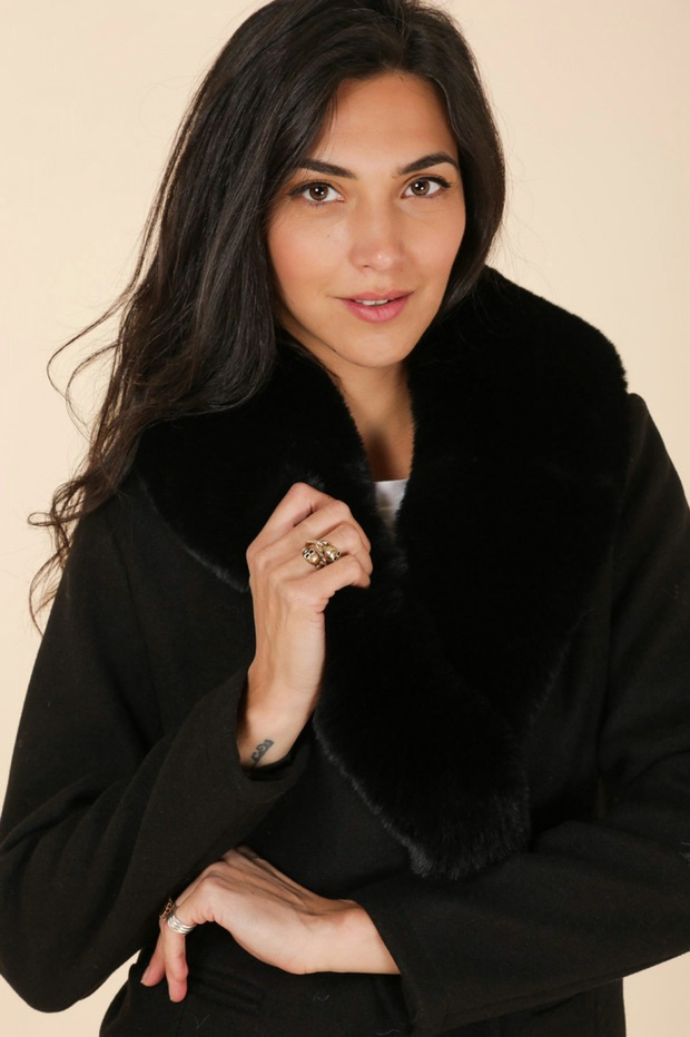 Módní kabát s elegantním kožešinovým límcem, francouzské značky Laura Jo