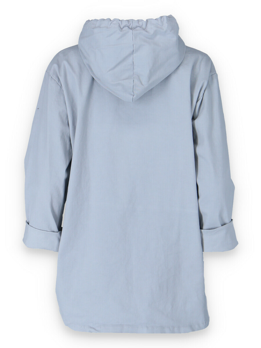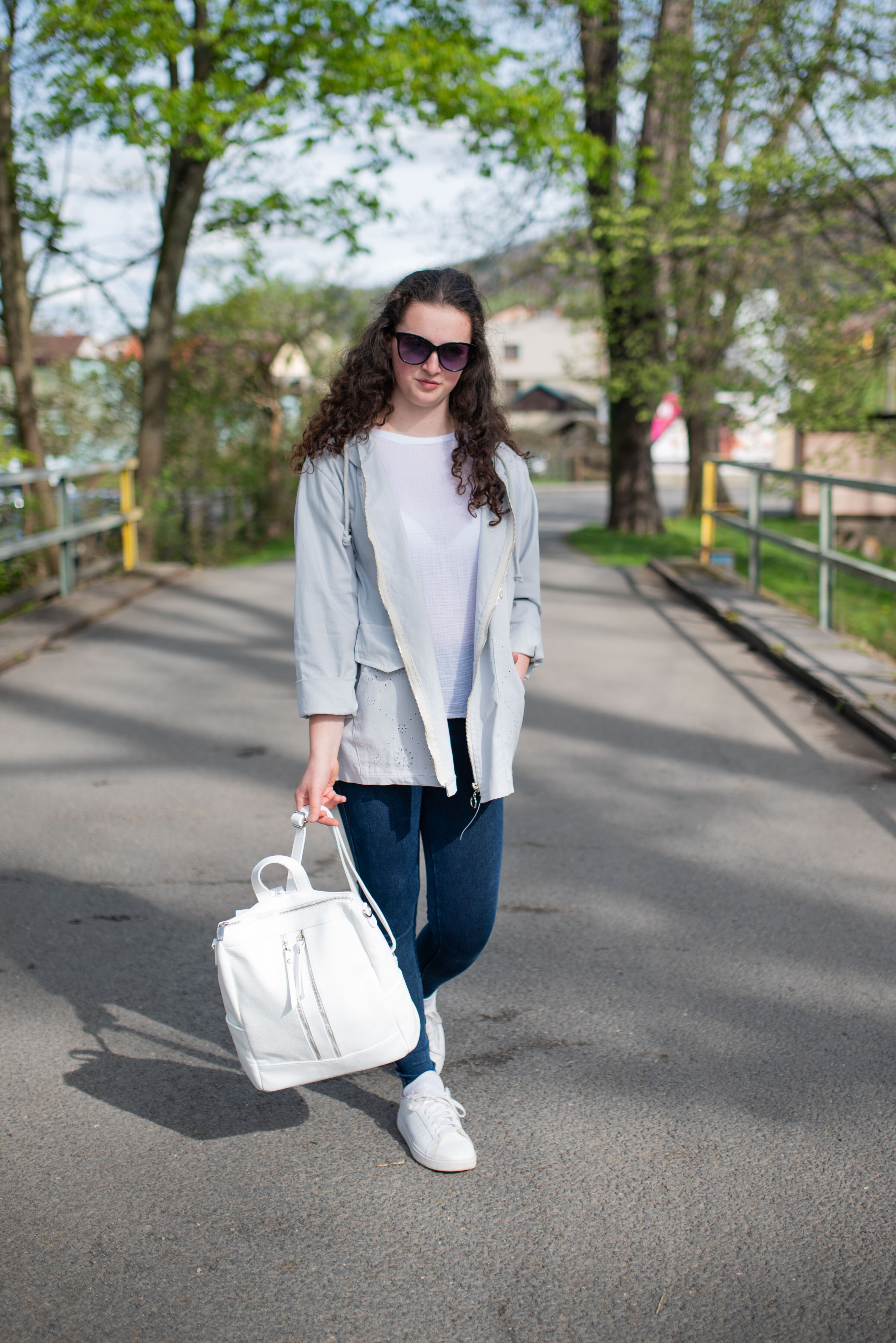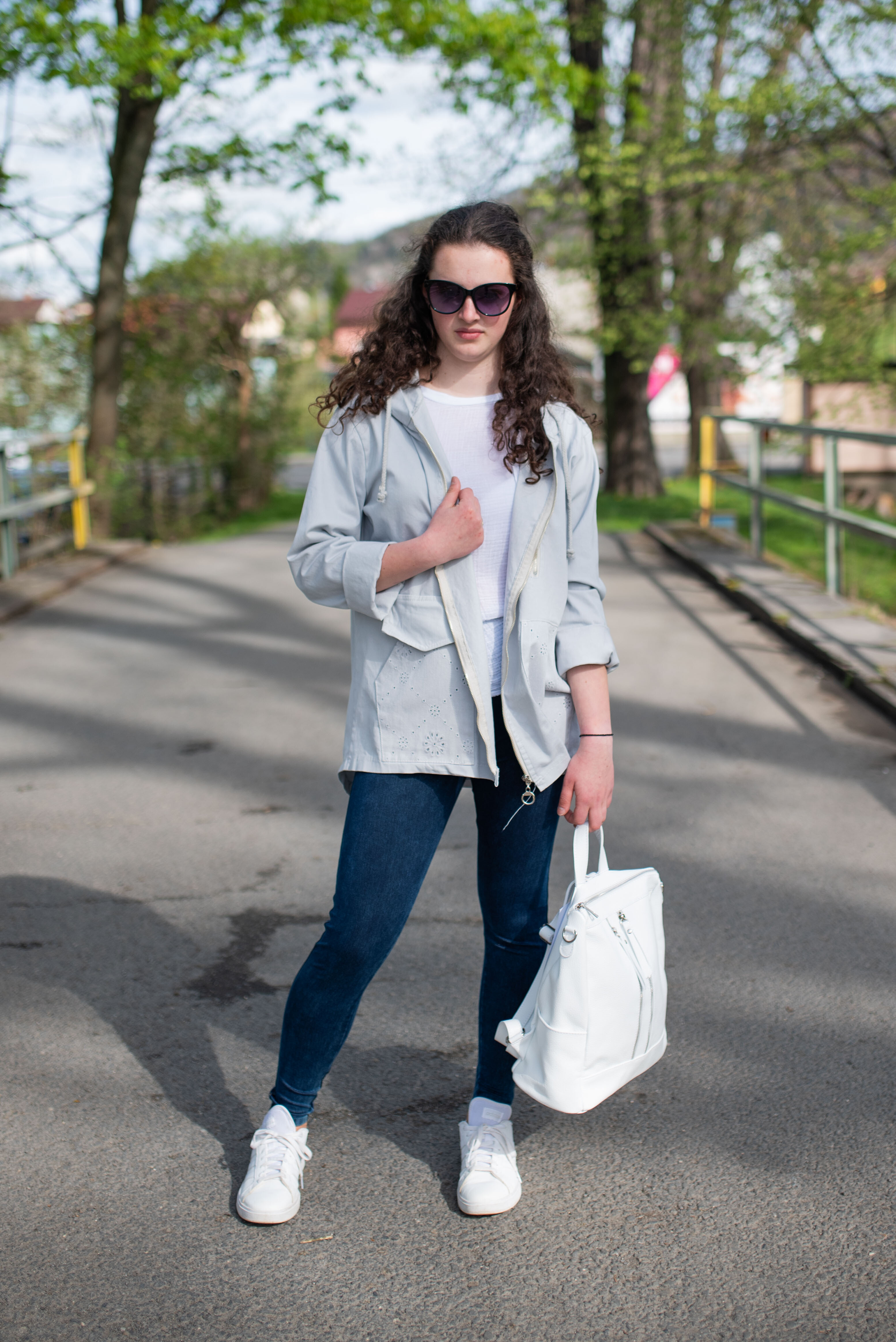 Lehká bavlněná jarní bunda/kabátek, s kapucí, přední kapsy, výšivky na kapsách