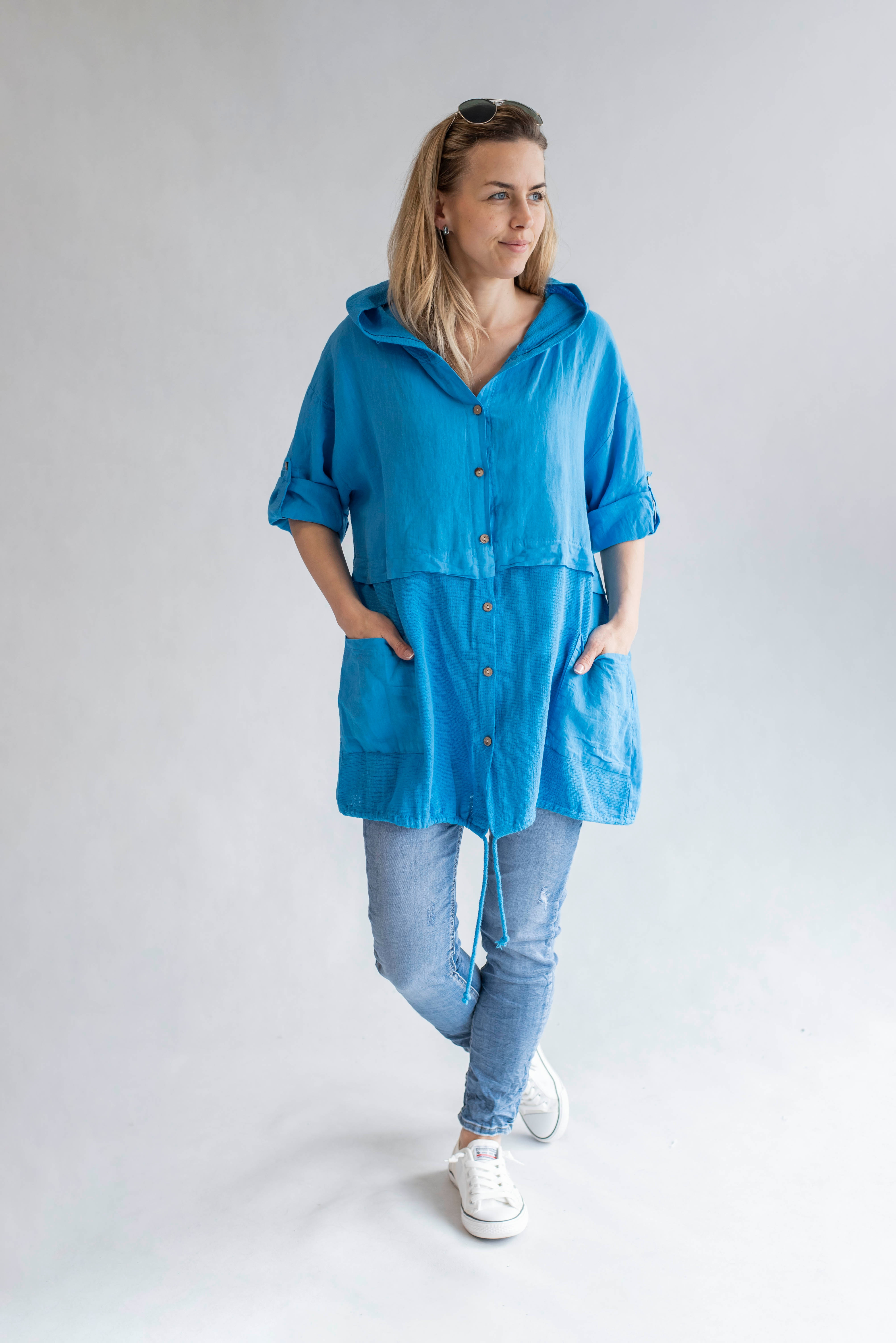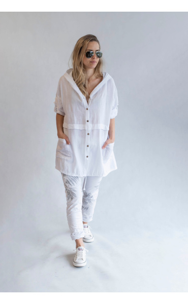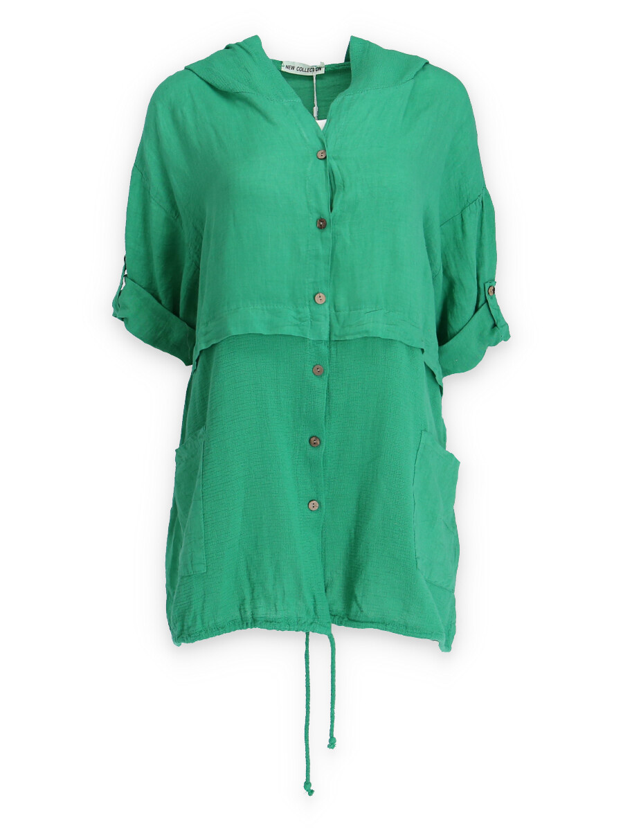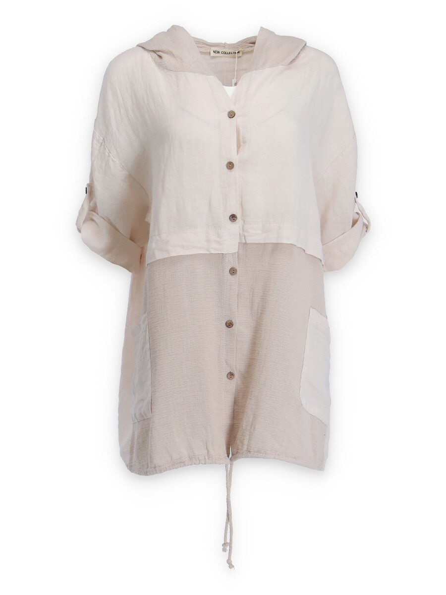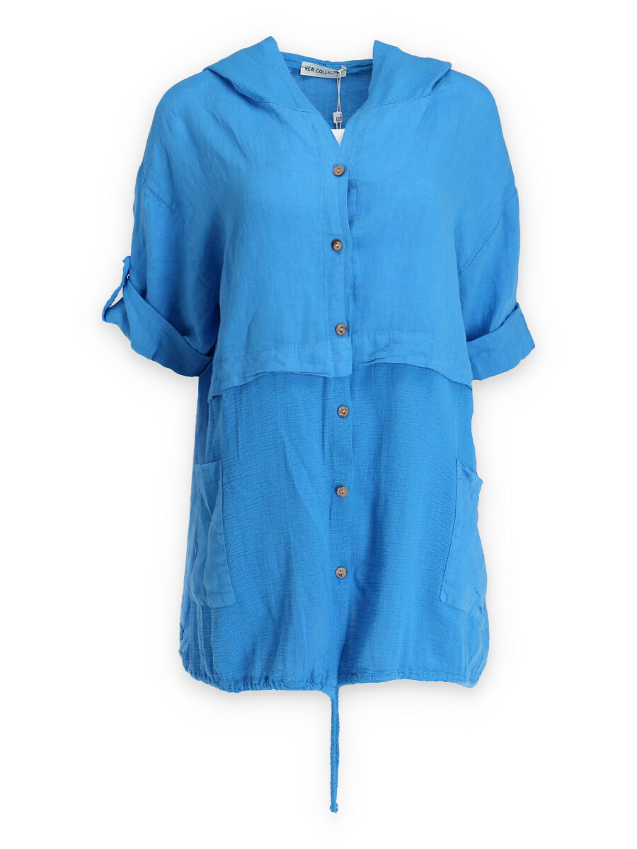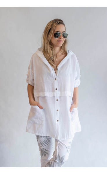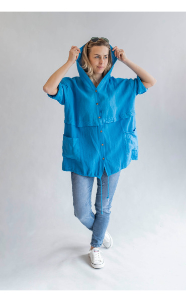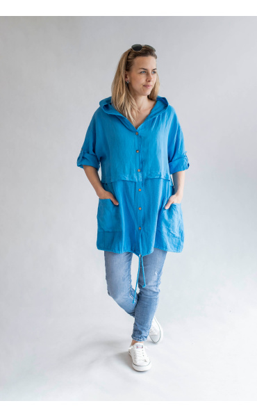 Lehká lněná jarní bunda/kabátek, na knoflíky, přední kapsy, ve spodní části šňůrka