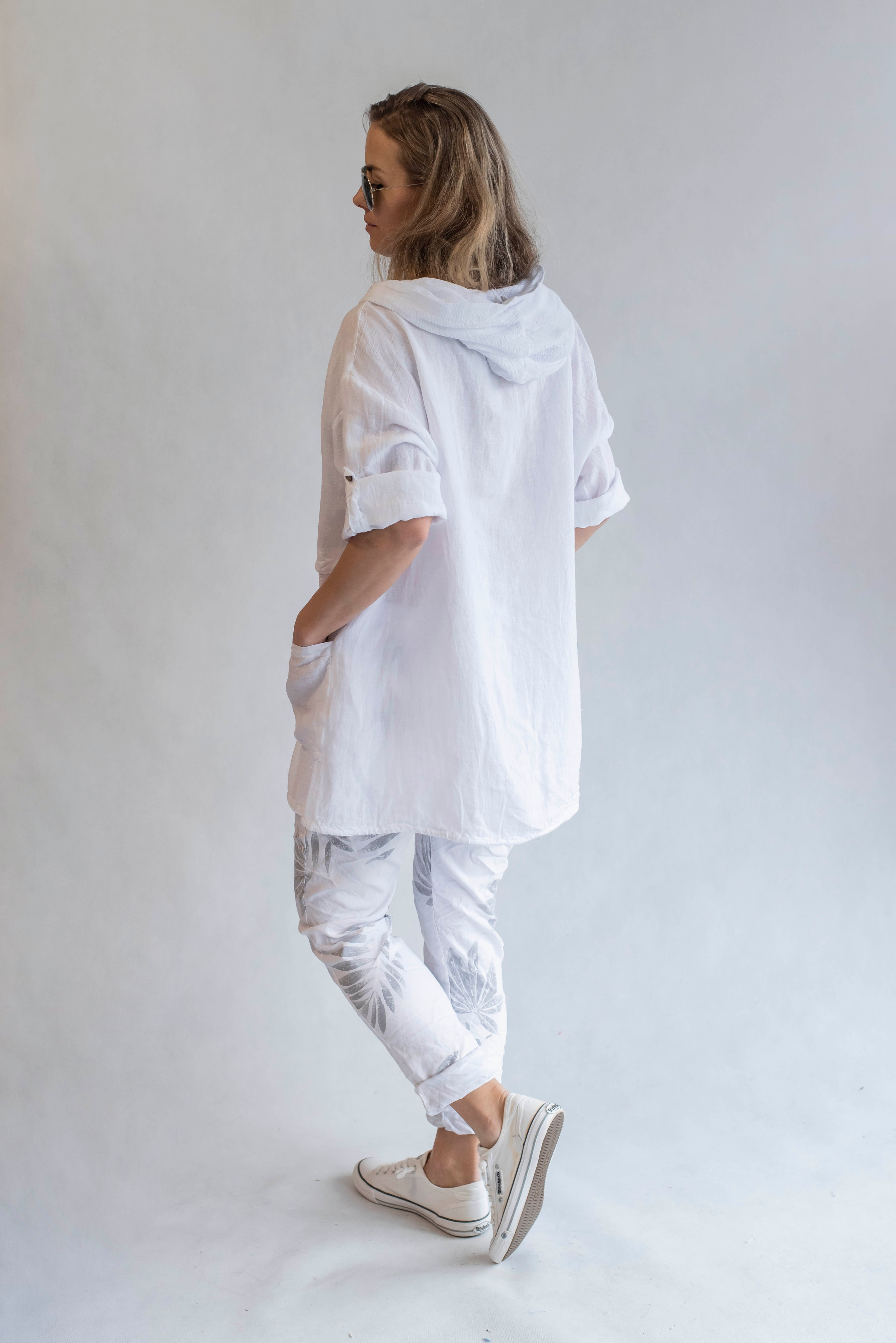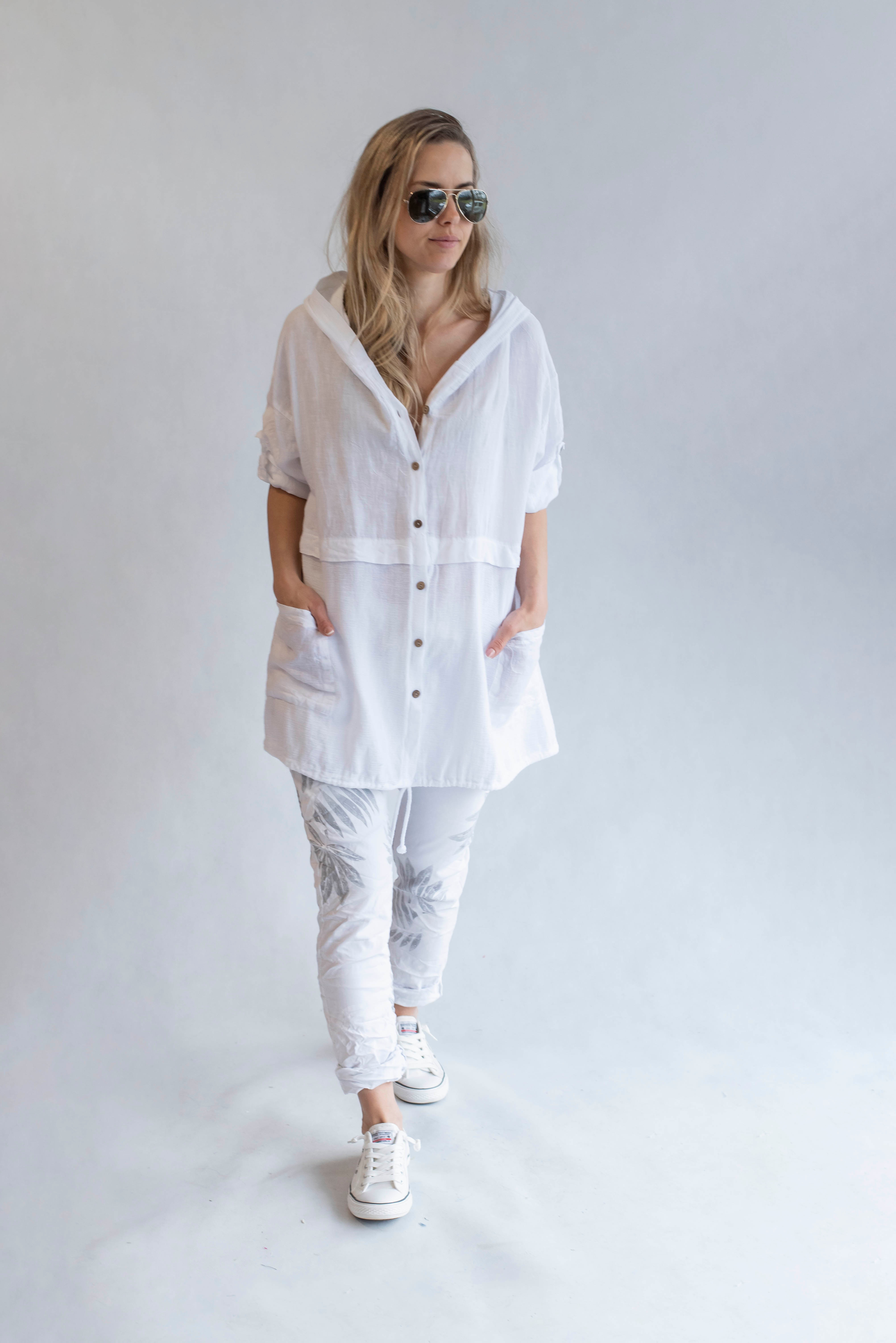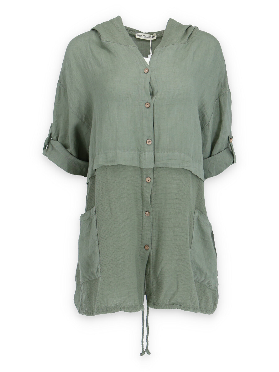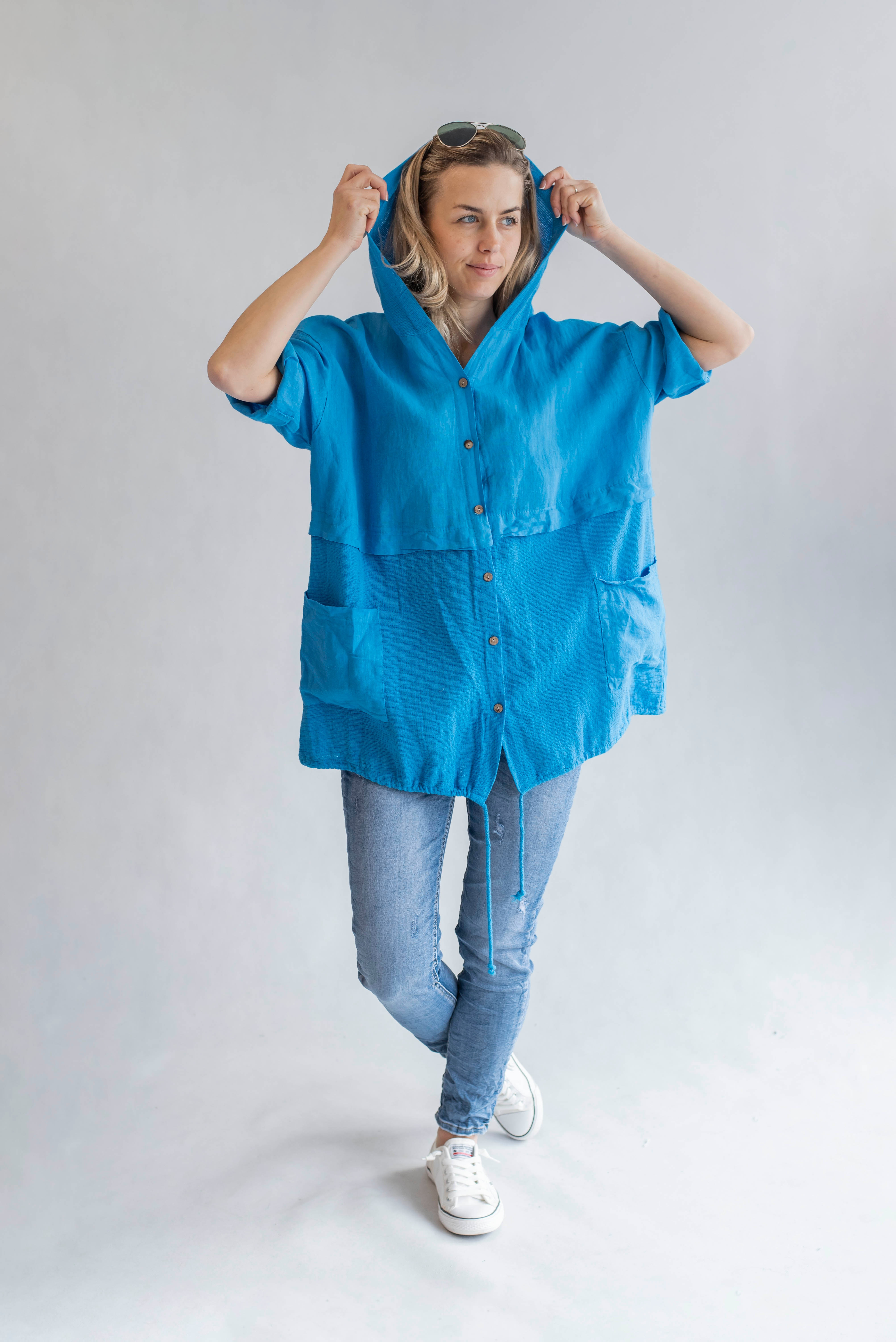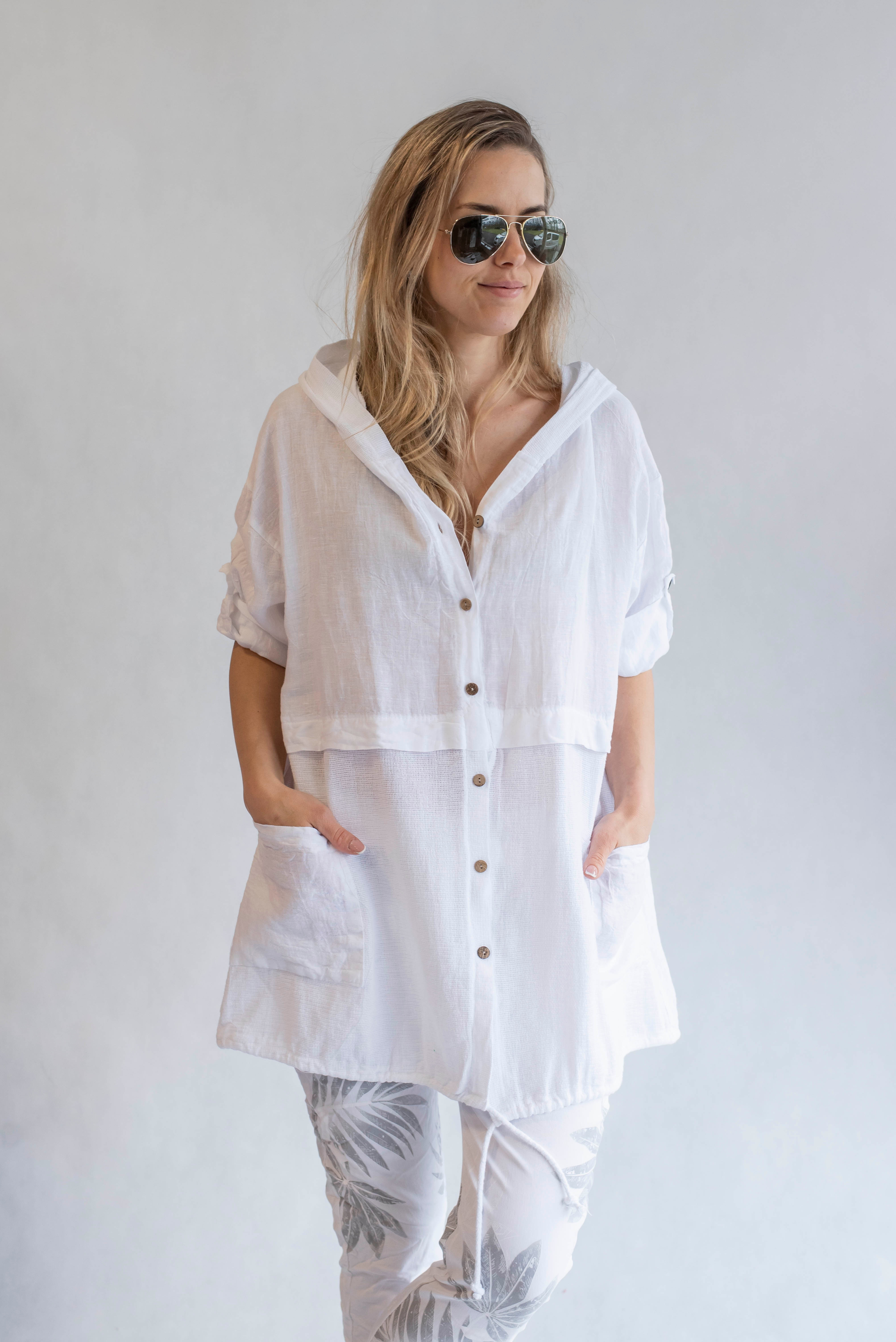 Lehká lněná jarní bunda/kabátek, na knoflíky, přední kapsy, ve spodní části šňůrka