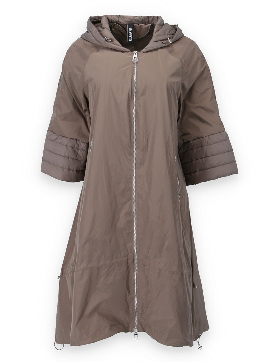 Kabátek má 3/4 rukáv a prodlouženou zadní délku.