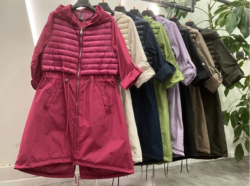 Módní jarní kabátek, kapsy v přední části, rukávy na patent. Itálie