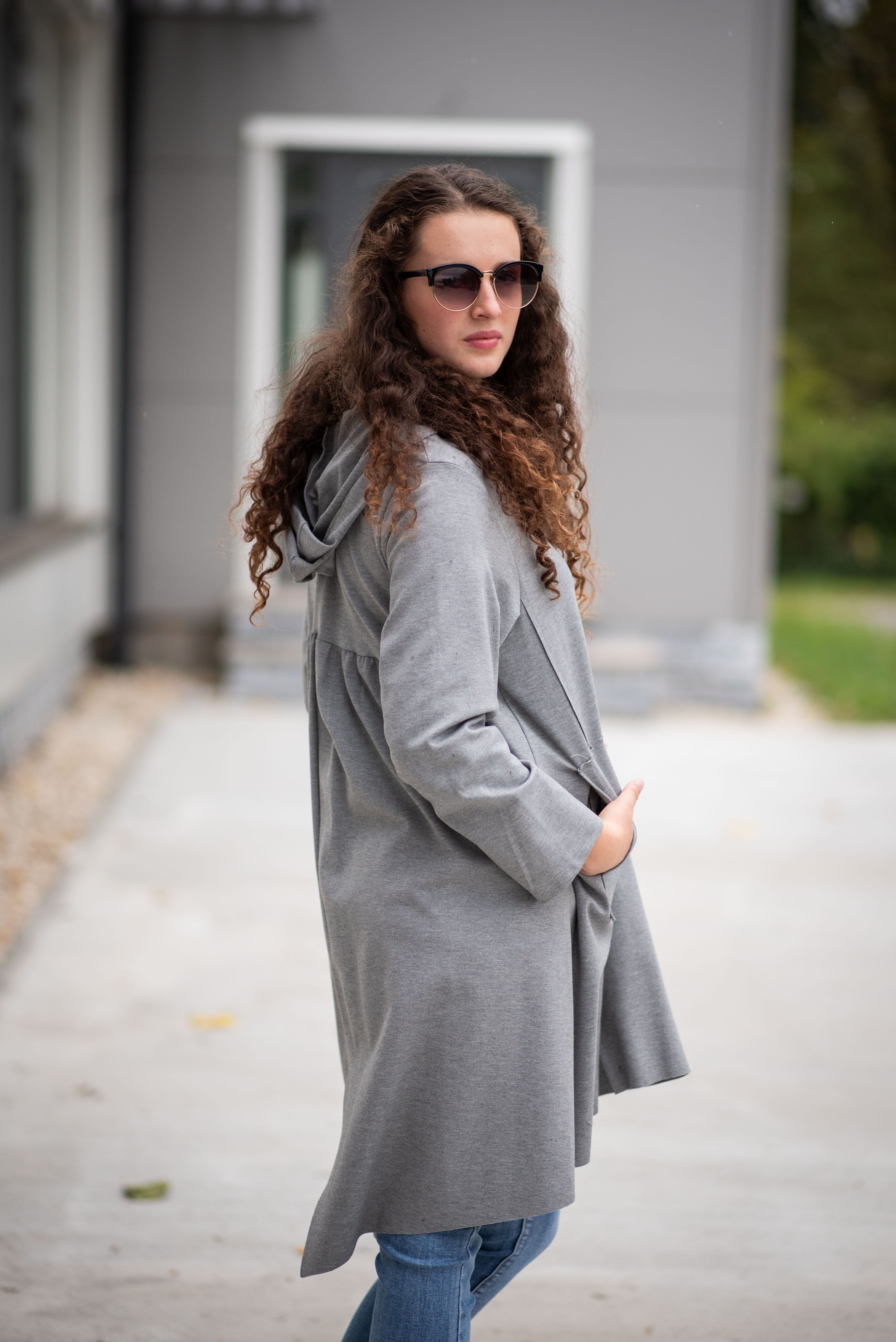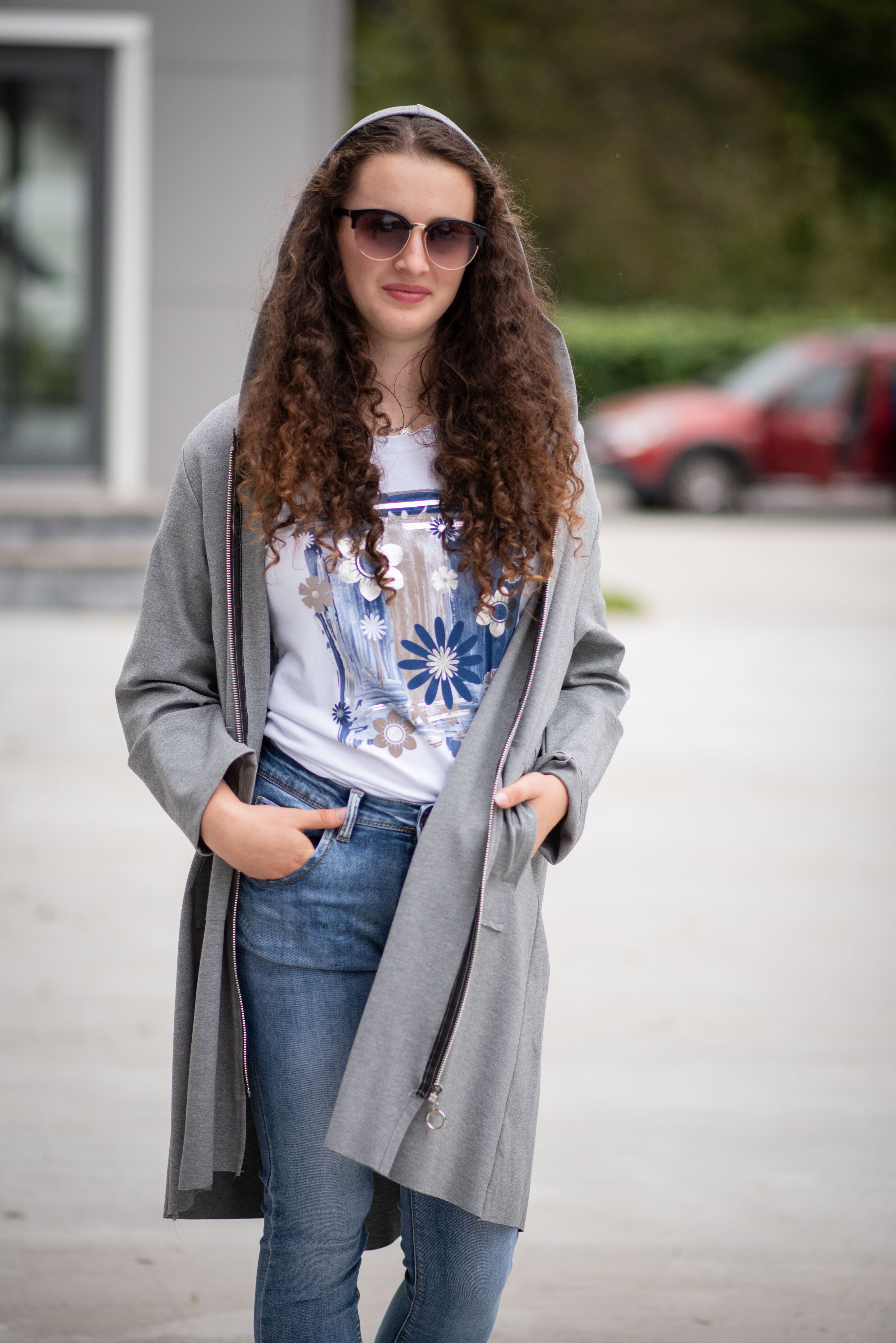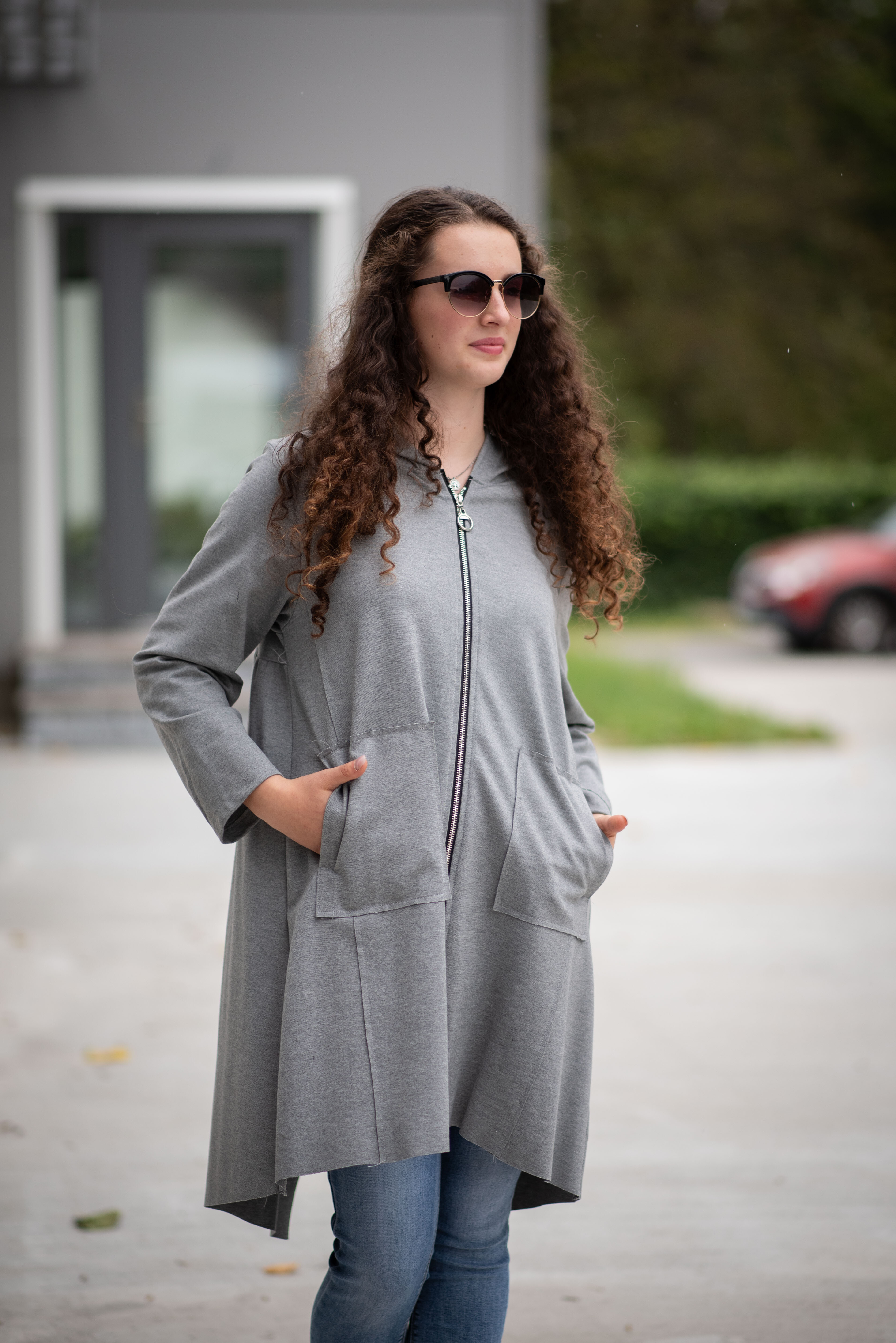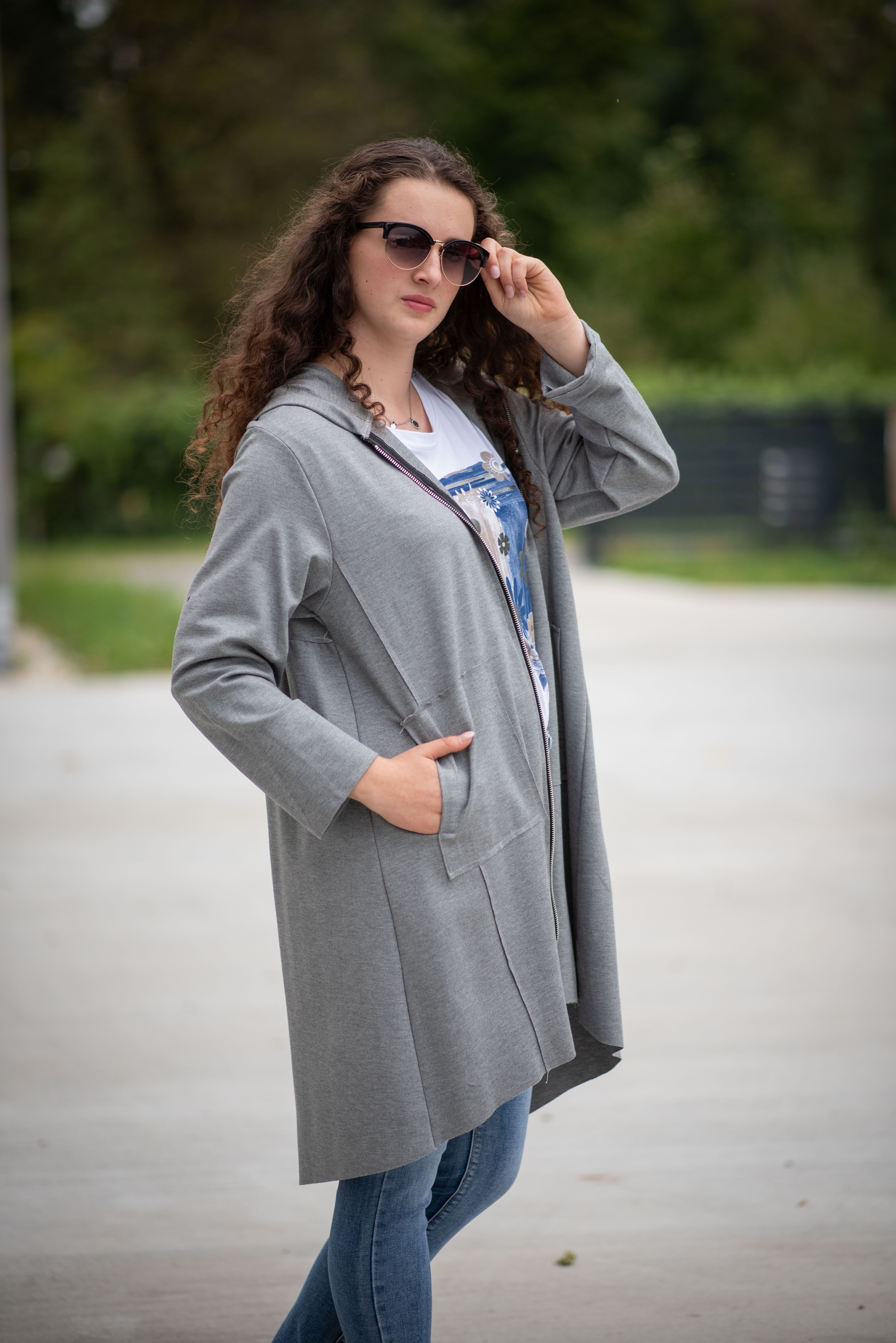 Kabátek s kapucí, zapínání na zip, na přední straně našité kapsy, prodloužená zadní délka. Trendy kousek do chladnějšího počasí. Dovoz z Itálie.