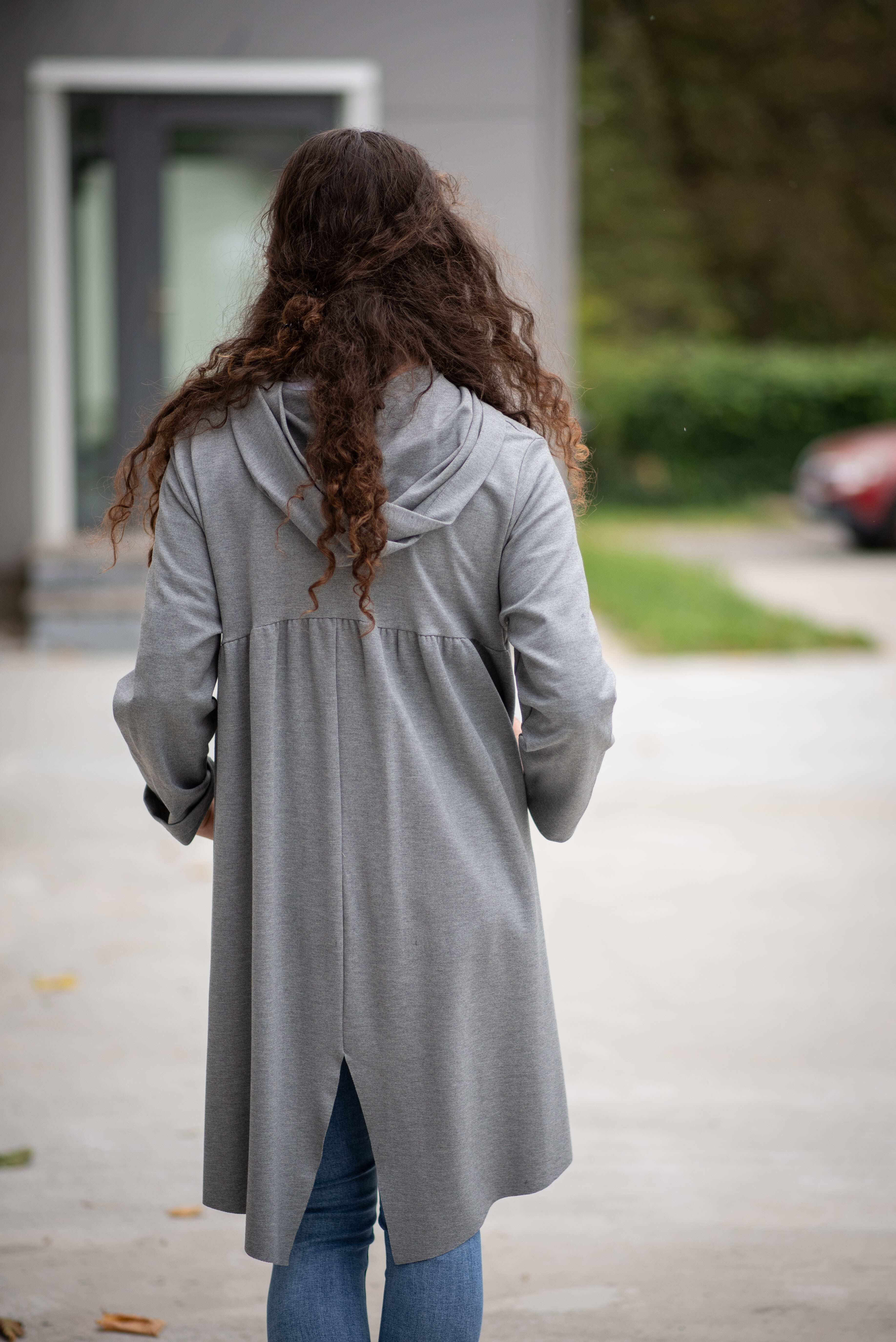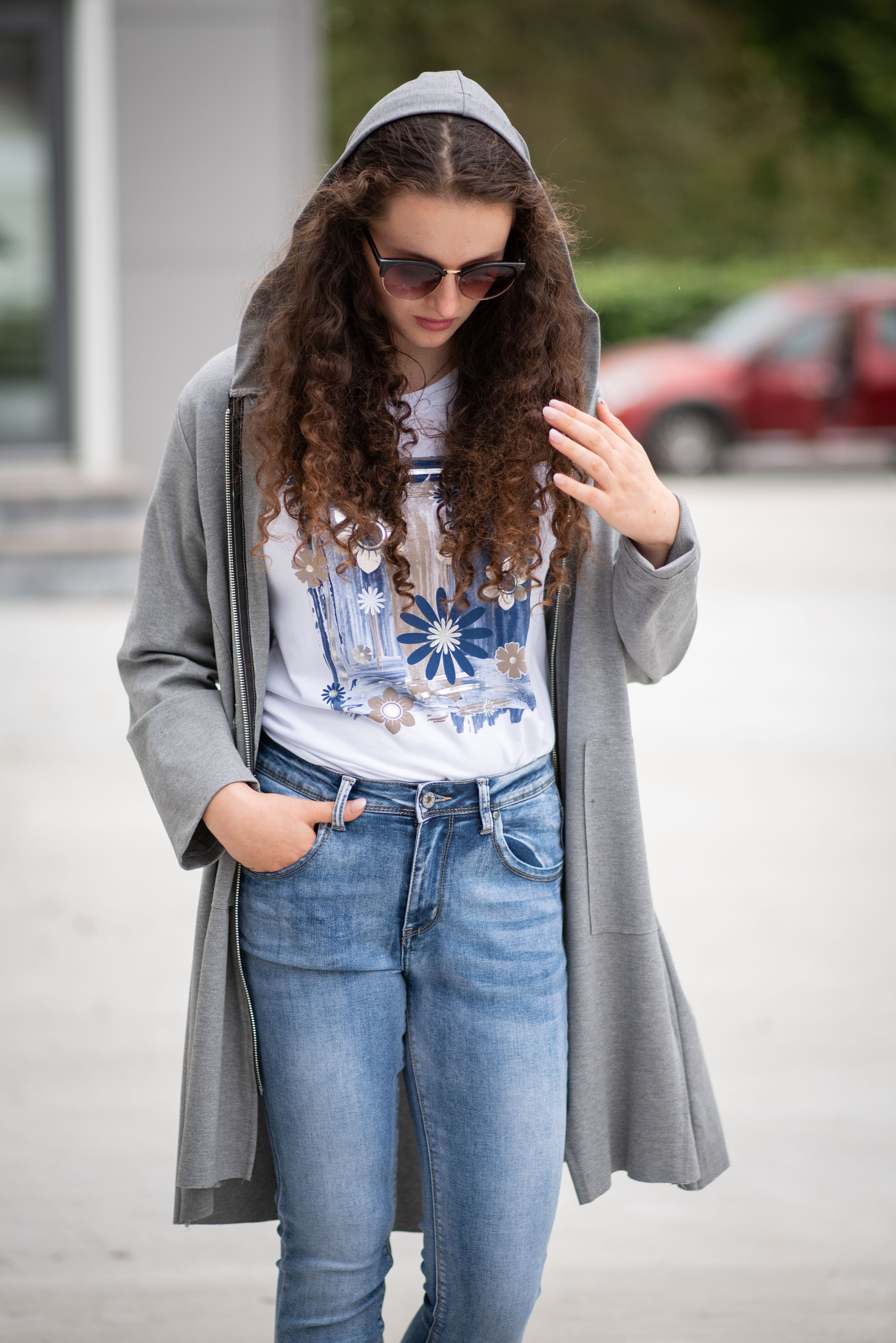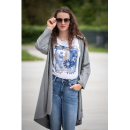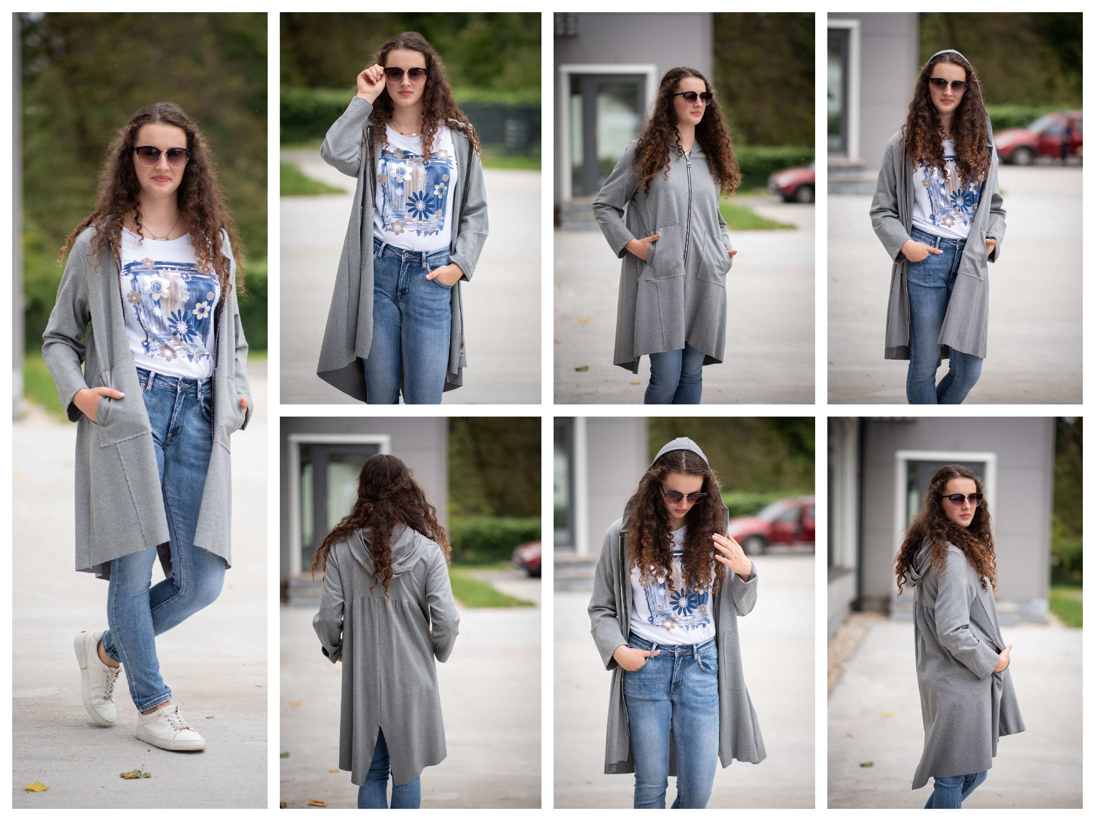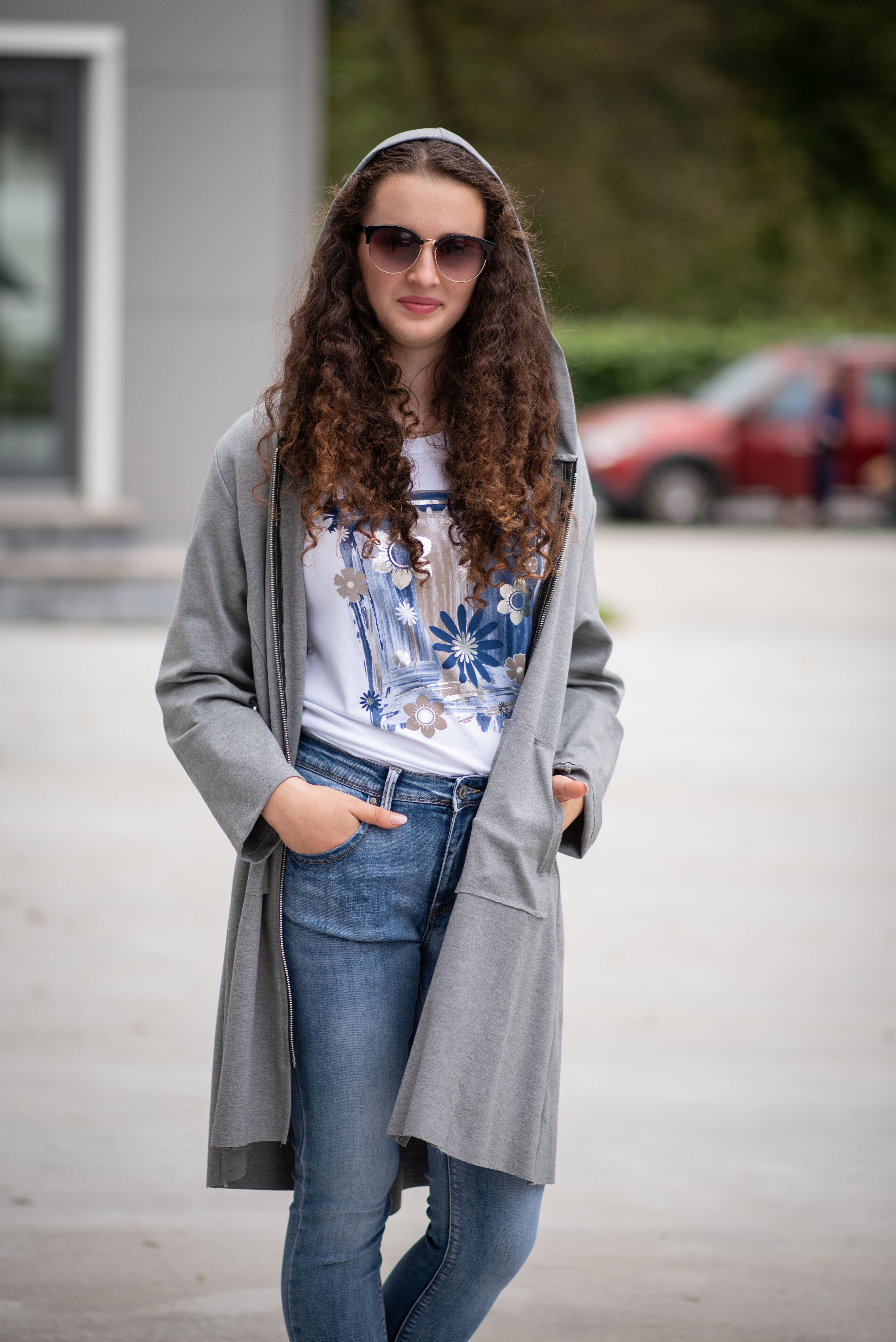 Kabátek s kapucí, zapínání na zip, na přední straně našité kapsy, prodloužená zadní délka. Trendy kousek do chladnějšího počasí. Dovoz z Itálie.