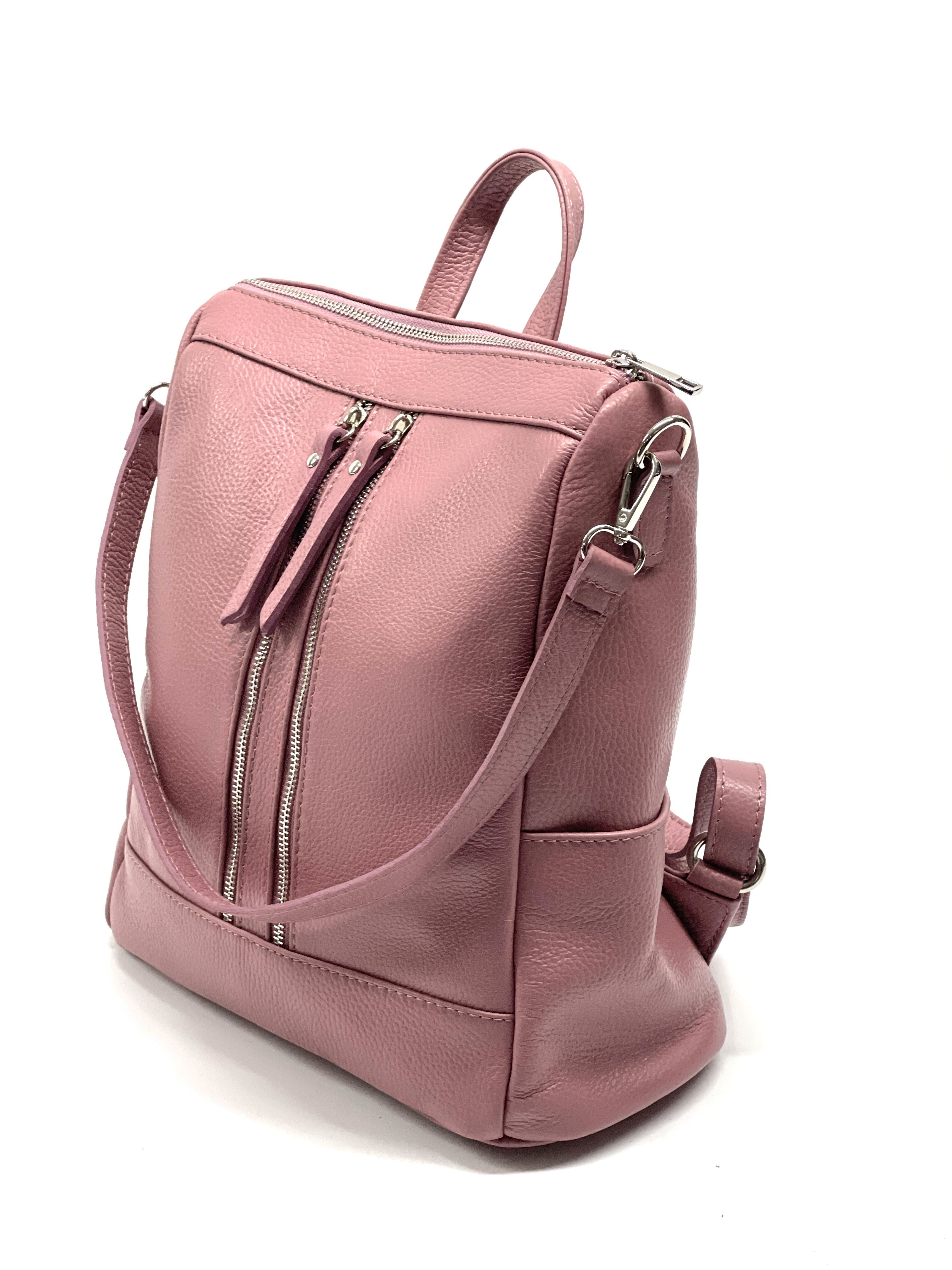 Kabelka batoh z kůže 5781 Itálie barva: růžová-pudrová