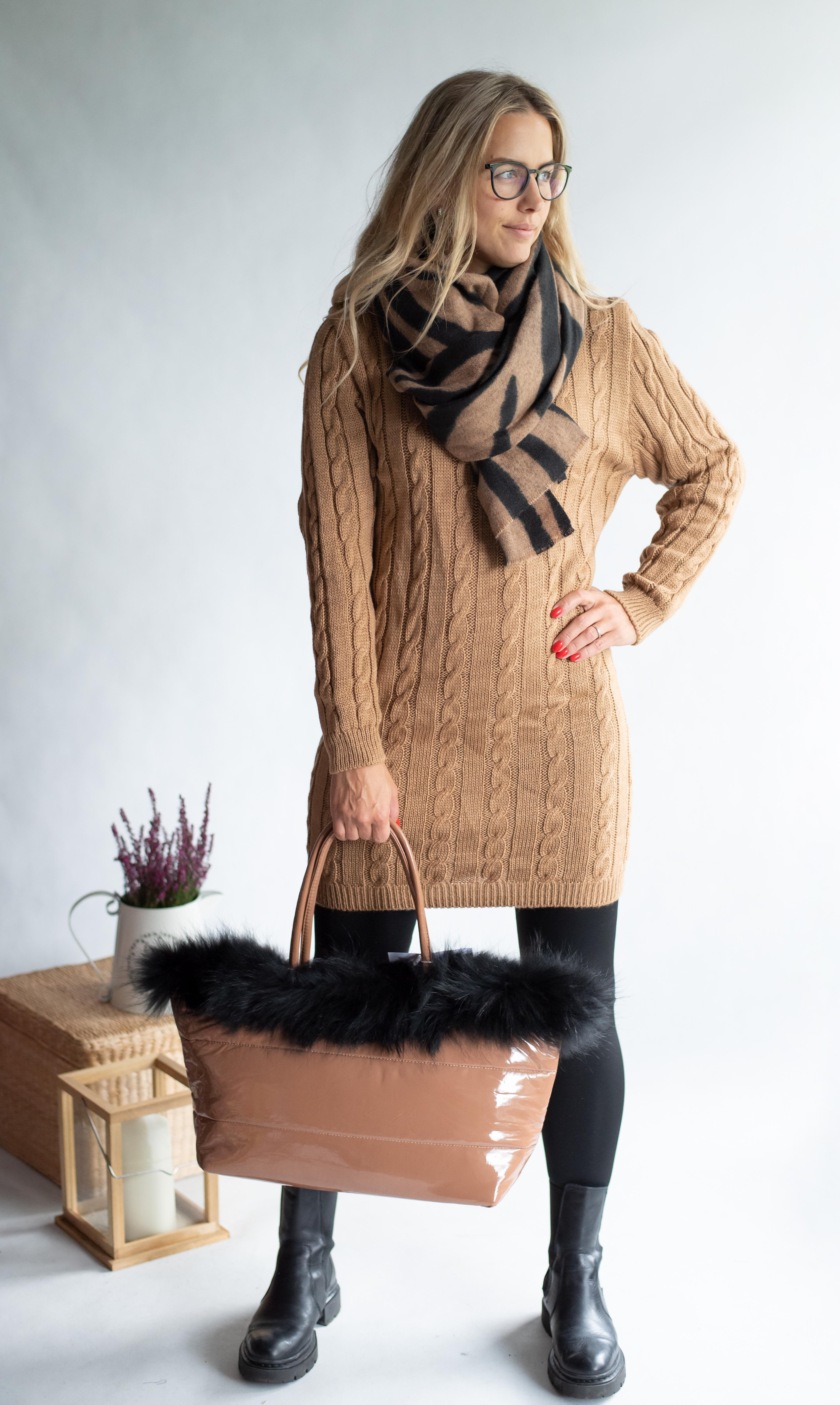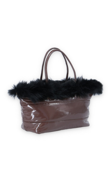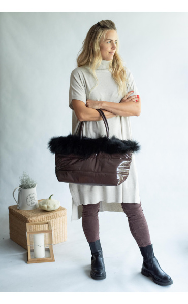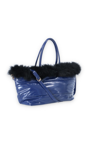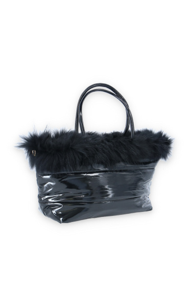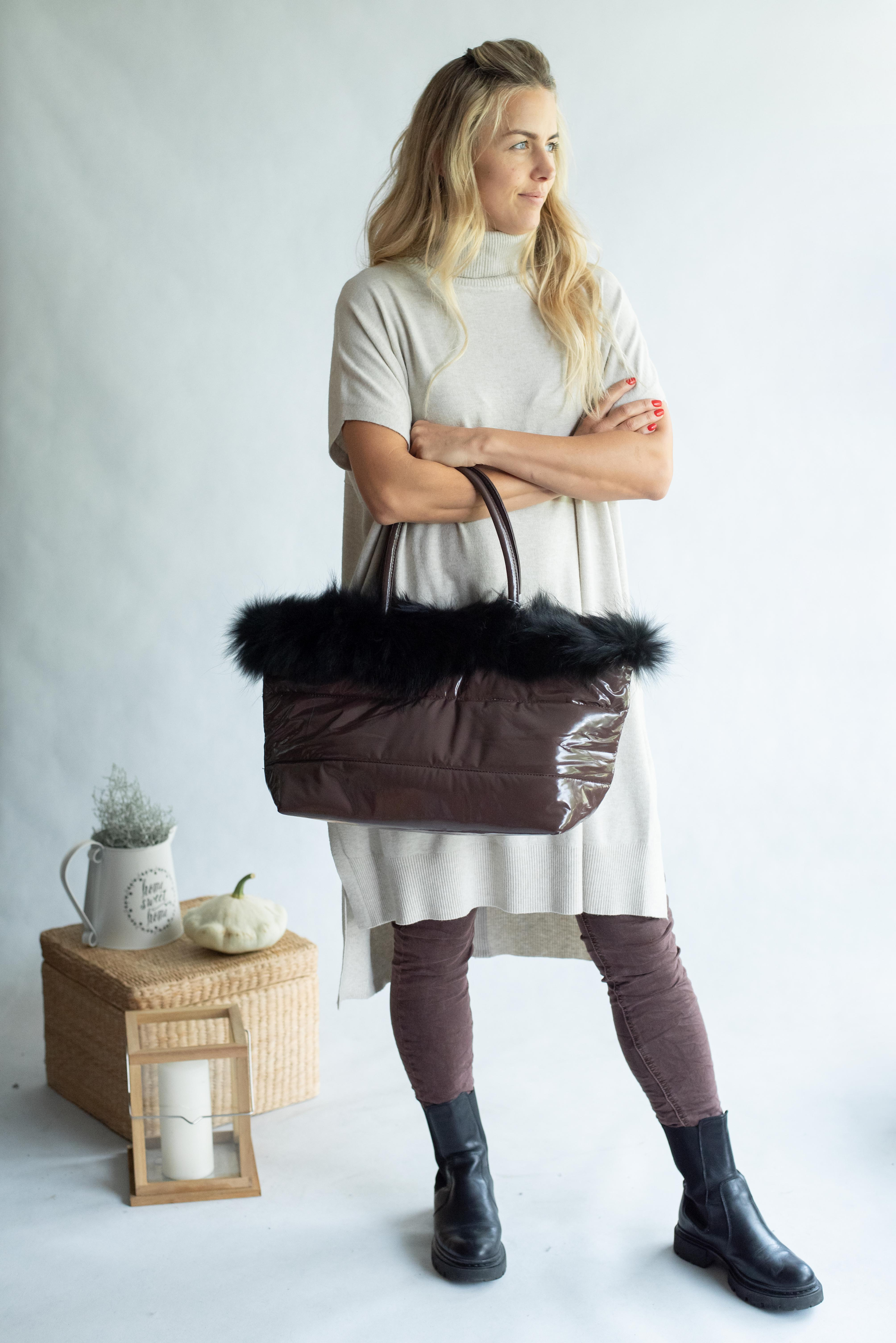 Dámská módní kabelka zdobená přírodní kožešinou s odnímatelným popruhem a vnitřními kapsami a popruhem
