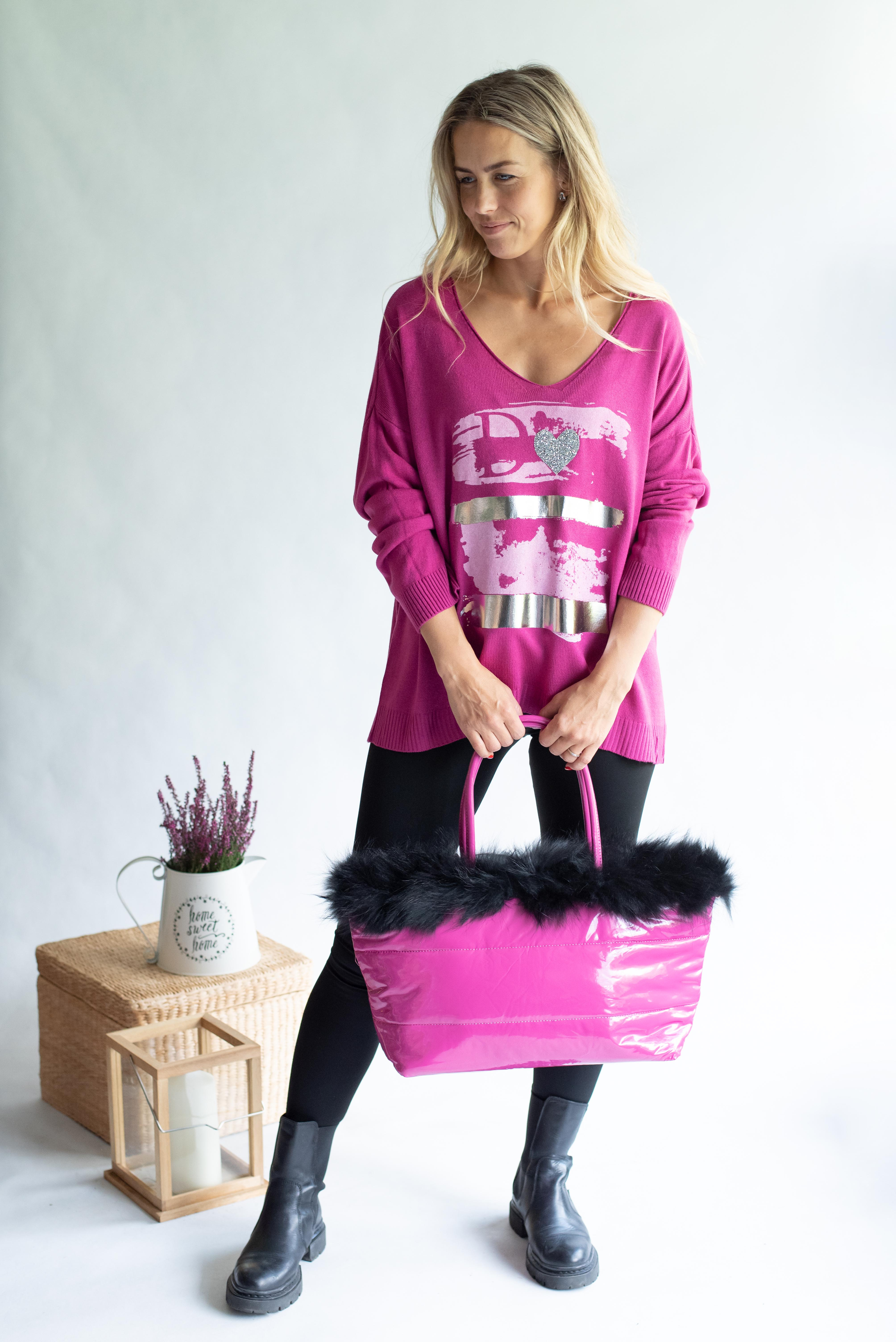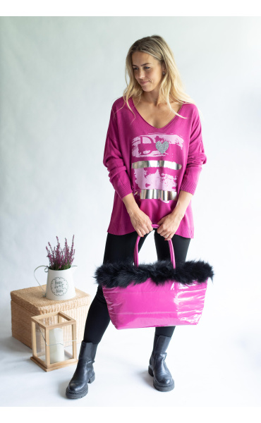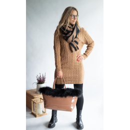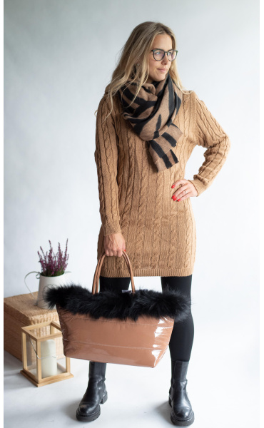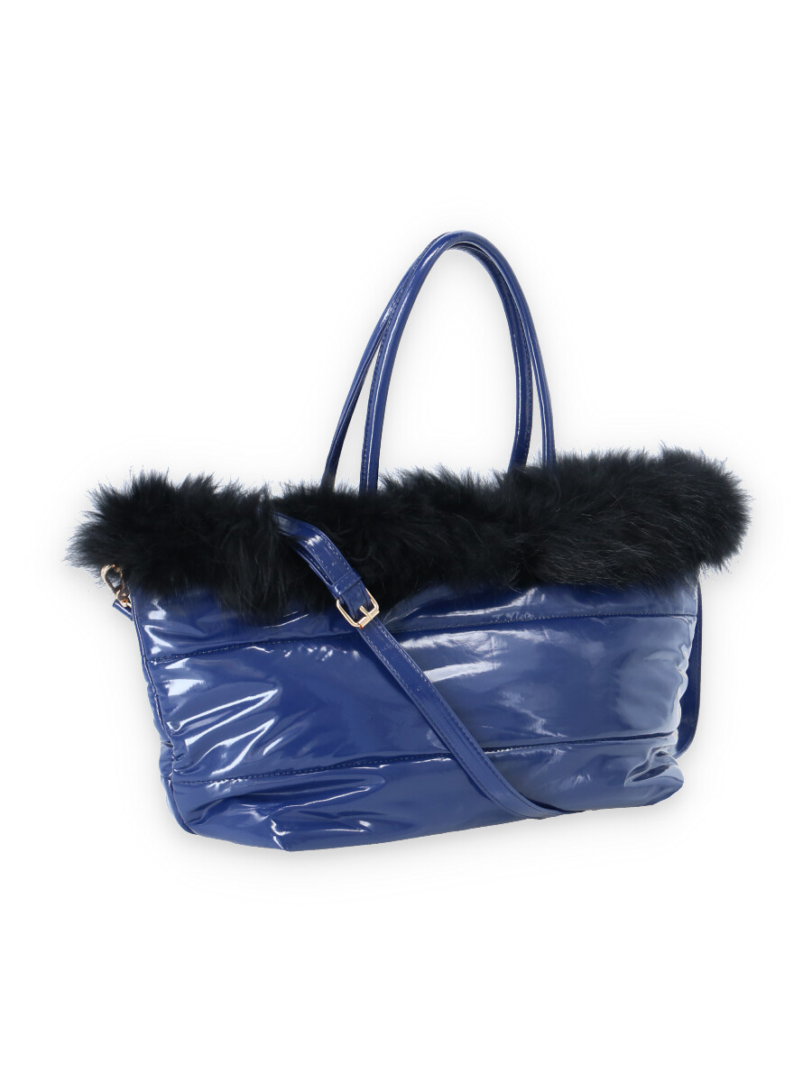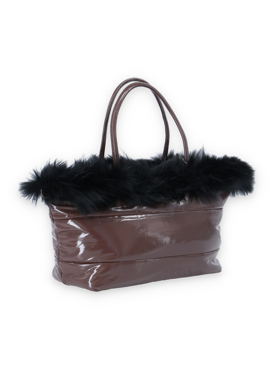 Dámská módní kabelka zdobená přírodní kožešinou s odnímatelným popruhem a vnitřními kapsami a popruhem