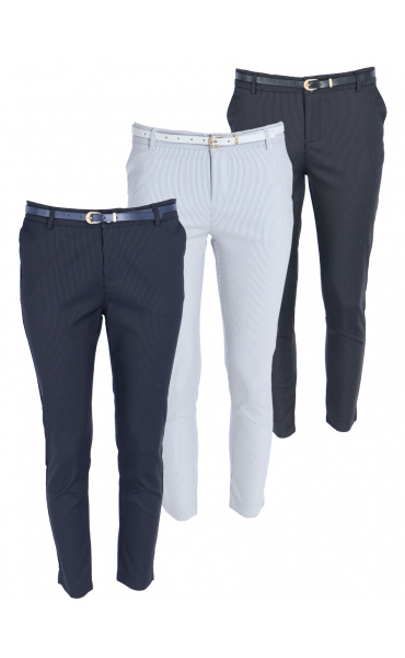Elegantní dámské kalhoty doplněné opaskem, velmi pohodlné pro denní nošení.