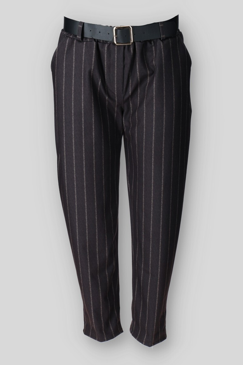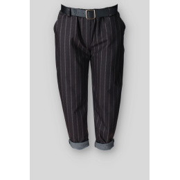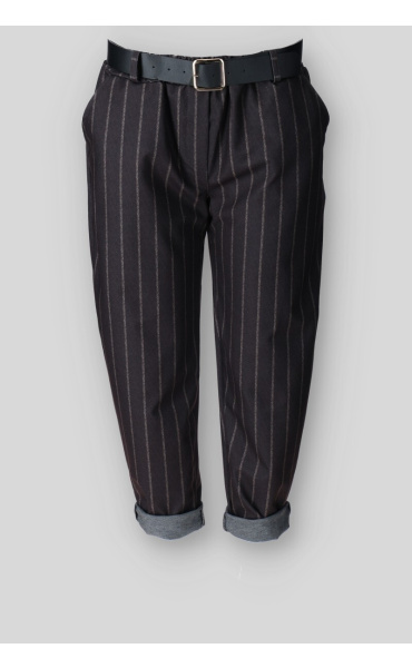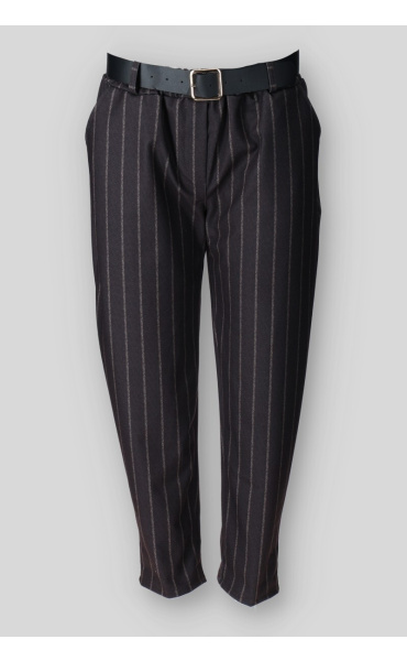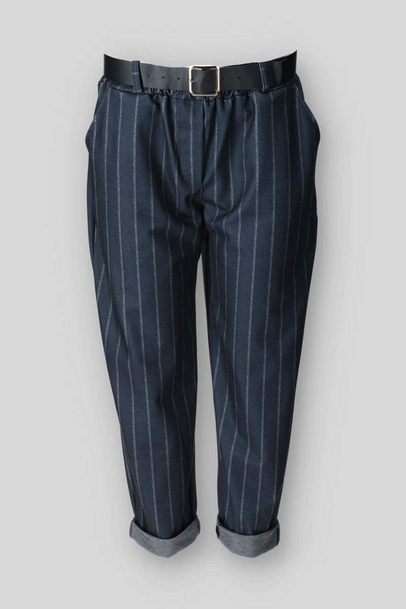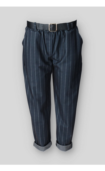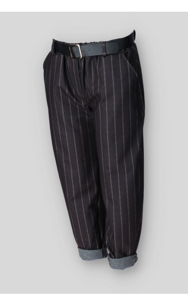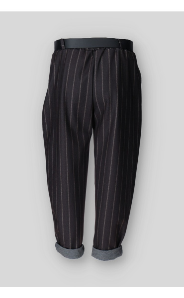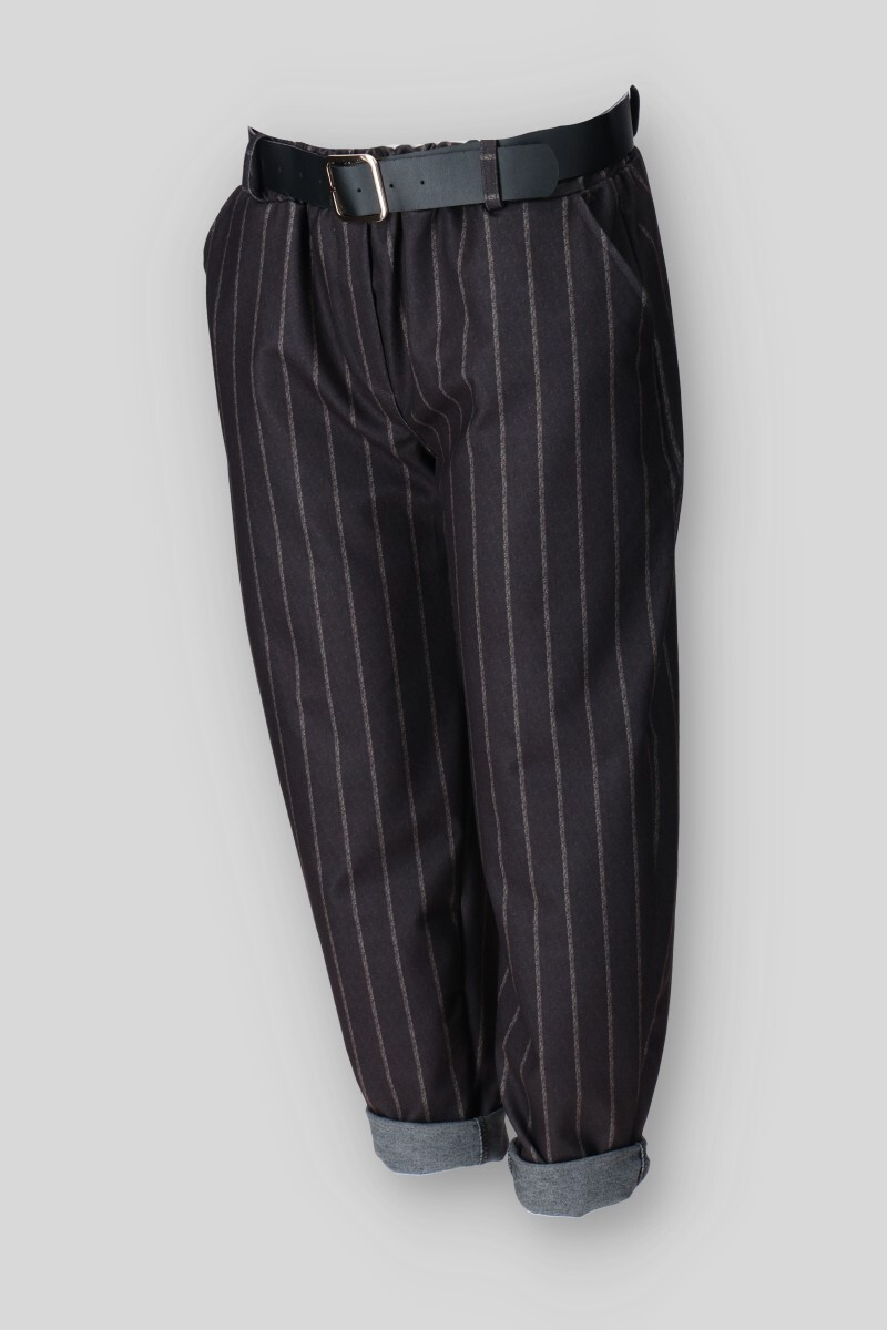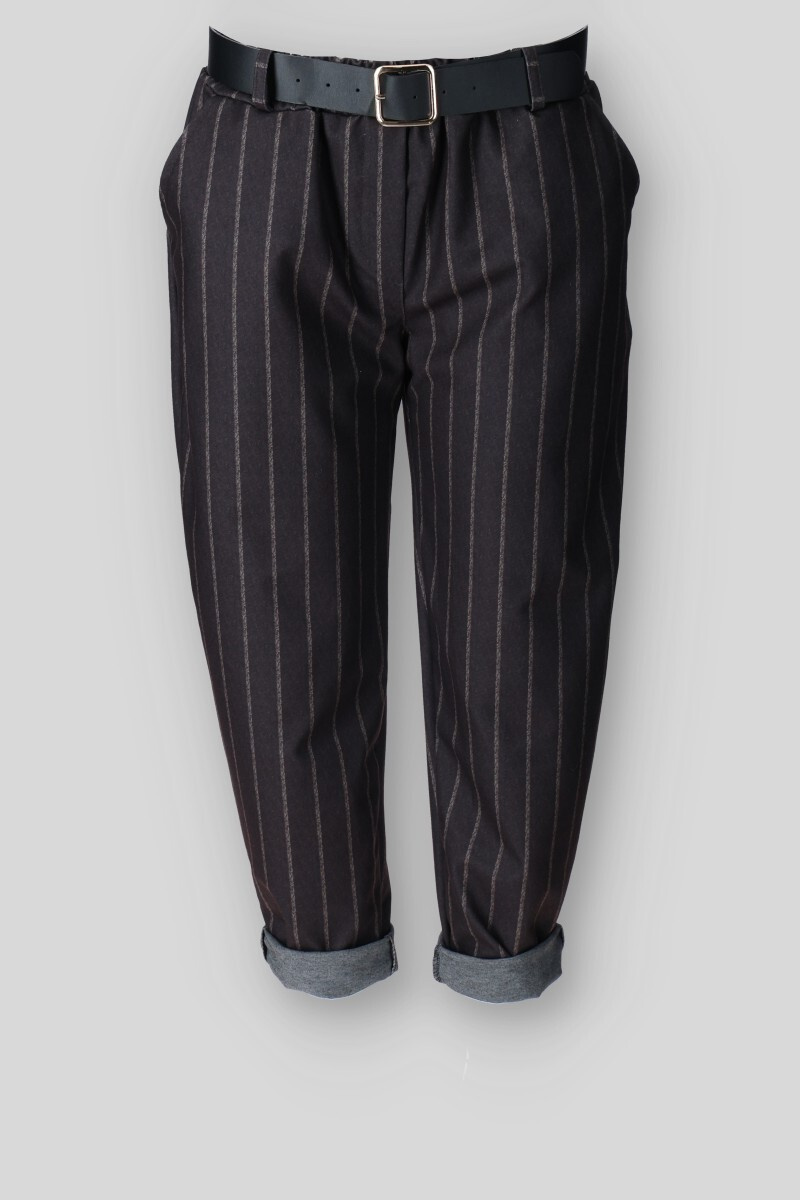 Dámské kalhoty do gumy, doplněny páskem. Kalhoty jsou volnějšího střihu, z teplejšího materiálu a  mají všité kapsy. Vyrobeno v Itálii.