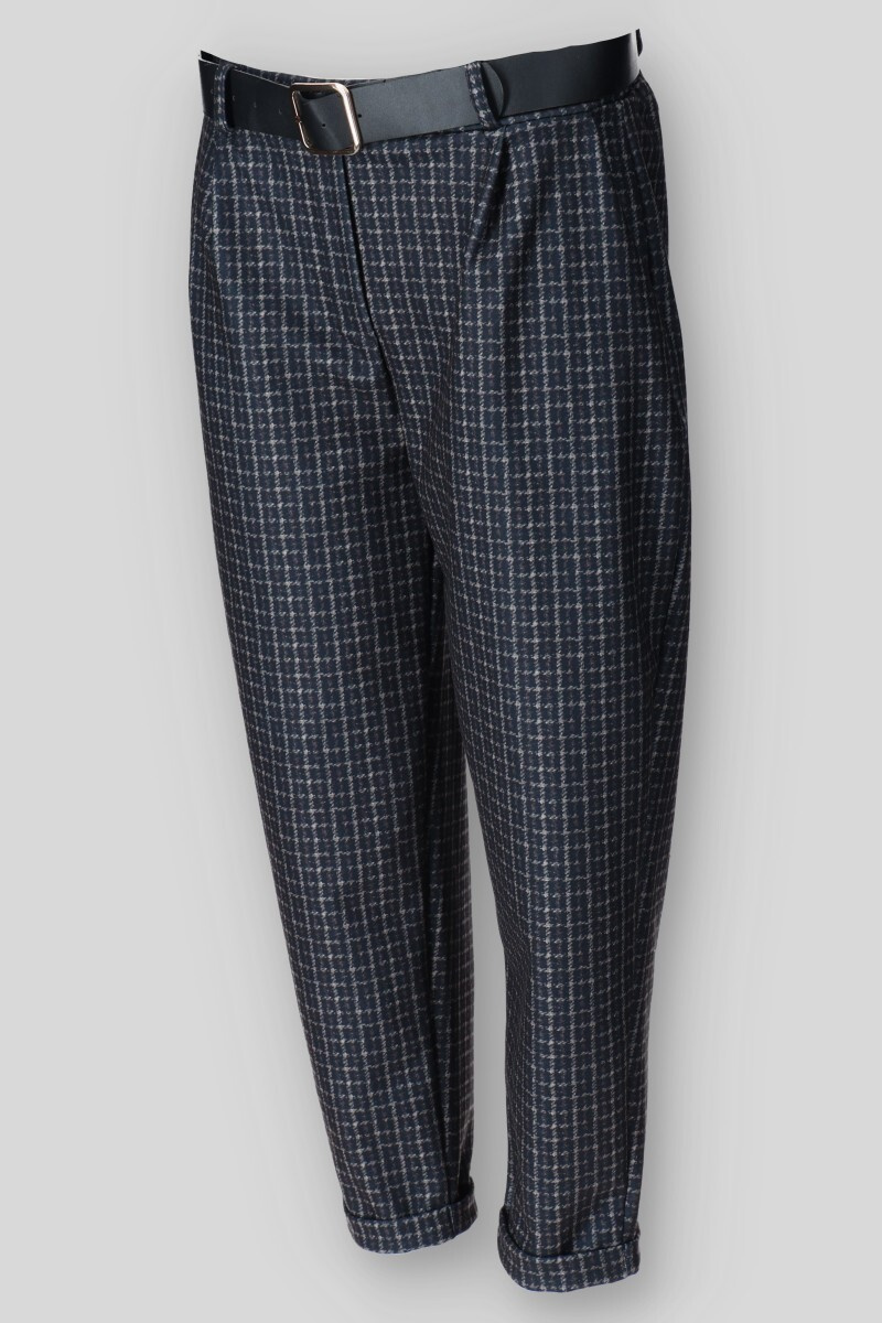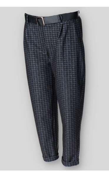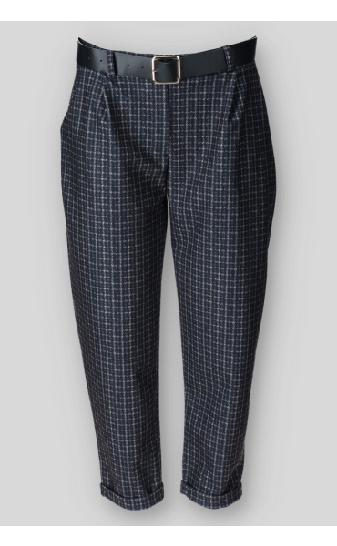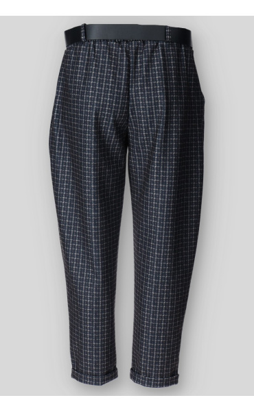 Dámské kalhoty do gumy, doplněny páskem. Kalhoty jsou volnějšího střihu a  mají všité kapsy. Vyrobeno v Itálii.