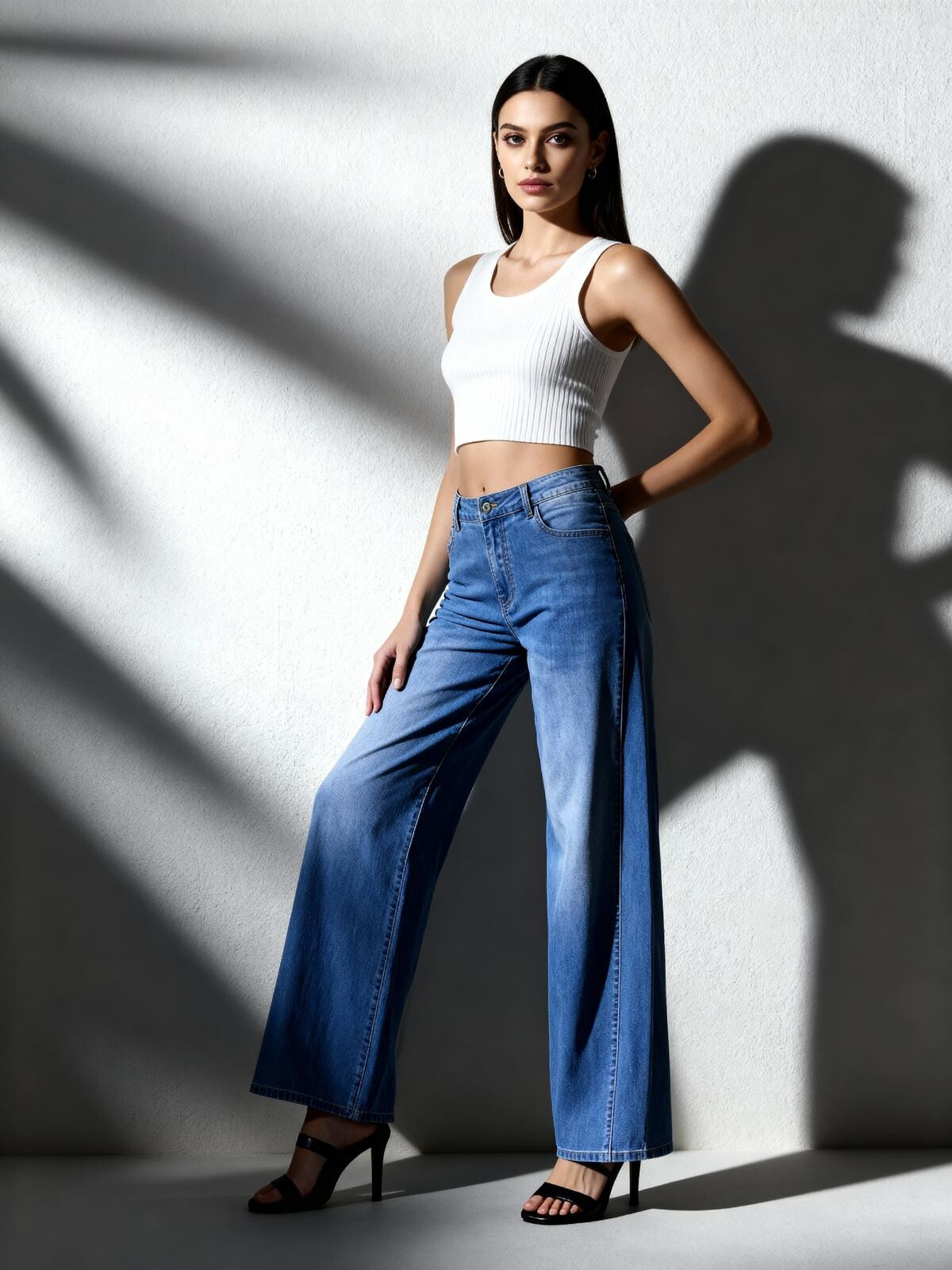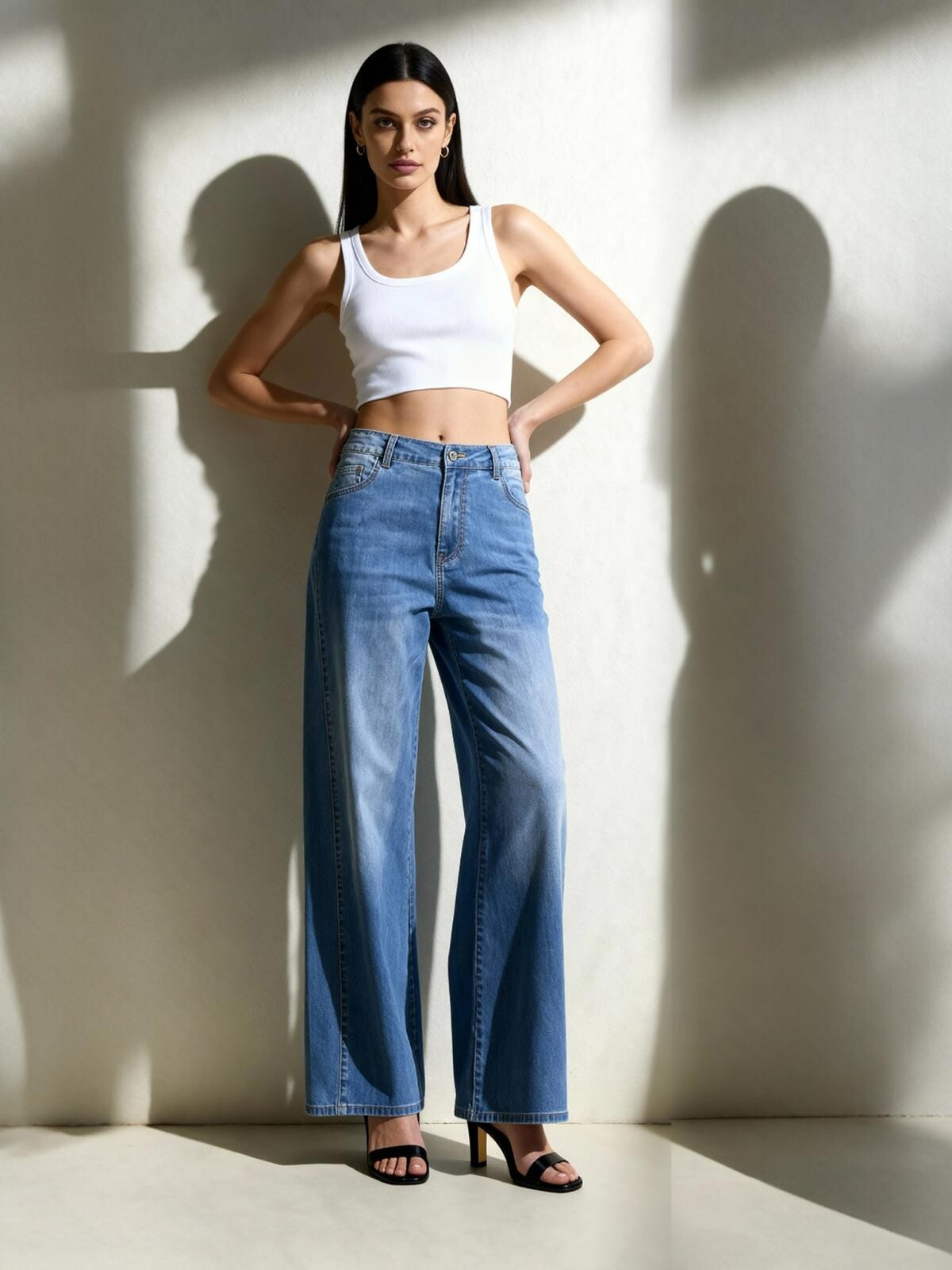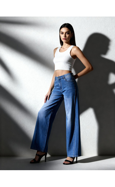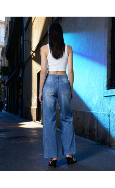 Módní džínové kalhoty Wide Leg střihu s rozšířenými nohavicemi.