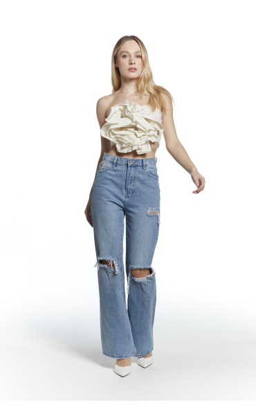 Kalhoty džínové wide leg regular 3D-1319 Itálie