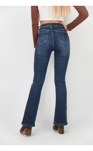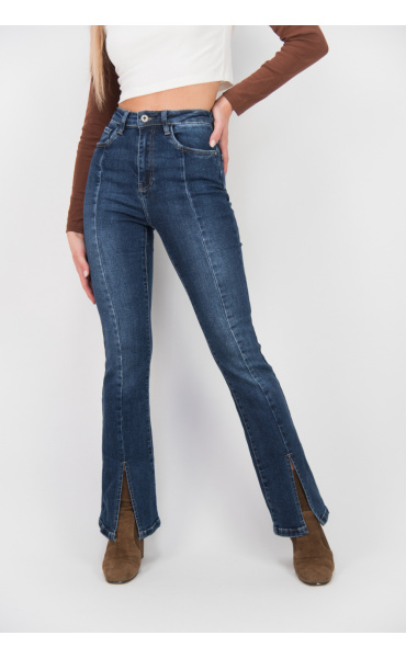 Módní jeans kalhoty - zvonový střih s prostřihem.