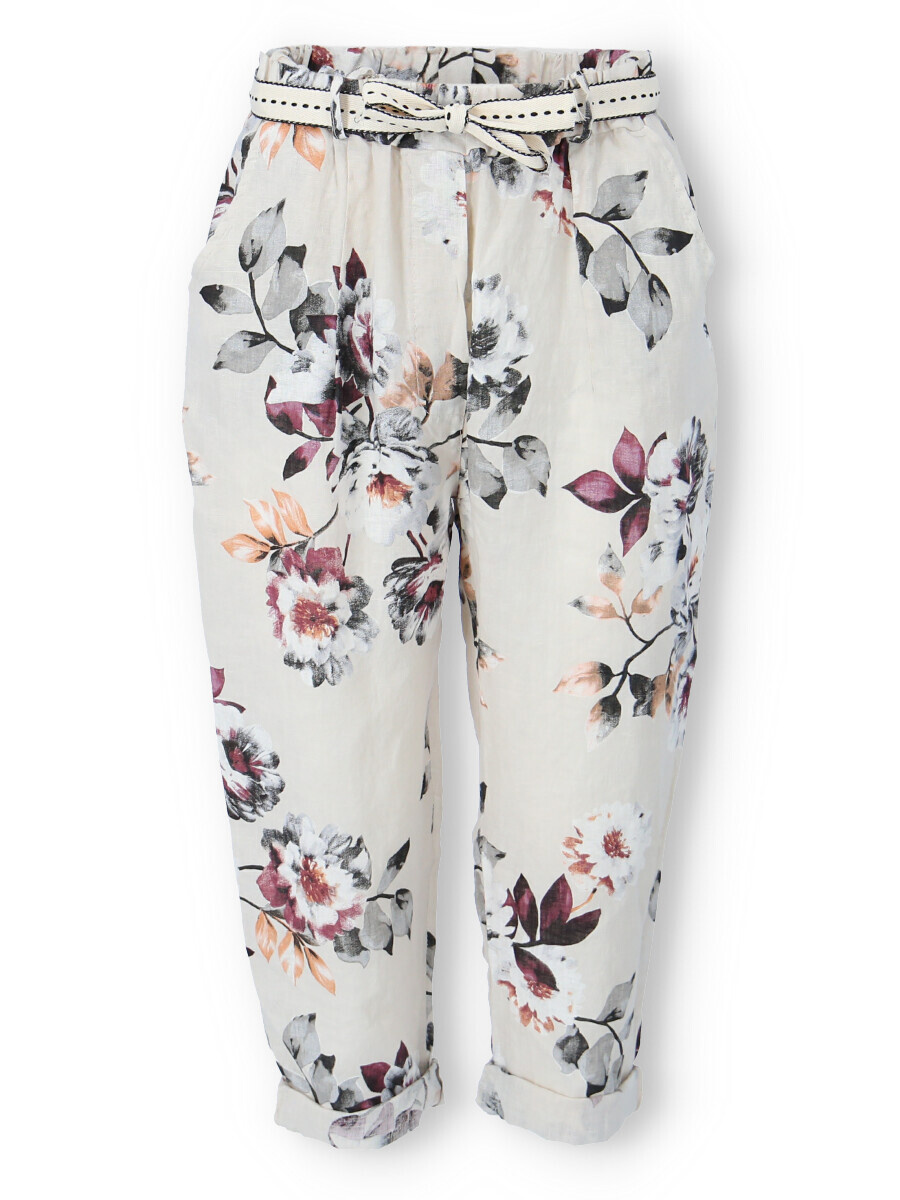 Módní lněné kalhoty s potiskem, velice příjemné na každodenní nošení.
