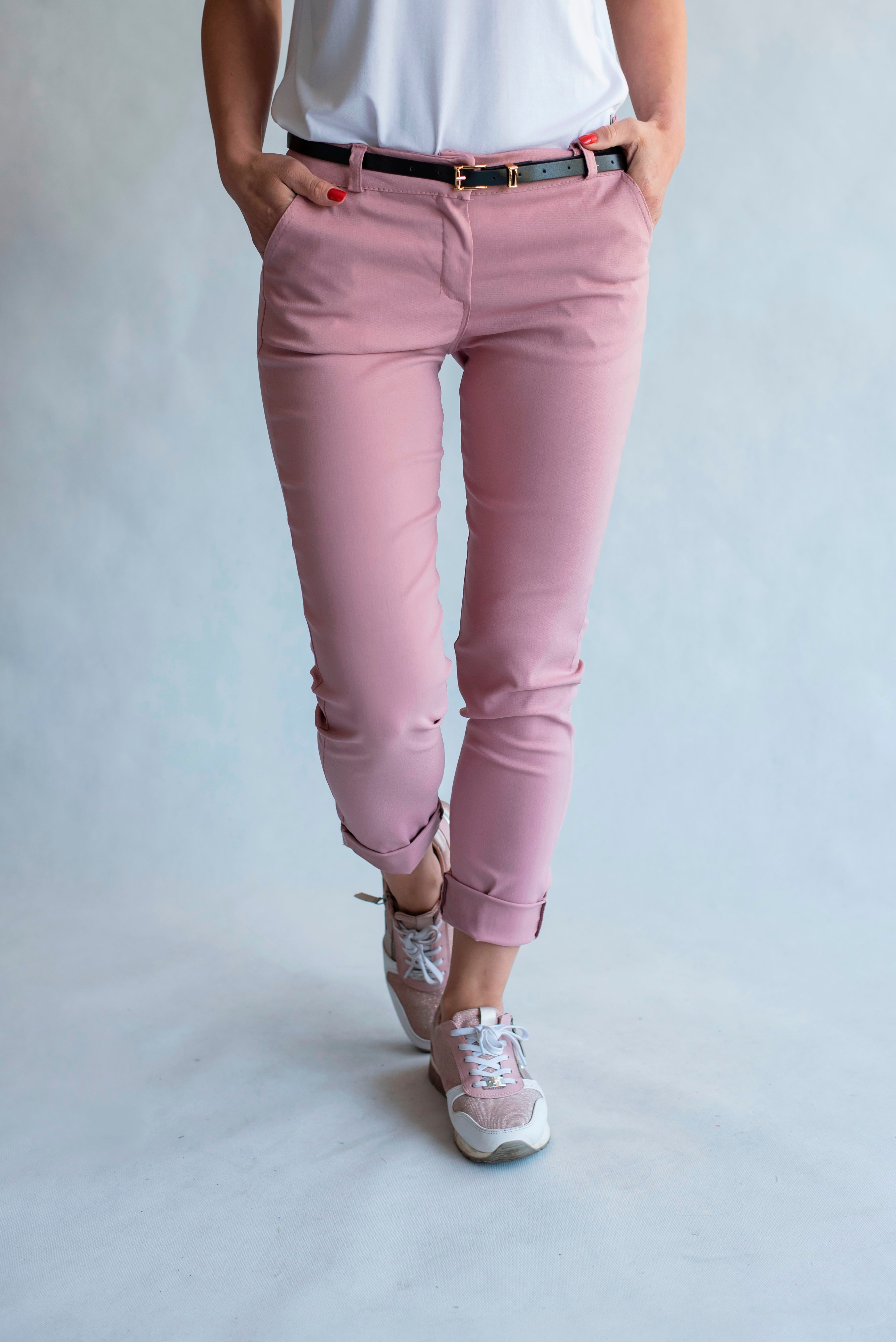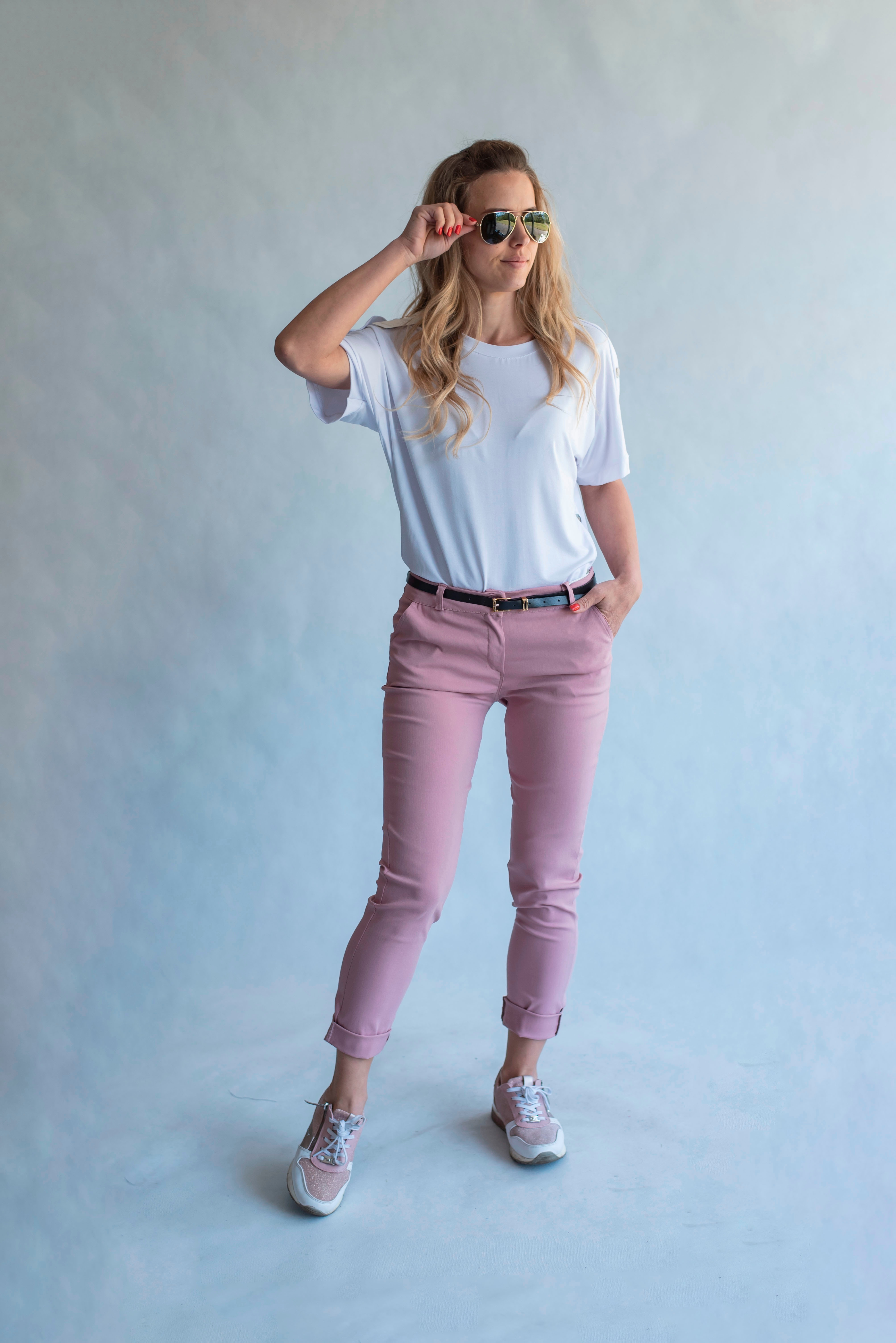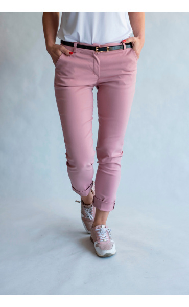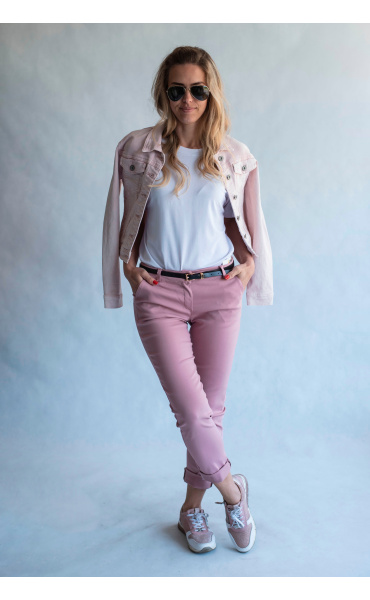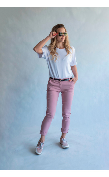 Módní kalhoty pohodlného střihu, elastický pas, opasek a 2x přední kapsy, jedna zadní
