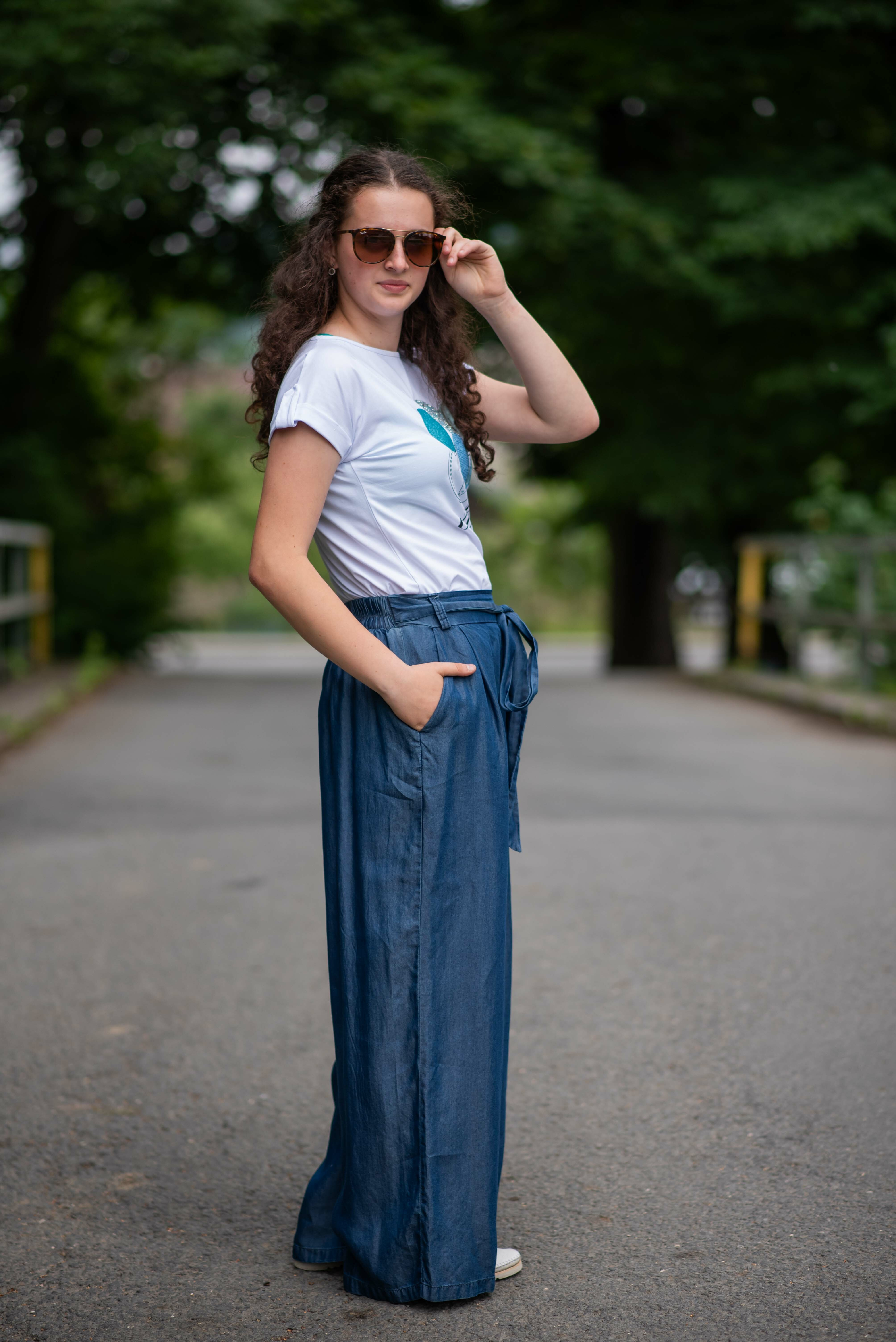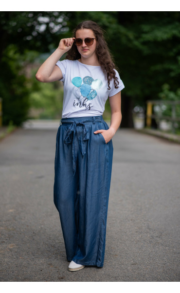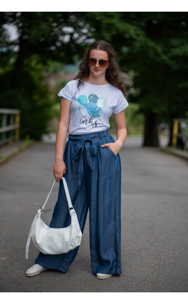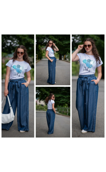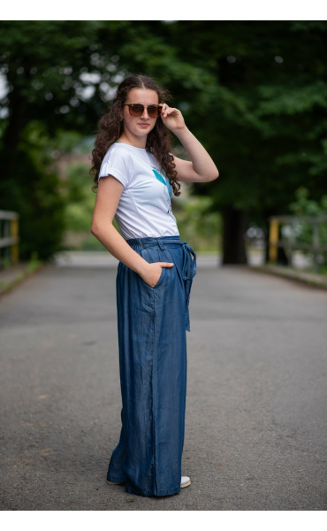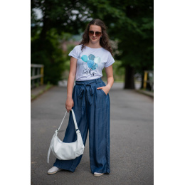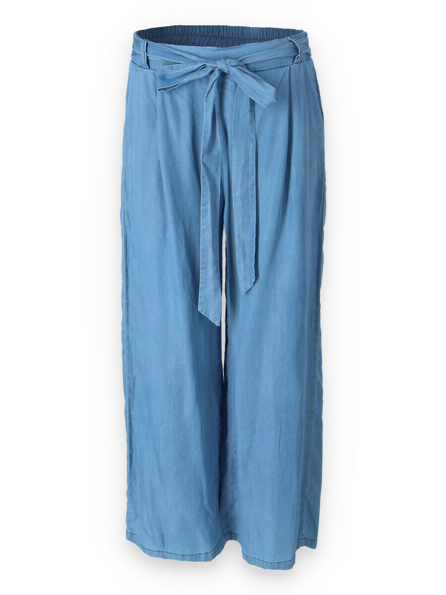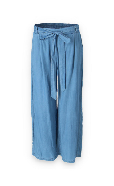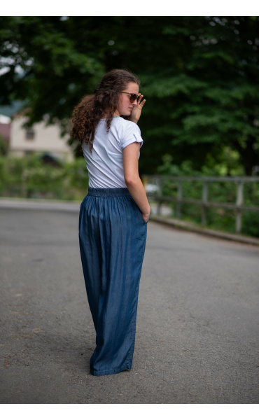 Stylové dámská široké kalhoty culottes pro denní nošení, v pase guma , postranní kapsy, 7/8 délka. Vyrobeny z odlehčené džínoviny.