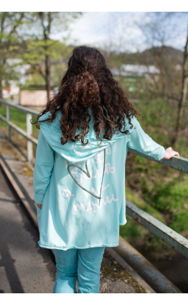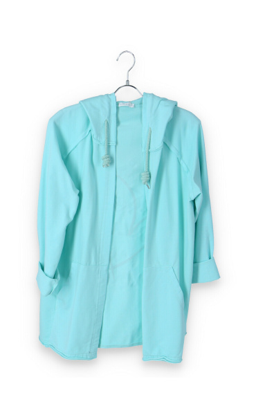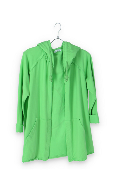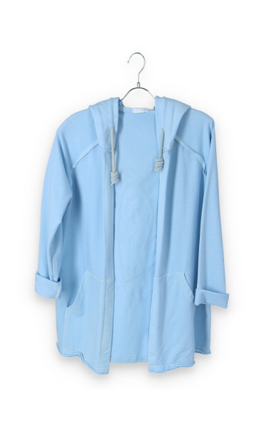 Kardigan s kapucí bavlněný se stylovým potiskem na zádech s kapsami, dlouhý rukáv, jemný úplet Itálie