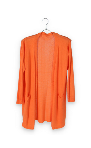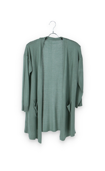 Kardigan úpletový středně dlouhý s kapsami, dlouhý rukáv, jemný úplet  Itálie