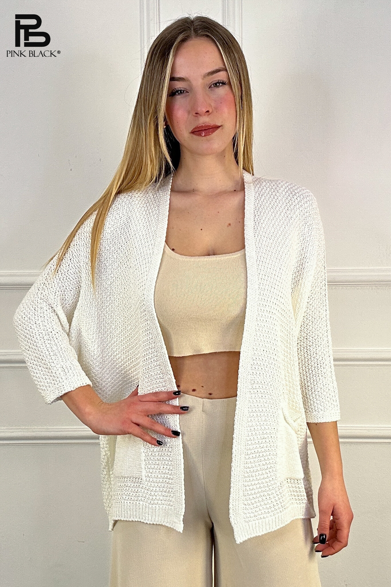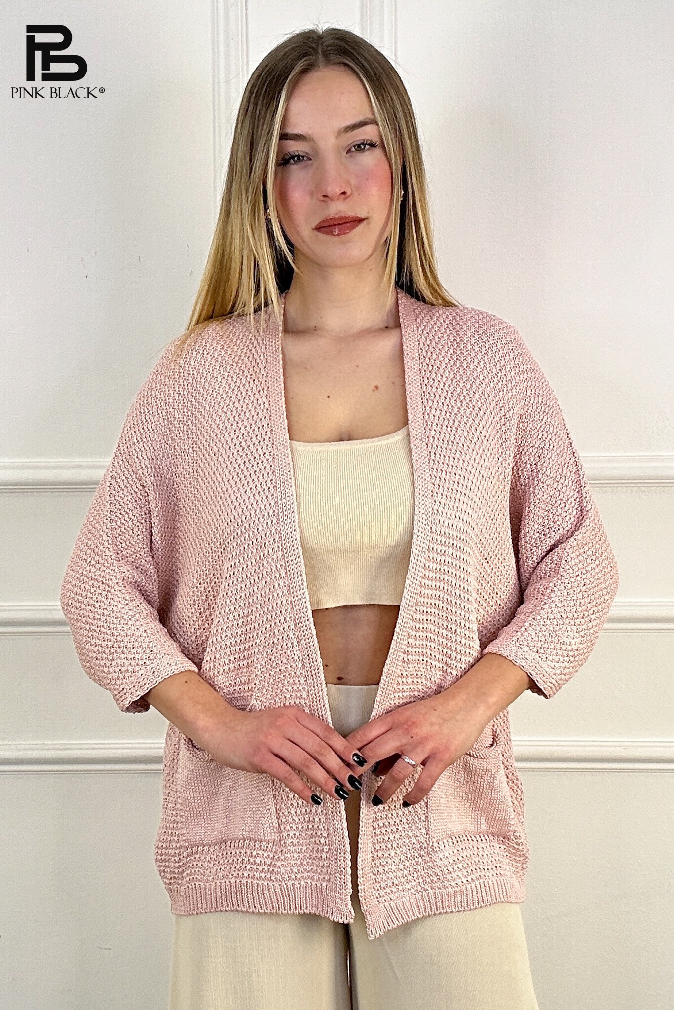 Módní úpletový kardigan s kapsami