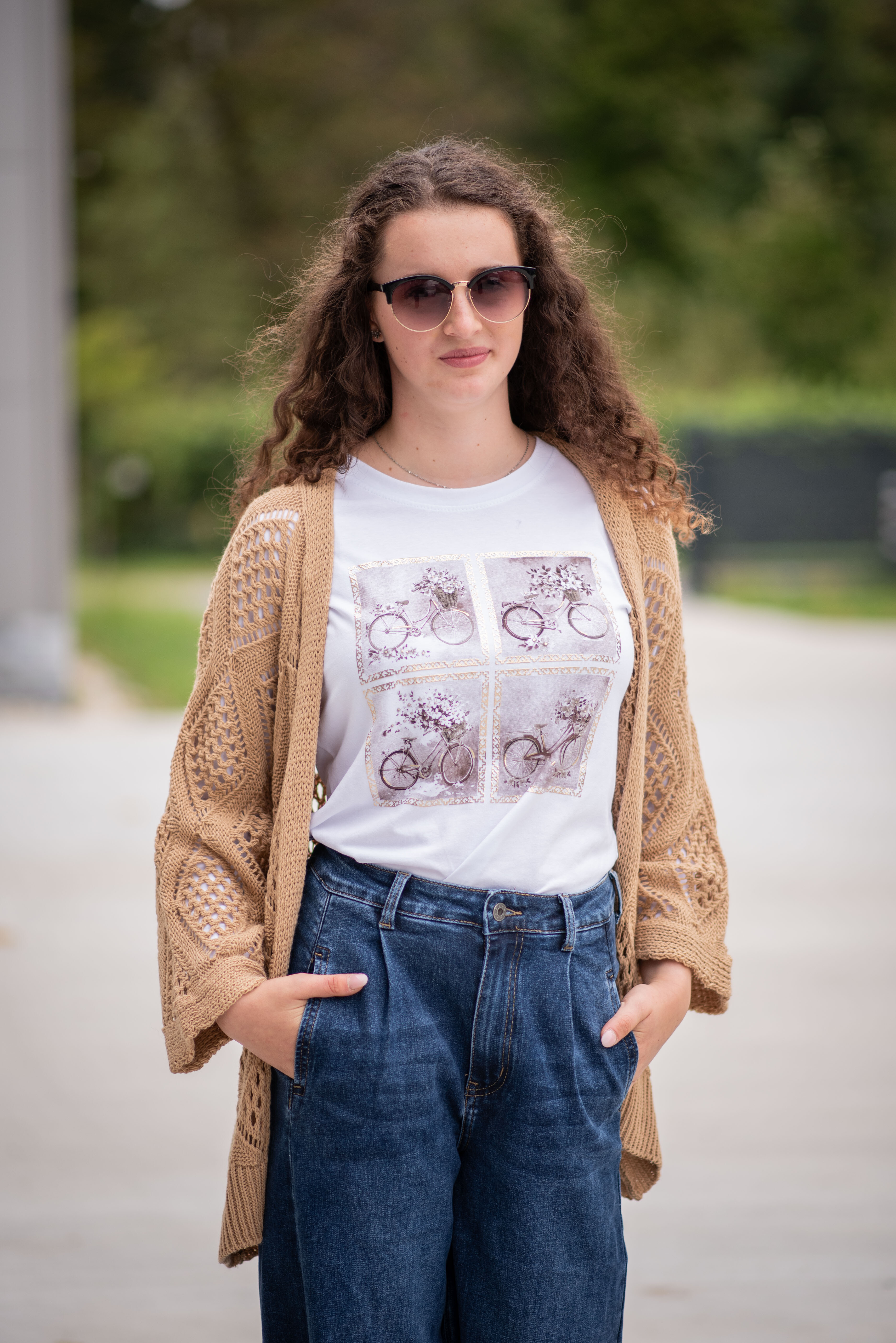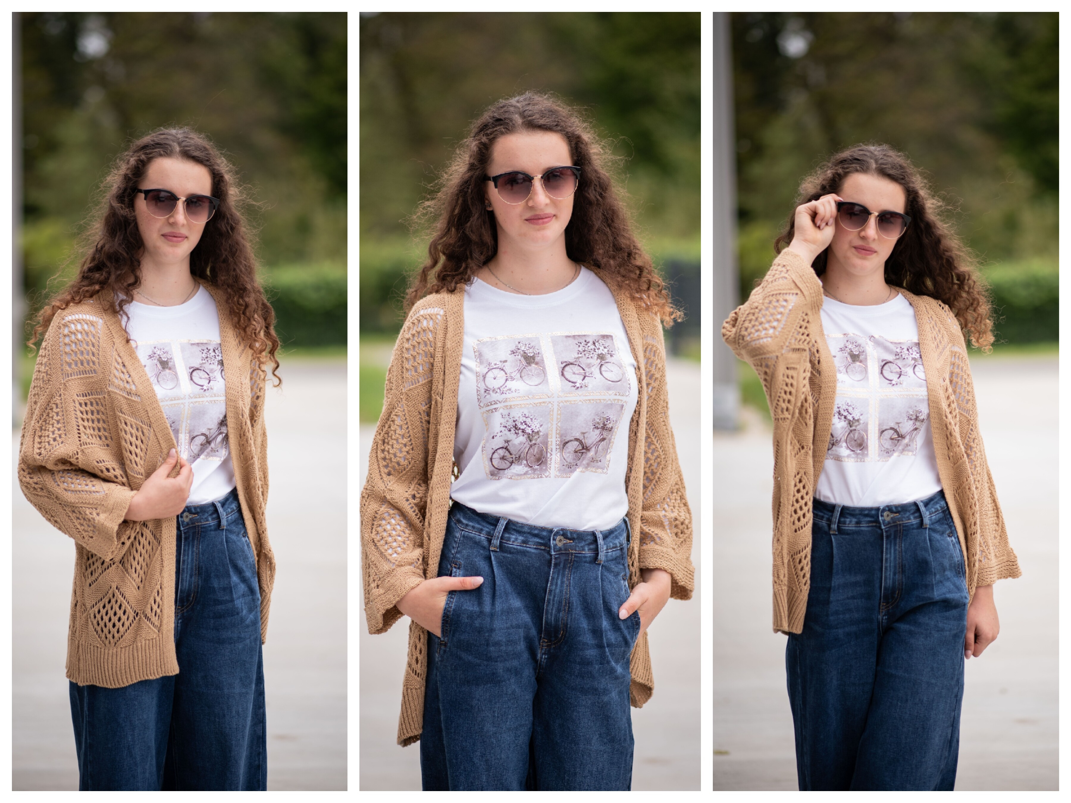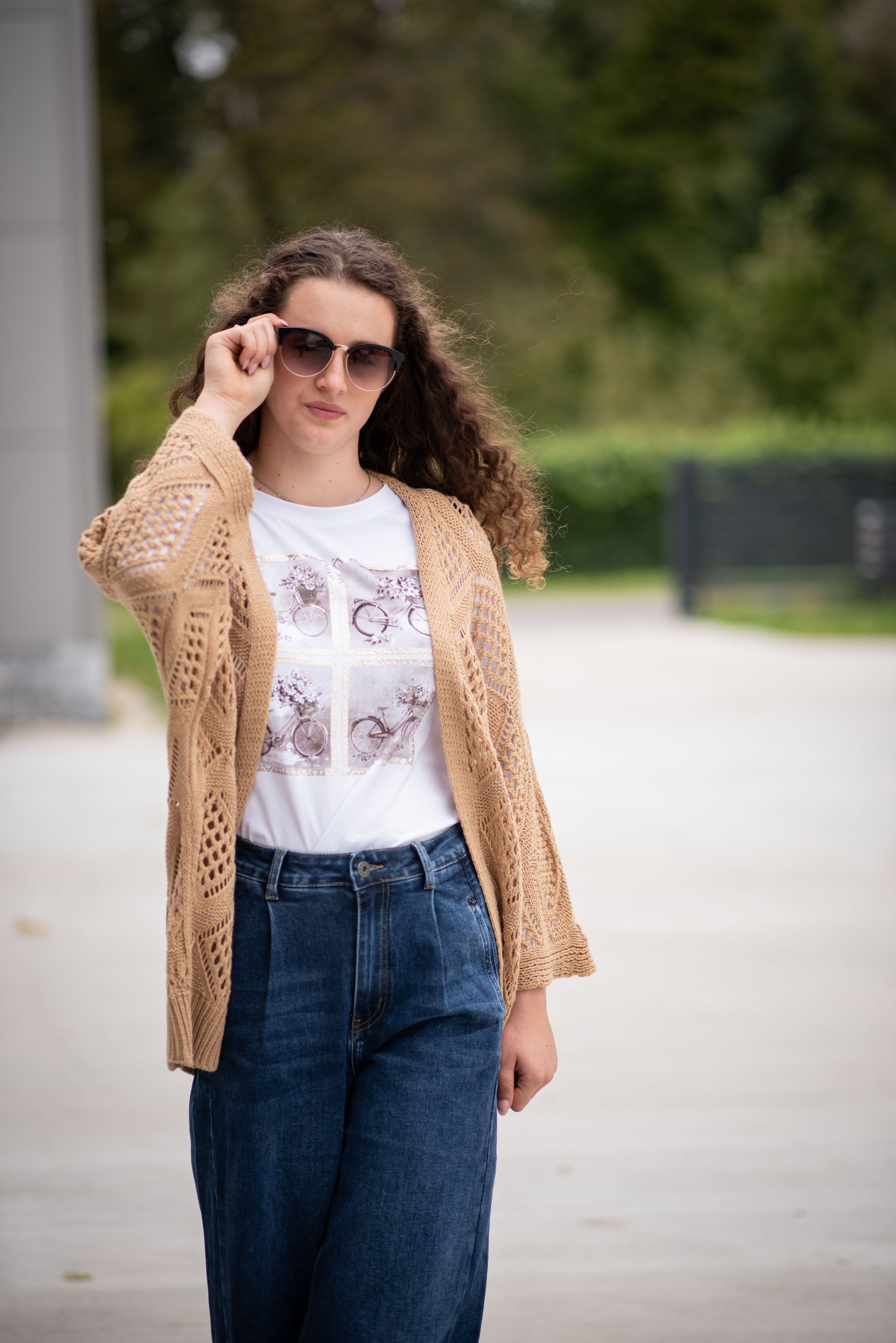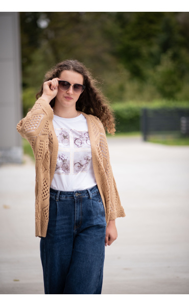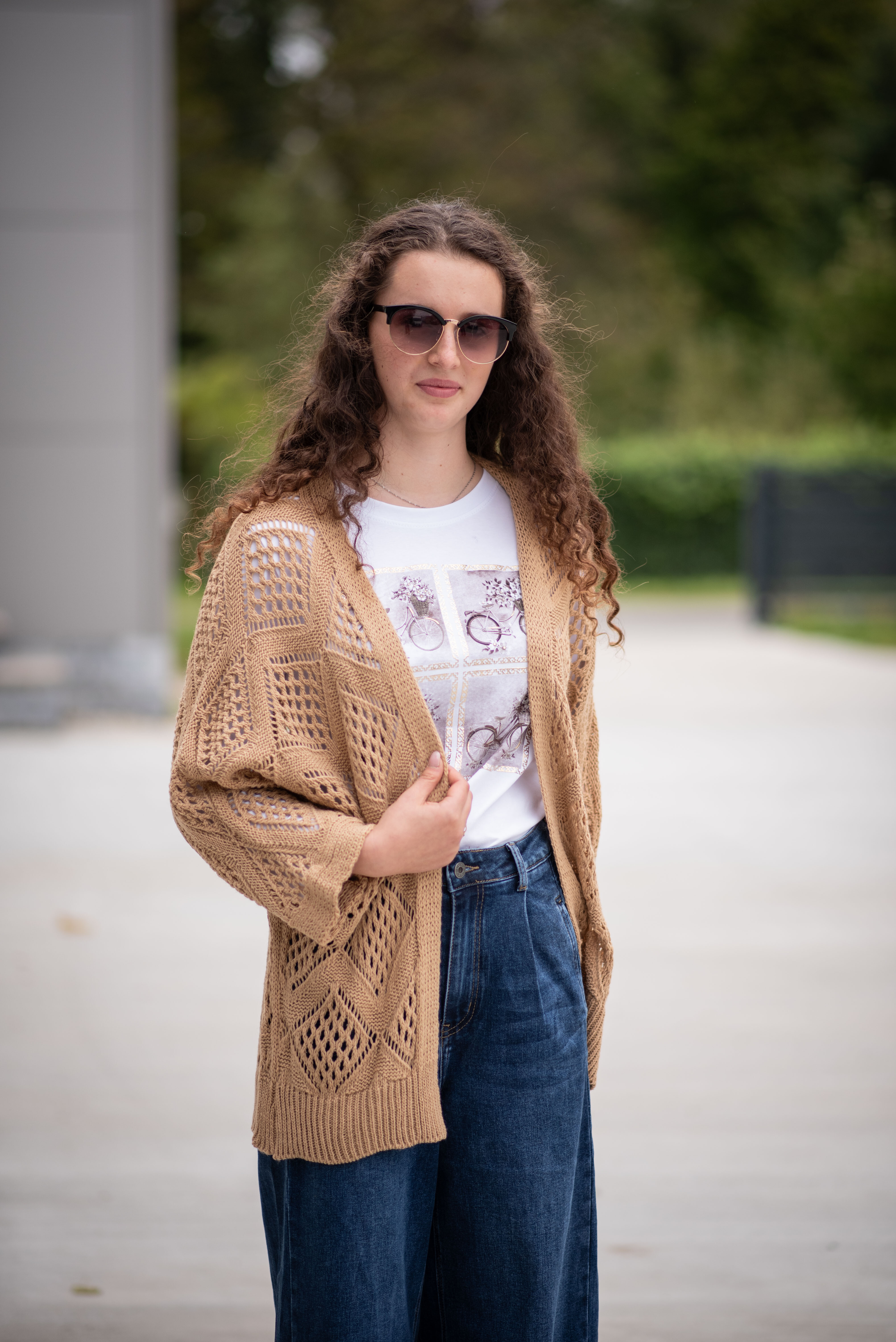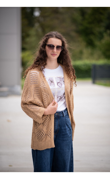 - Kardigan přízový s 3/4 rukávem volnějšího střihu.
