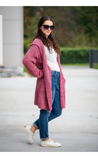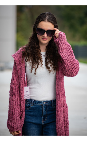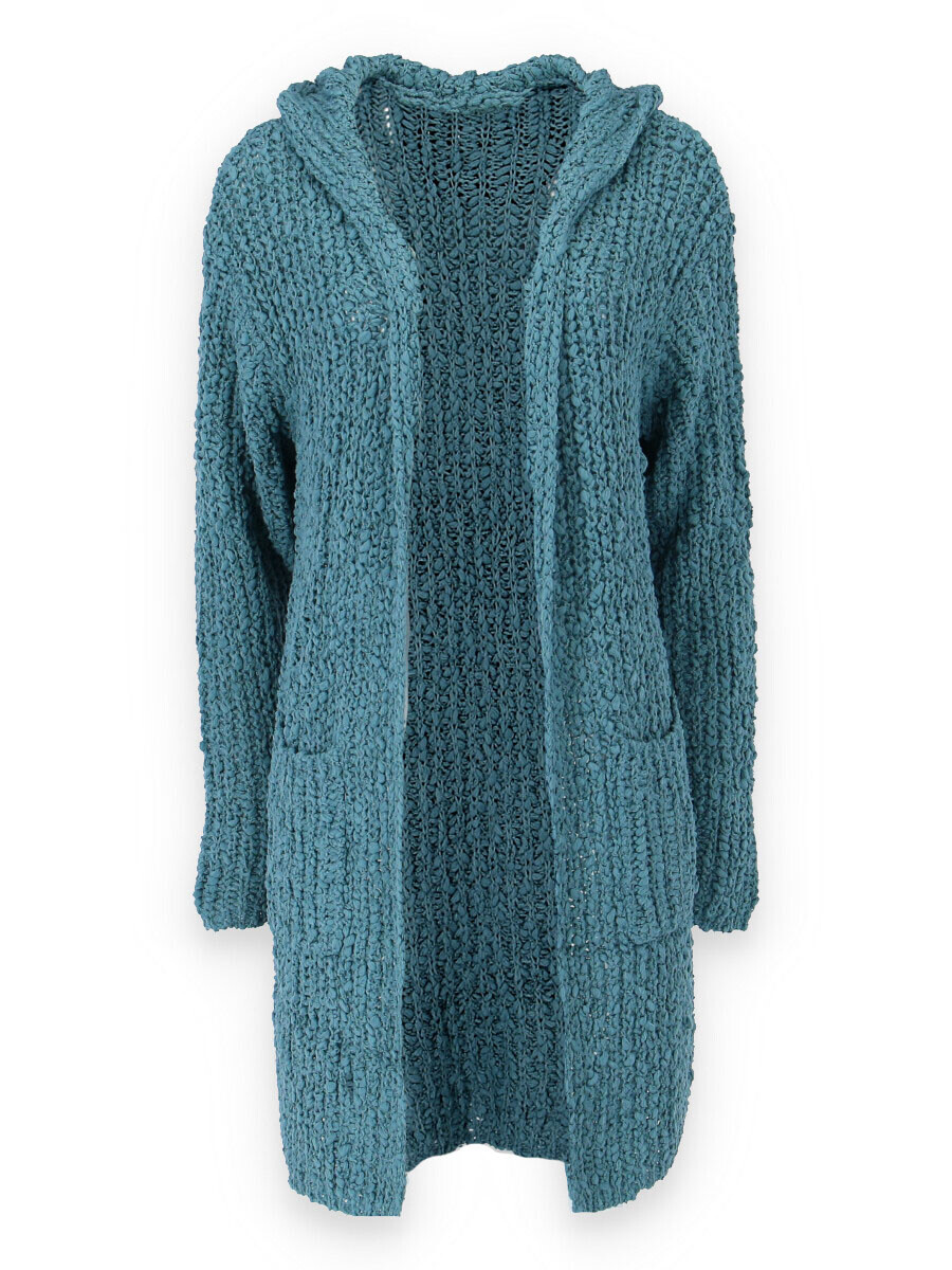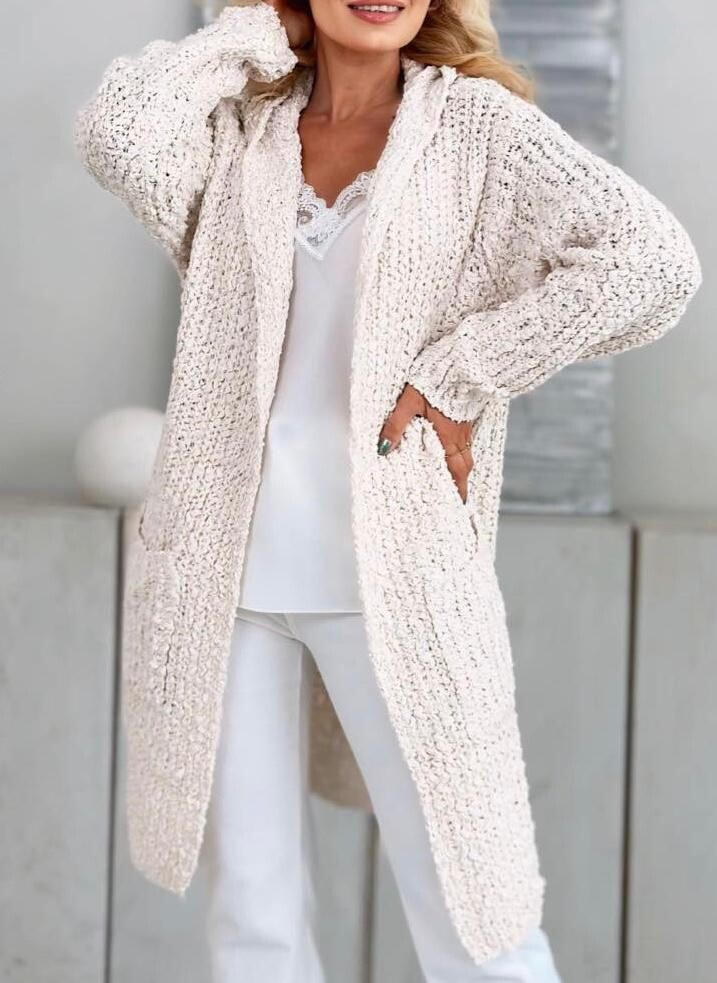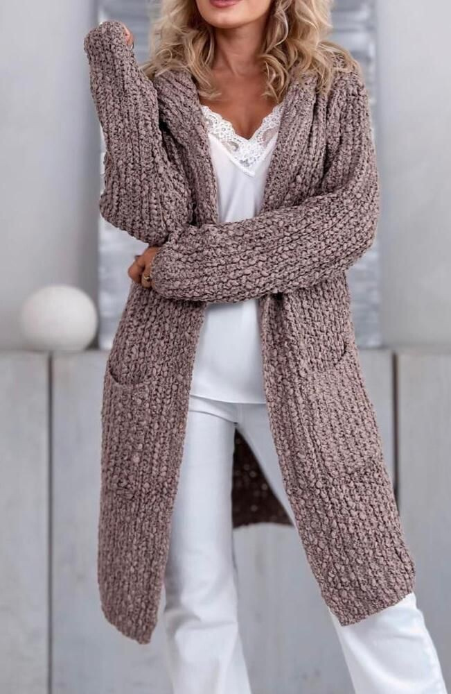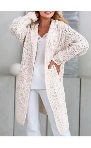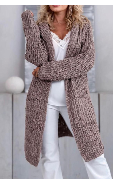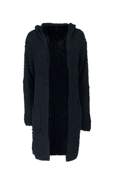 Dlouhý kardigan buklé s kapucí.
