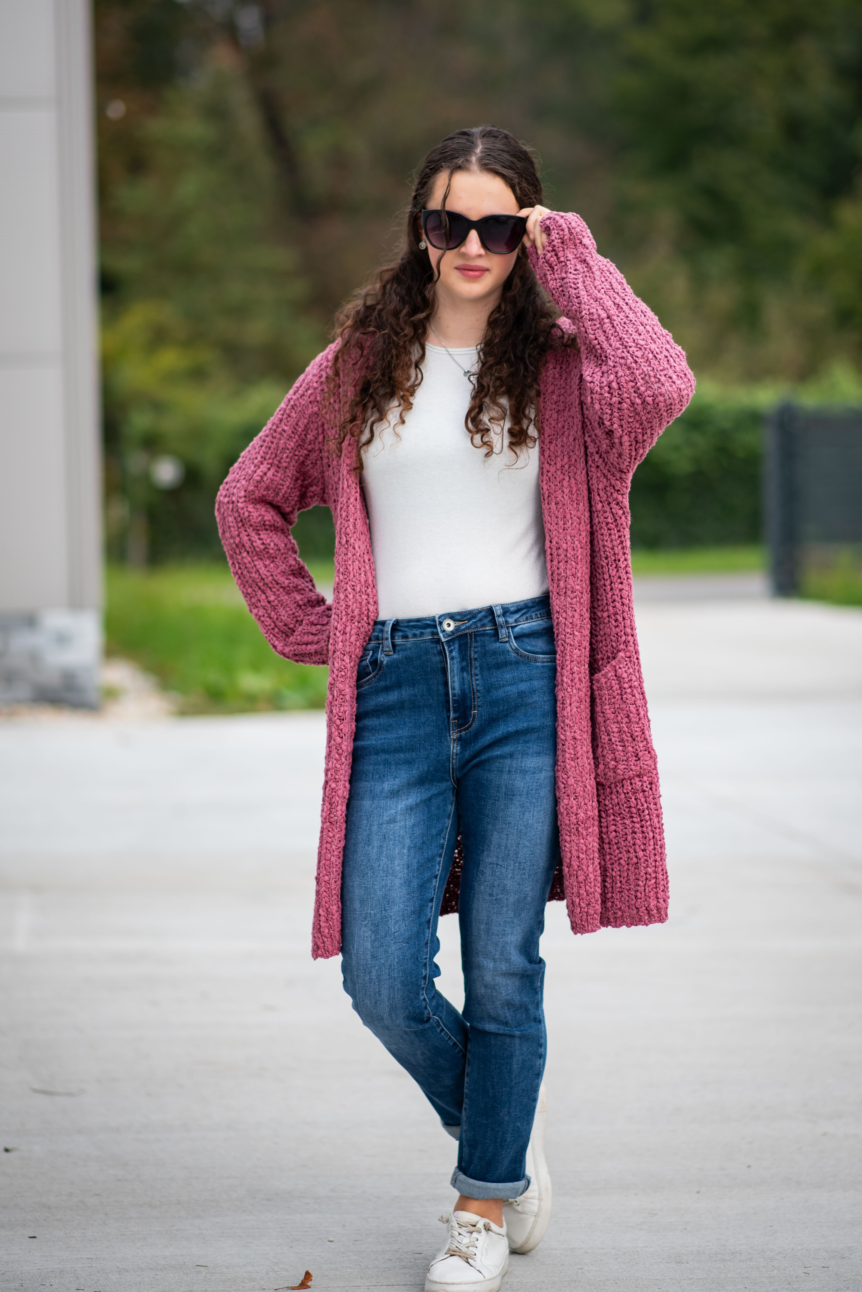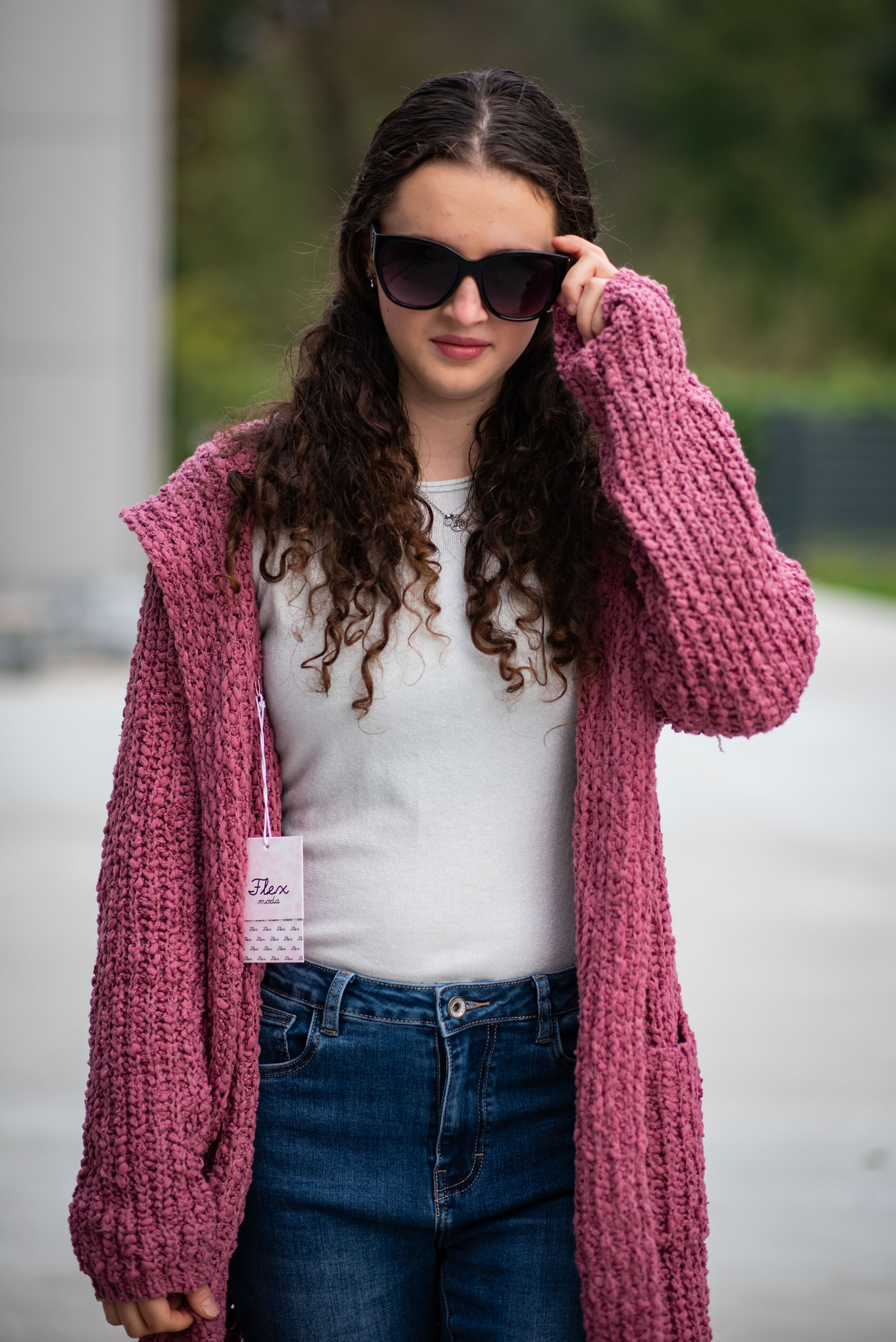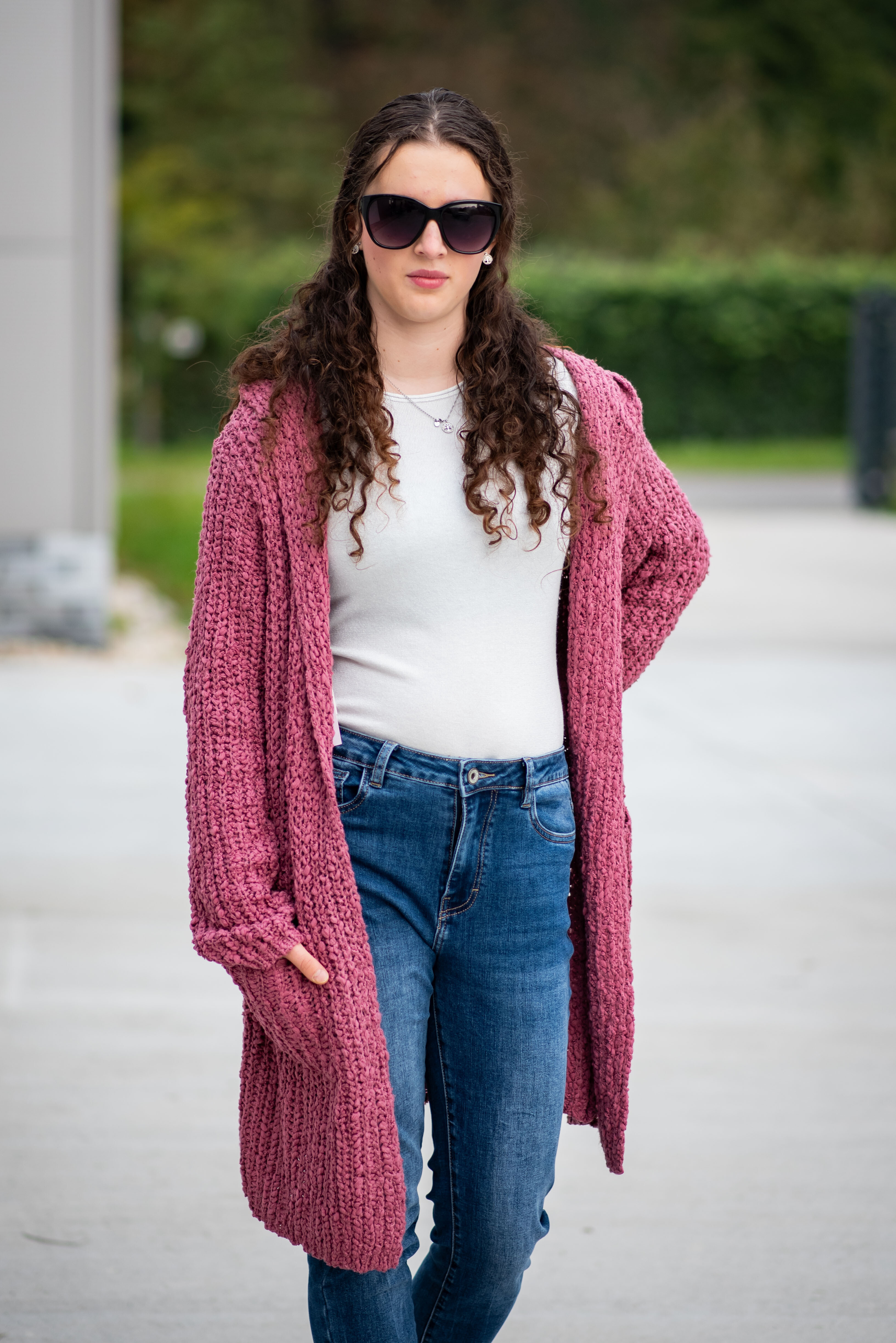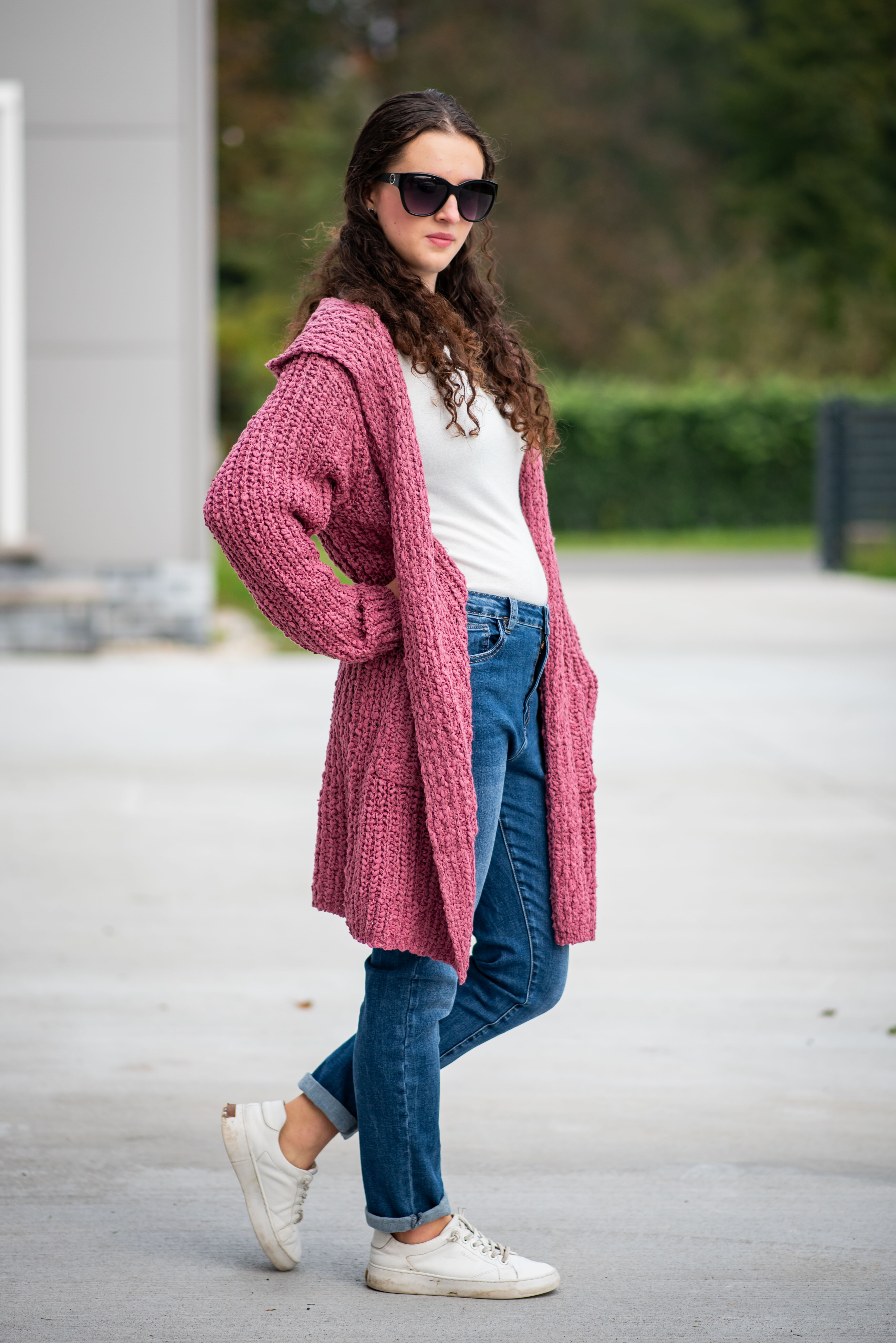Dlouhý kardigan buklé s kapucí.
