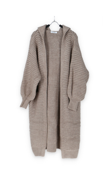 Kardigan dlouhý úpletový s kapucí USee 9587 Itálie