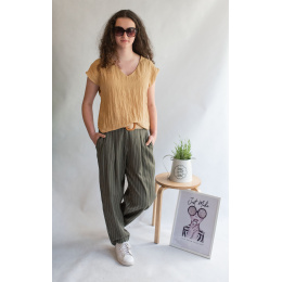 Lněné kalhoty s proužkem 35289 Itálie