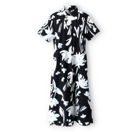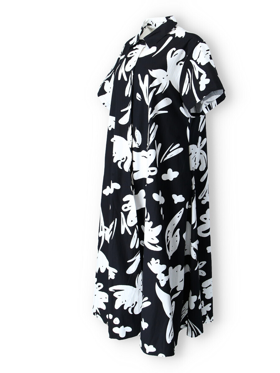 Dámské košilové šaty s potiskem. Šaty jsou propínací, mají krátký rukáv a všité kapsy po stranách.