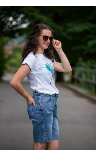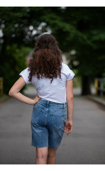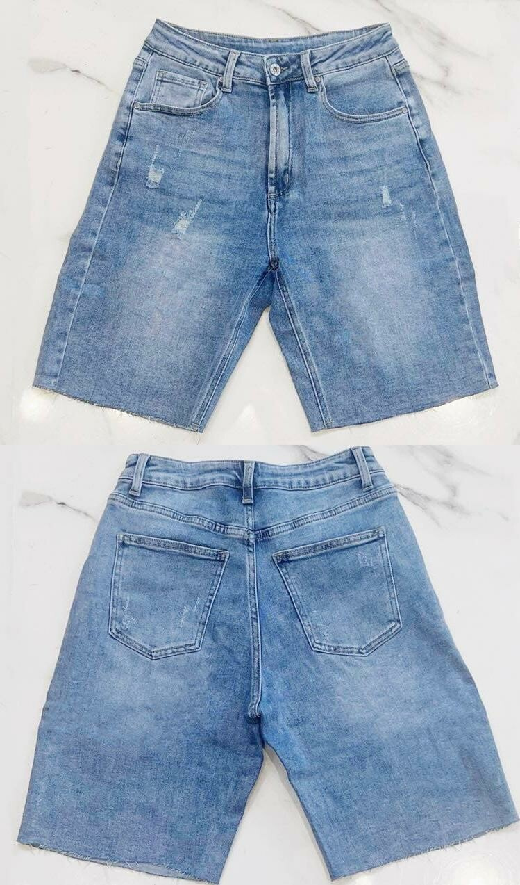 Módní džínové kraťasy, ve spodní části nejsou zakončené lemem. Itálie