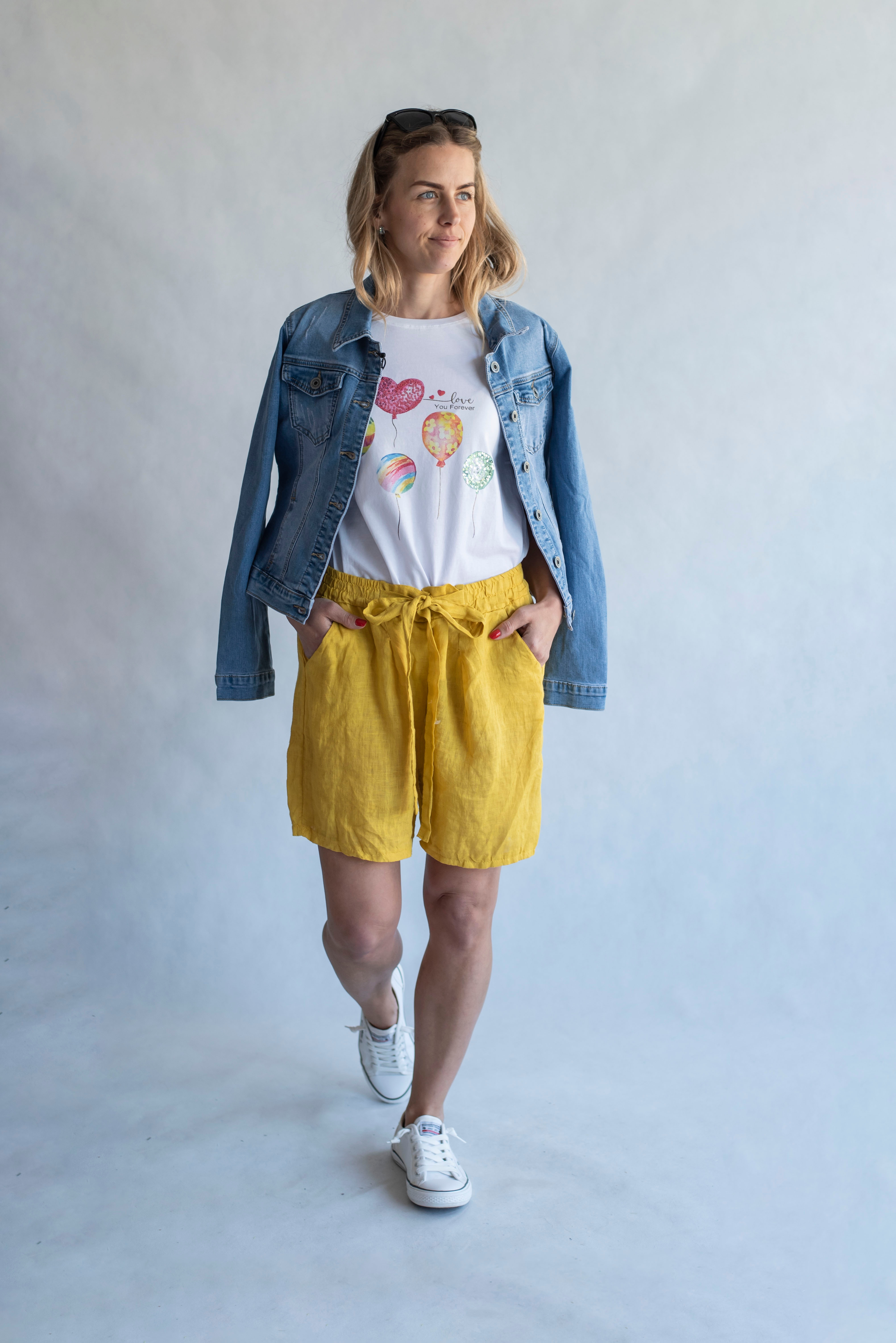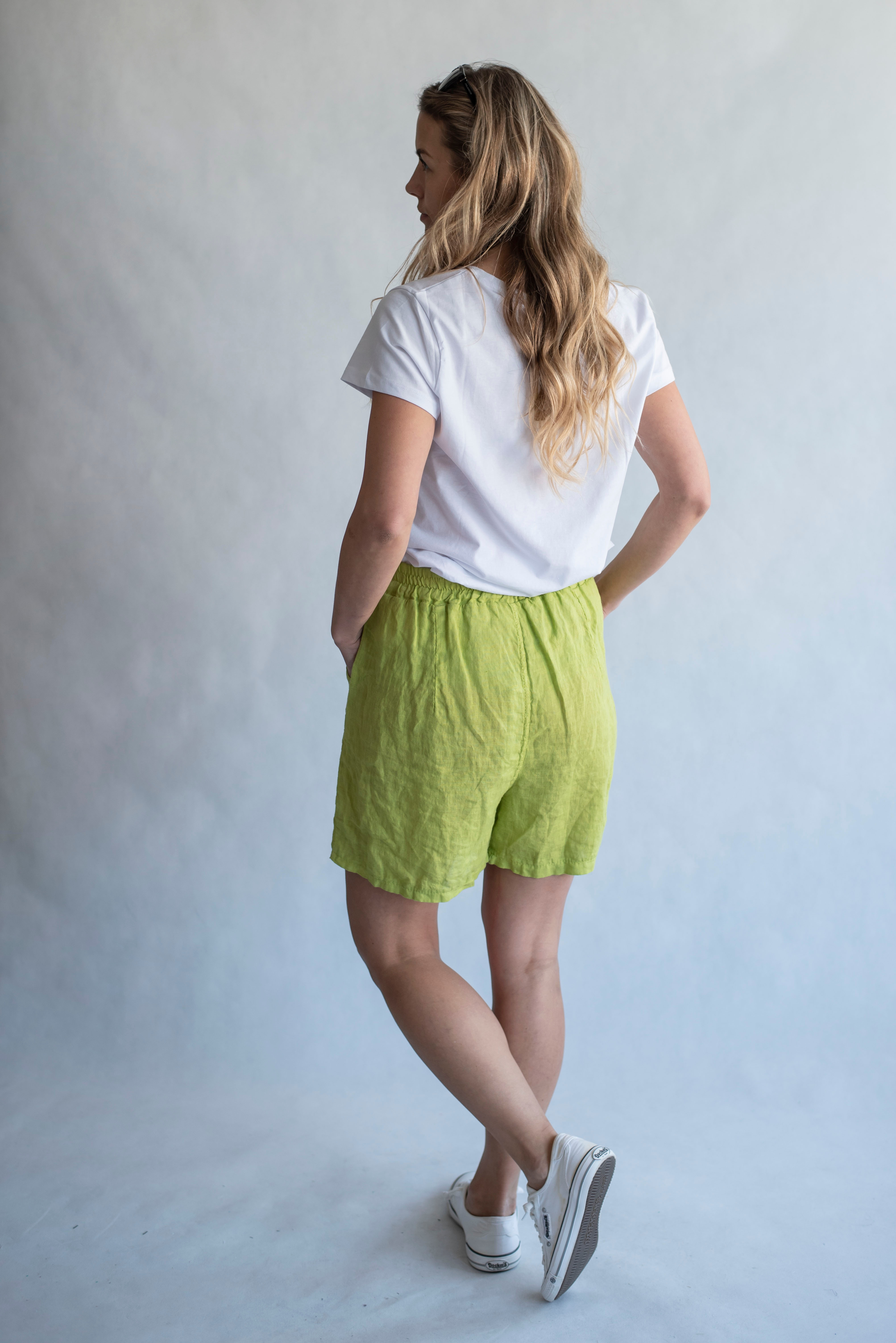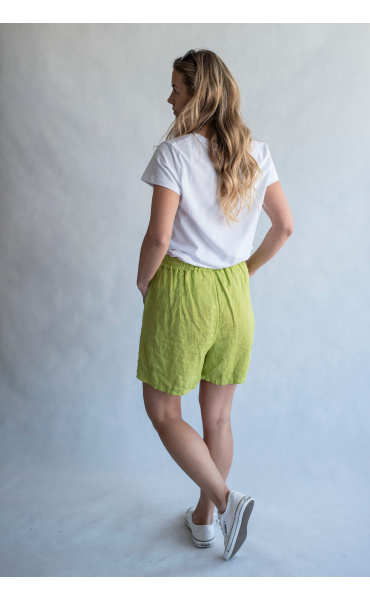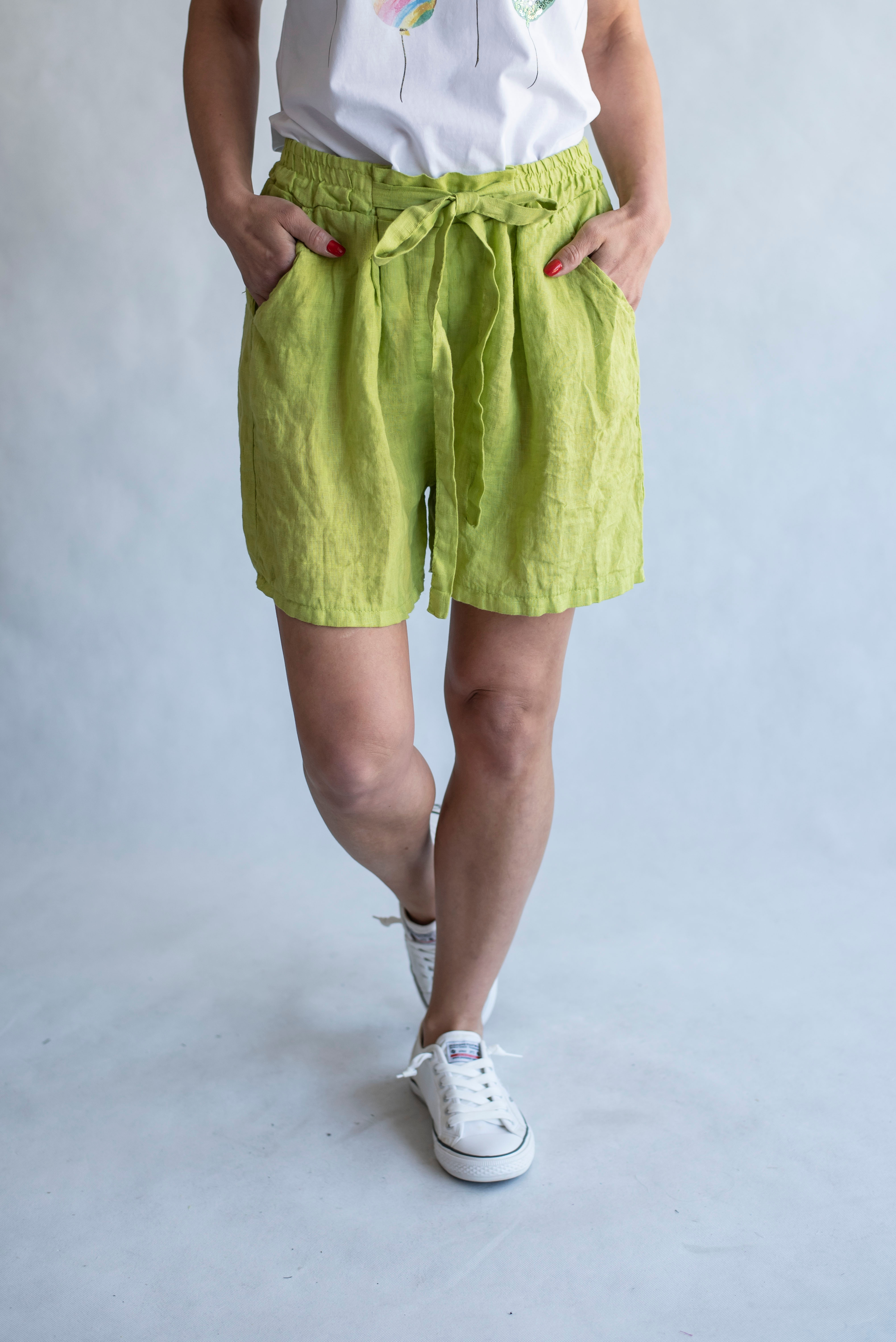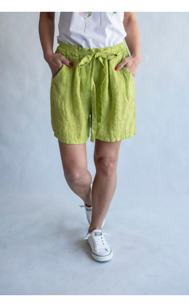 Módní lněné letní kraťasy, velice příjemné na každodenní nošení. Guma v pase spolu s vázáním, kapsy v předu