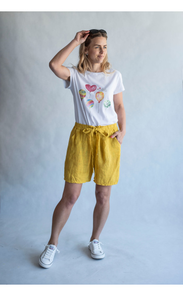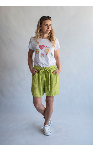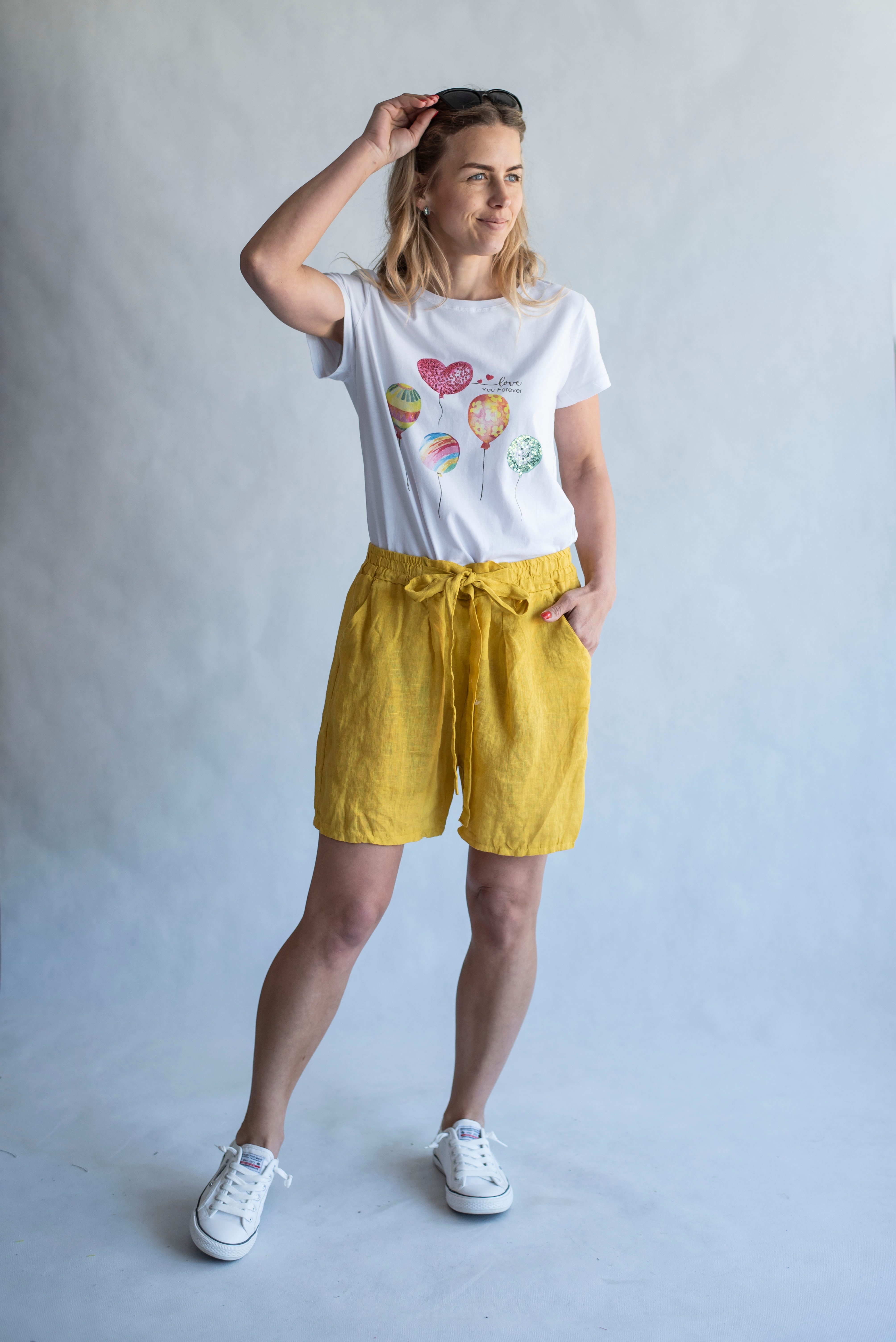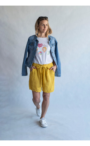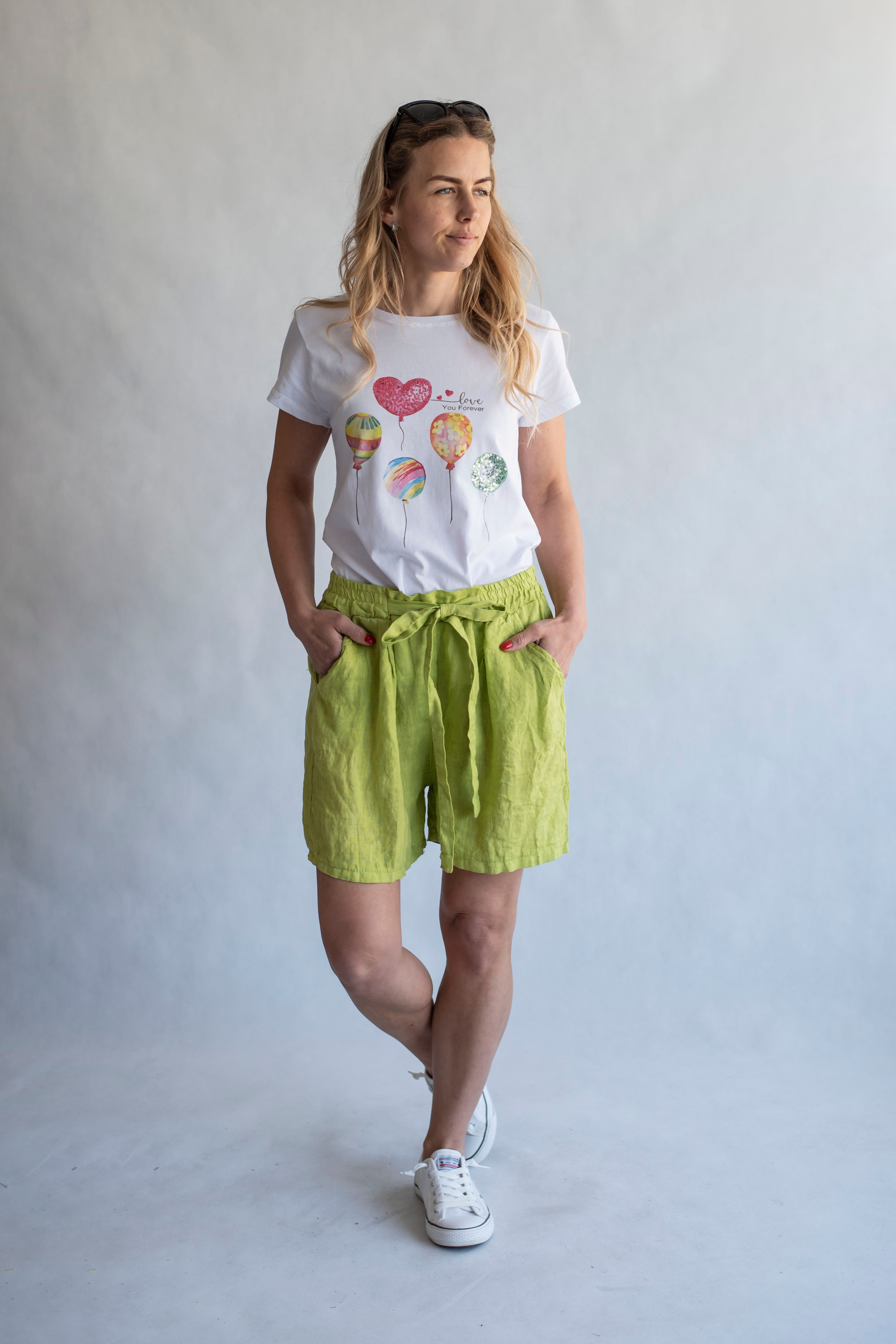 Módní lněné letní kraťasy, velice příjemné na každodenní nošení. Guma v pase spolu s vázáním, kapsy v předu