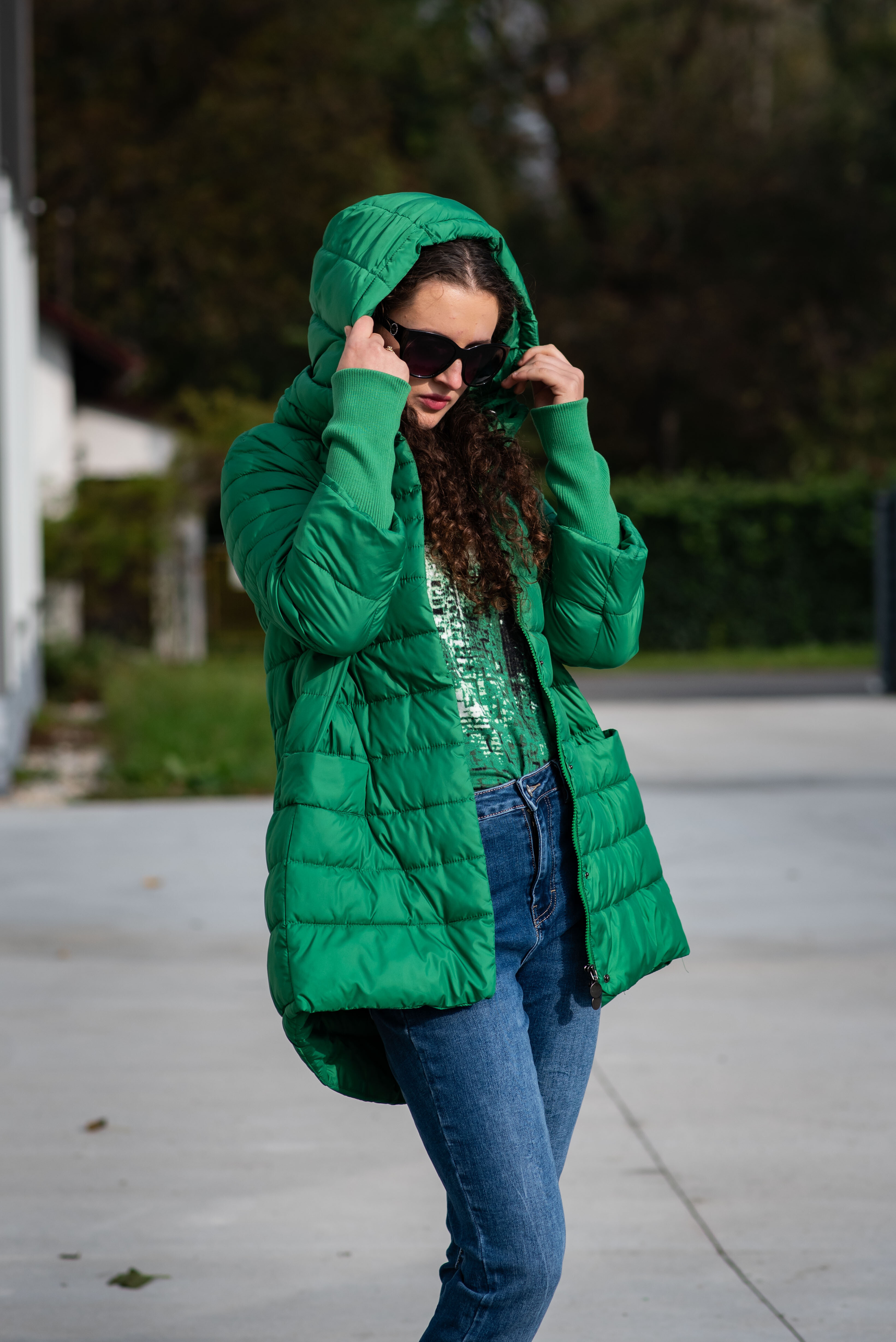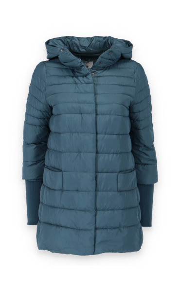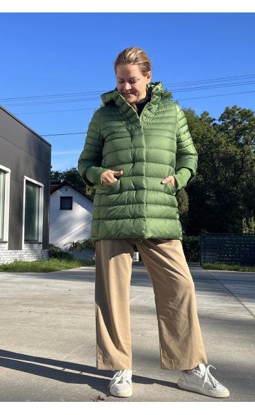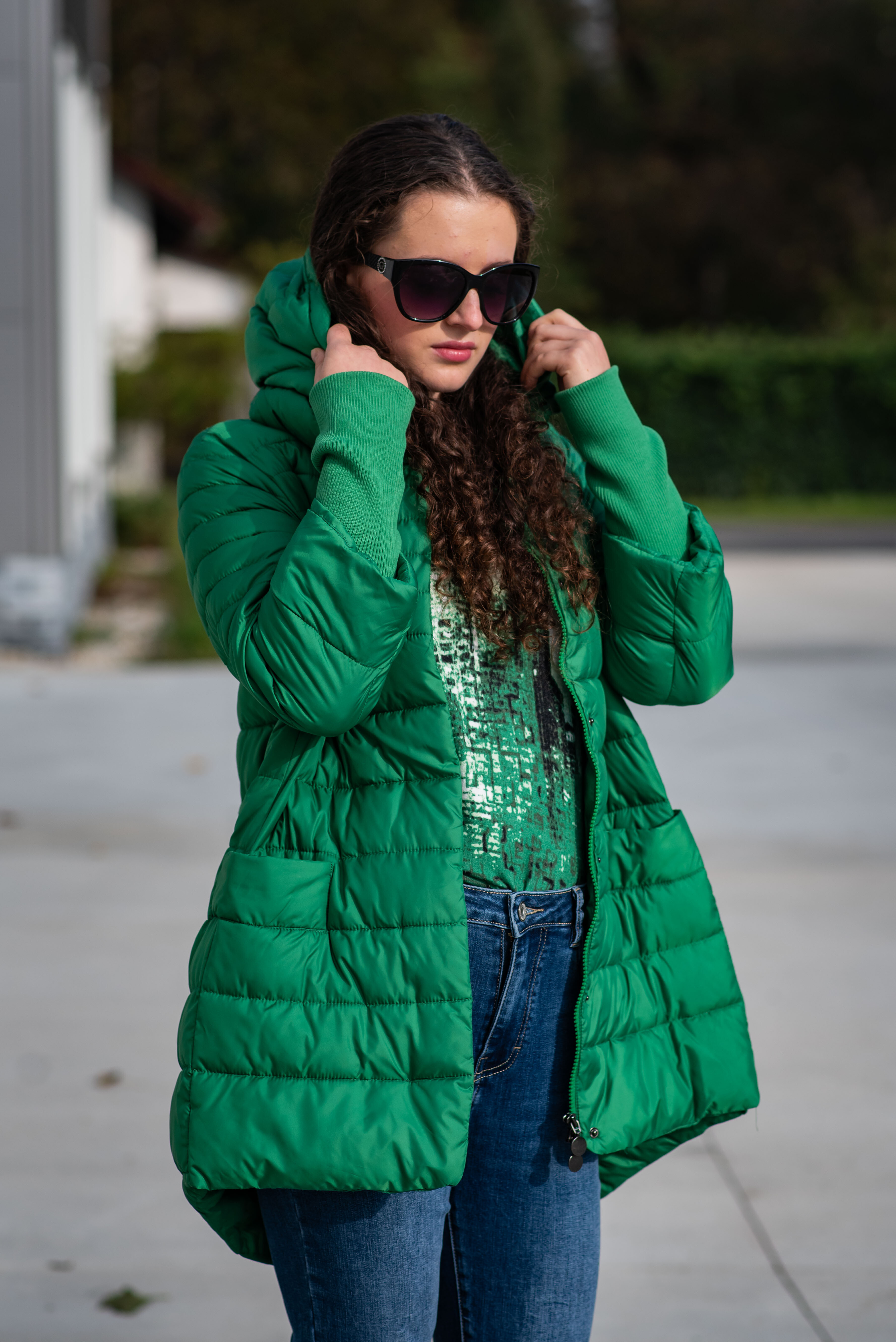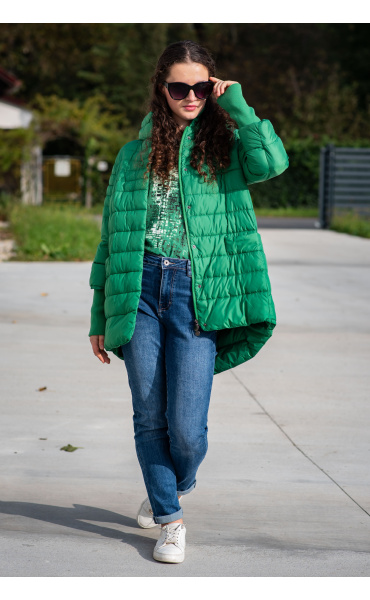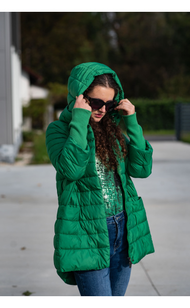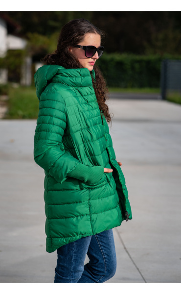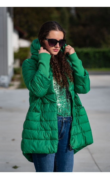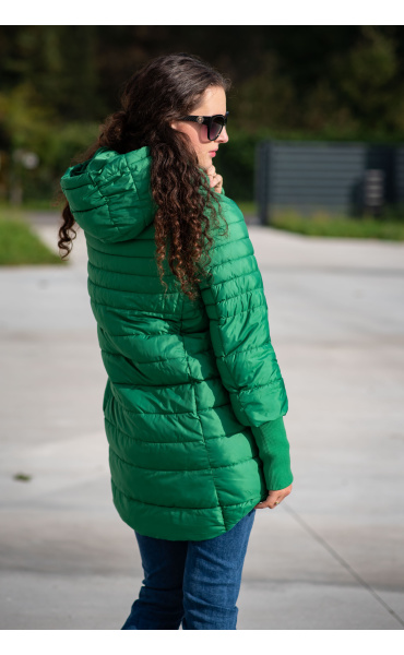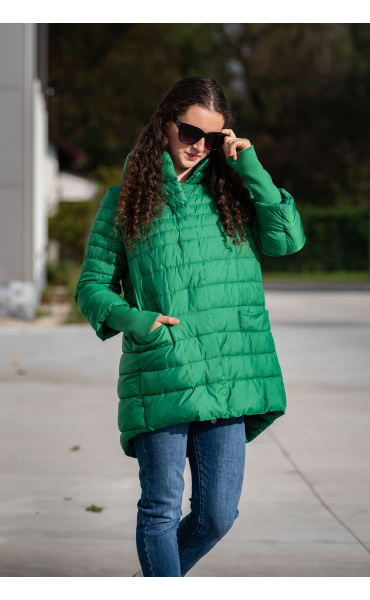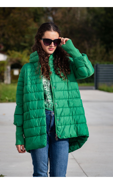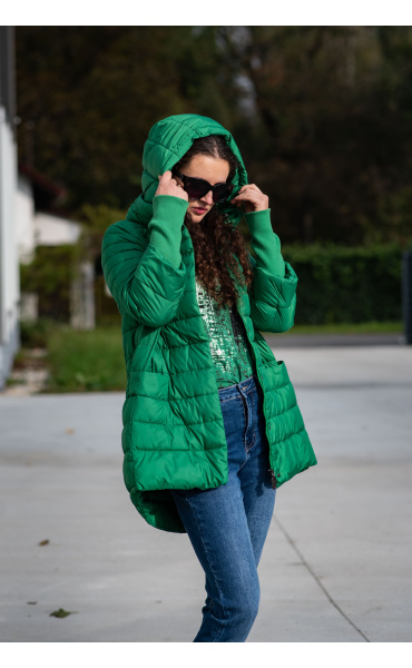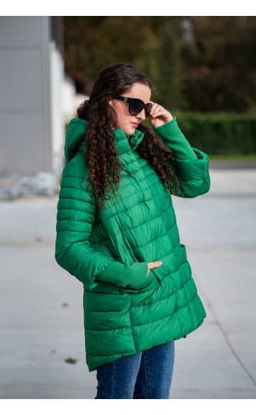 Krátká stylová bunda s kapucí, 3/4rukáv - zbývající délka doplněna úpletem.