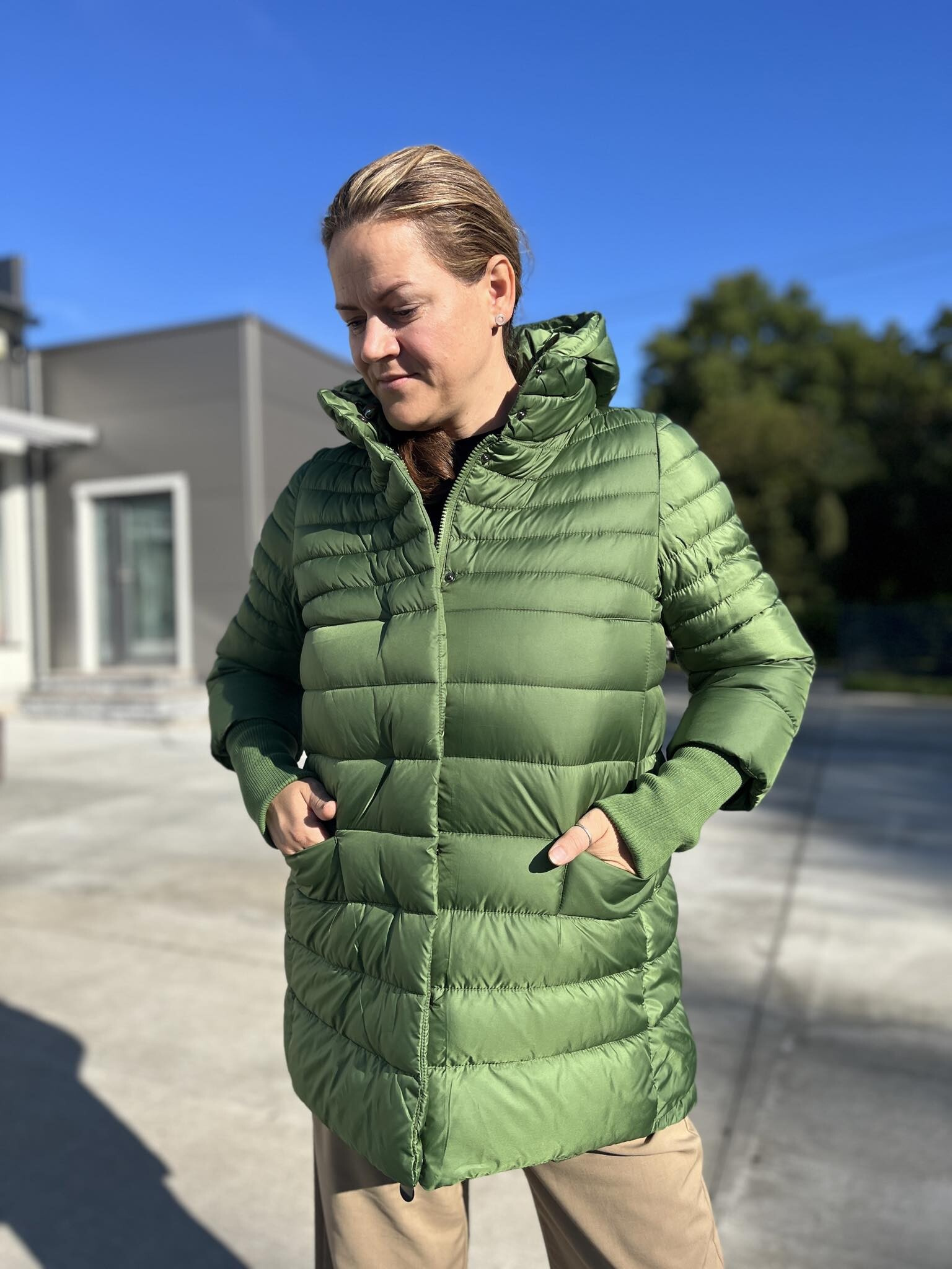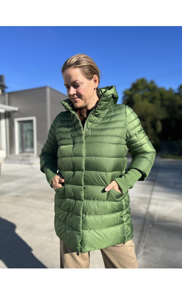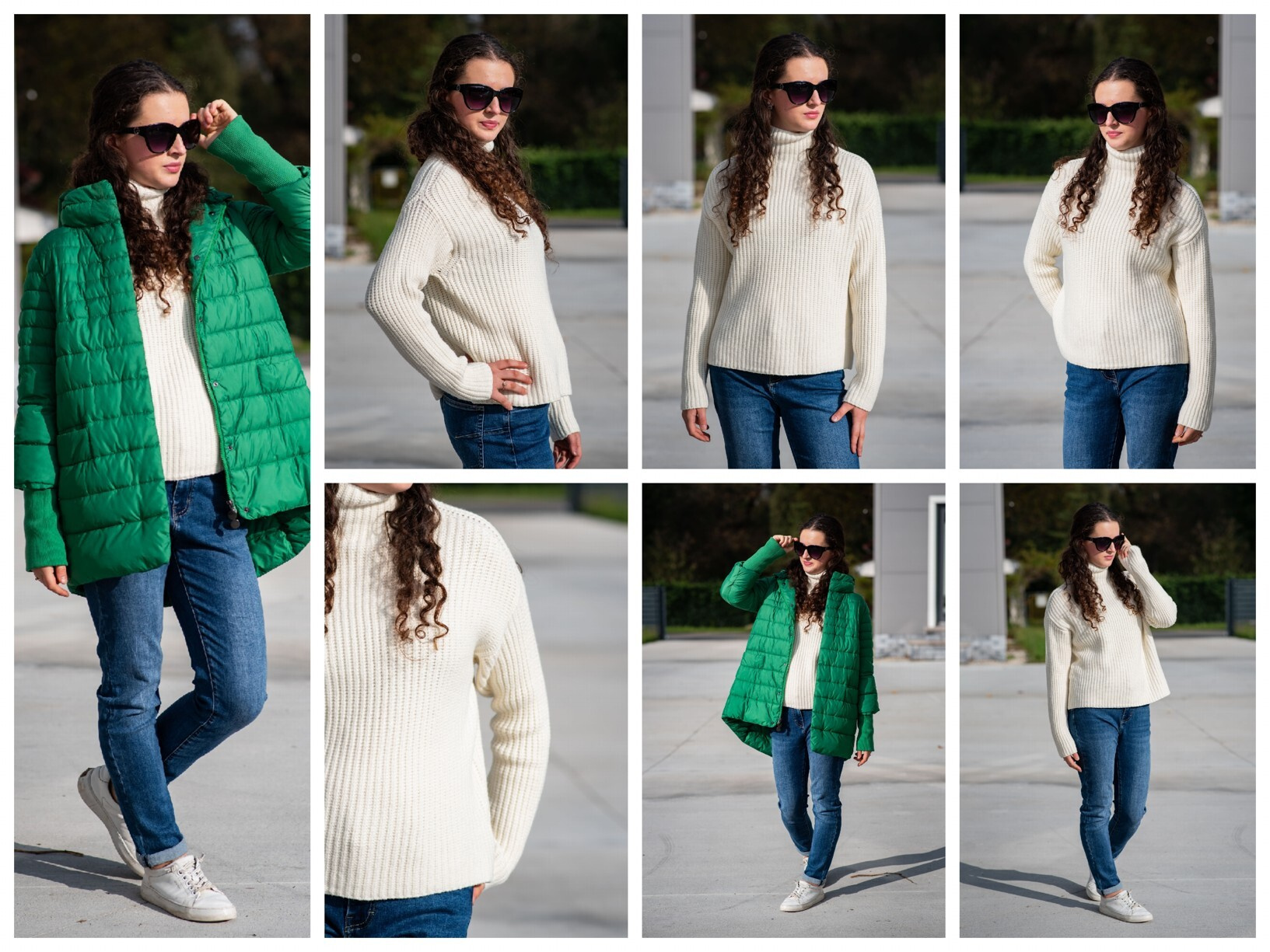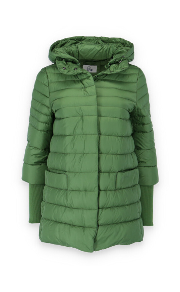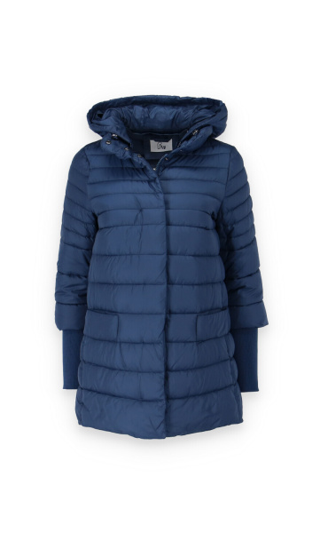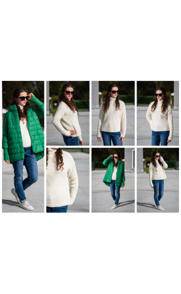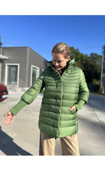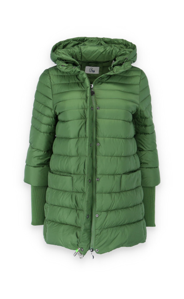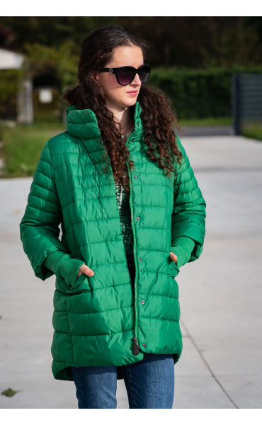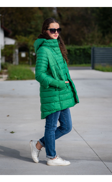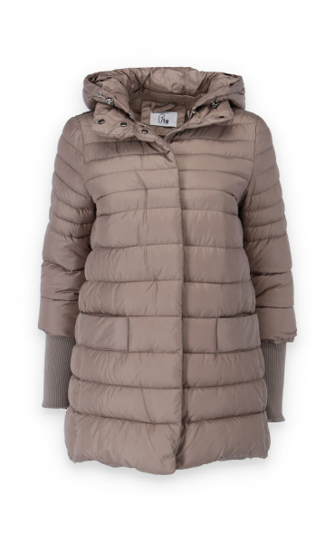 Krátká stylová bunda s kapucí, 3/4rukáv - zbývající délka doplněna úpletem.