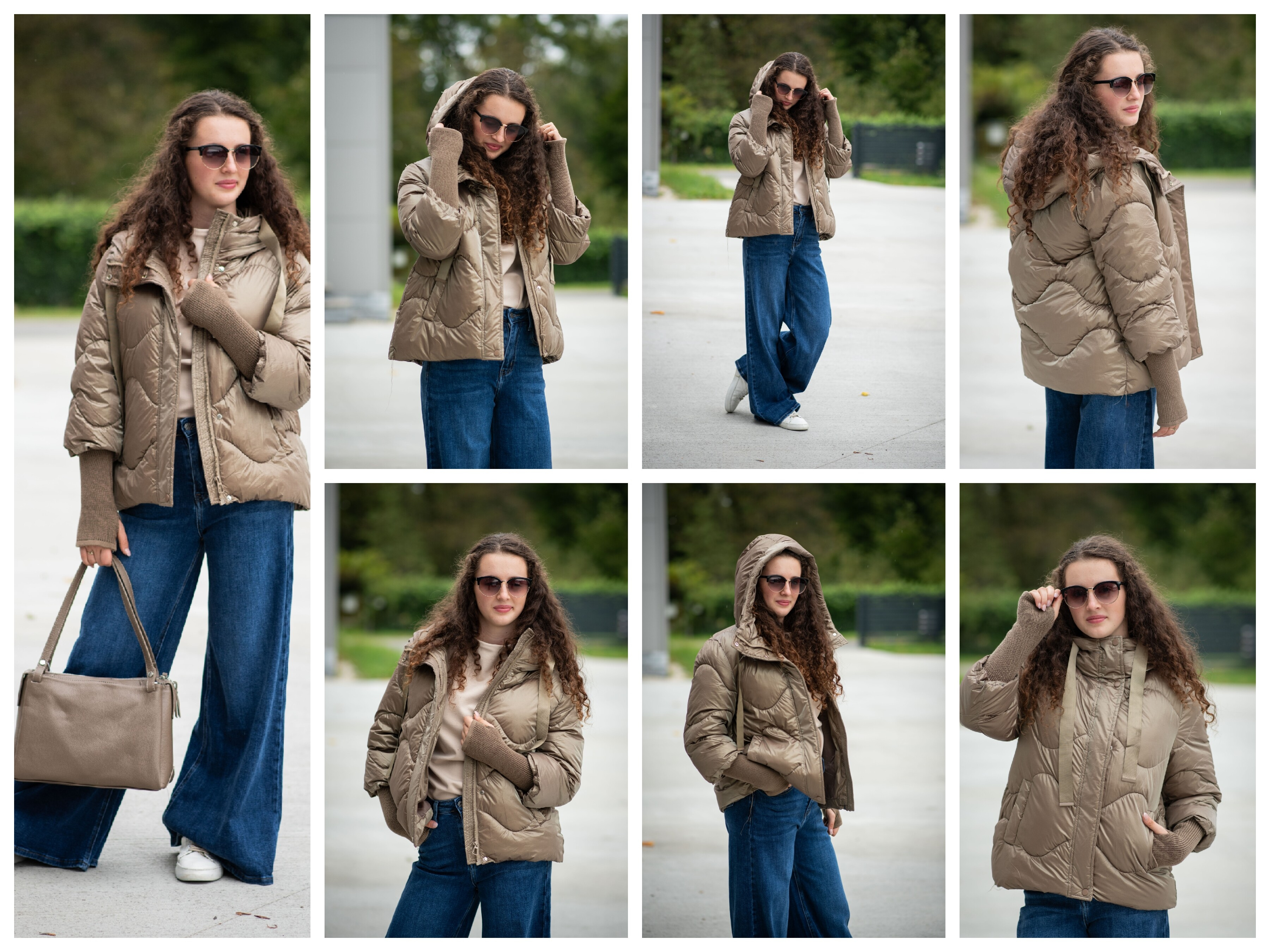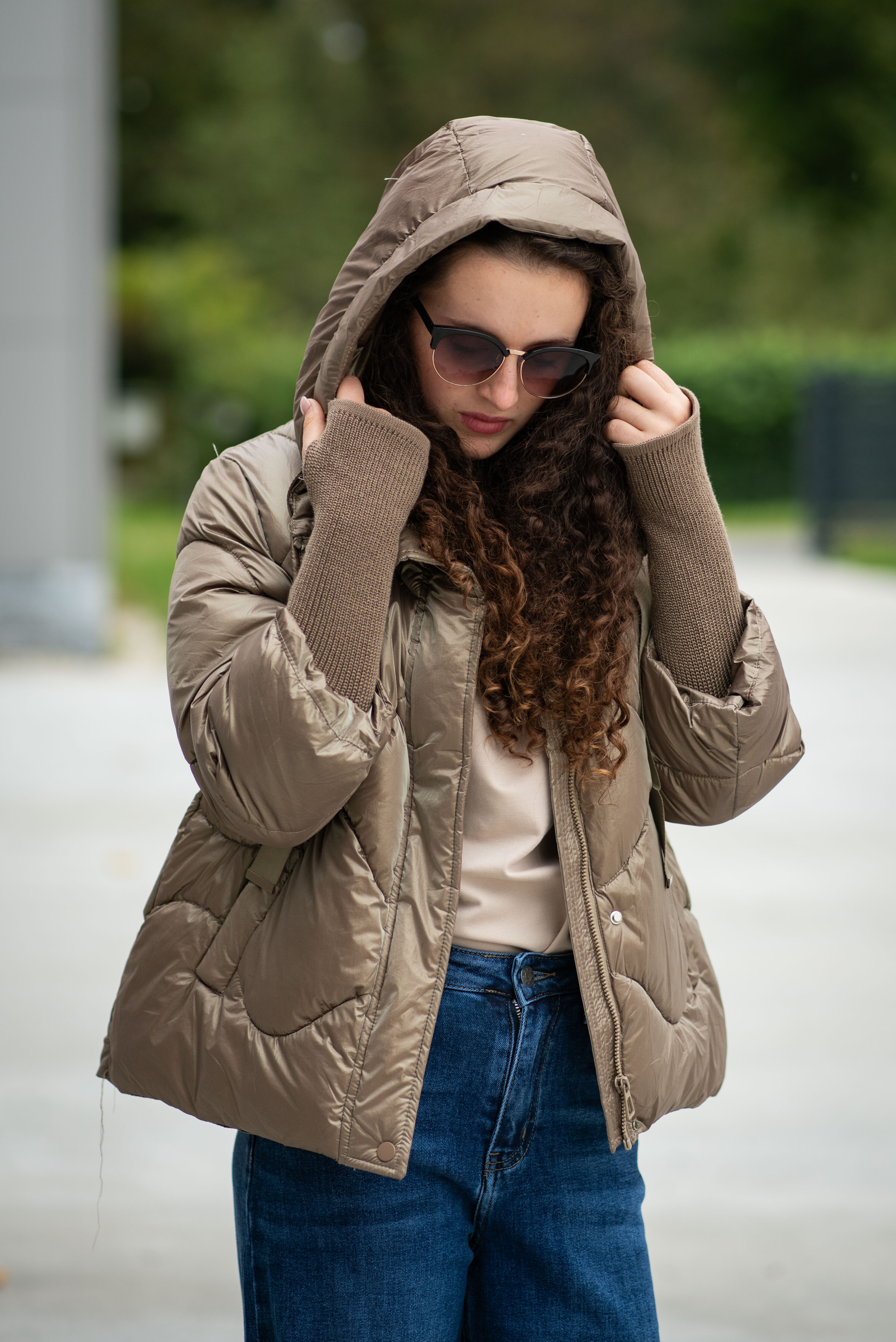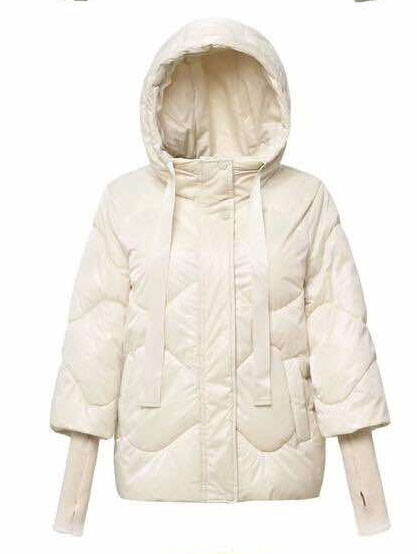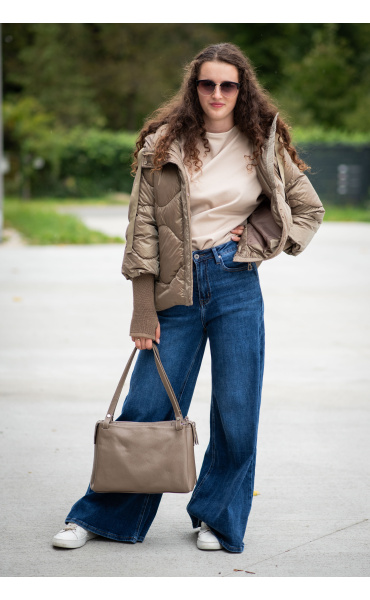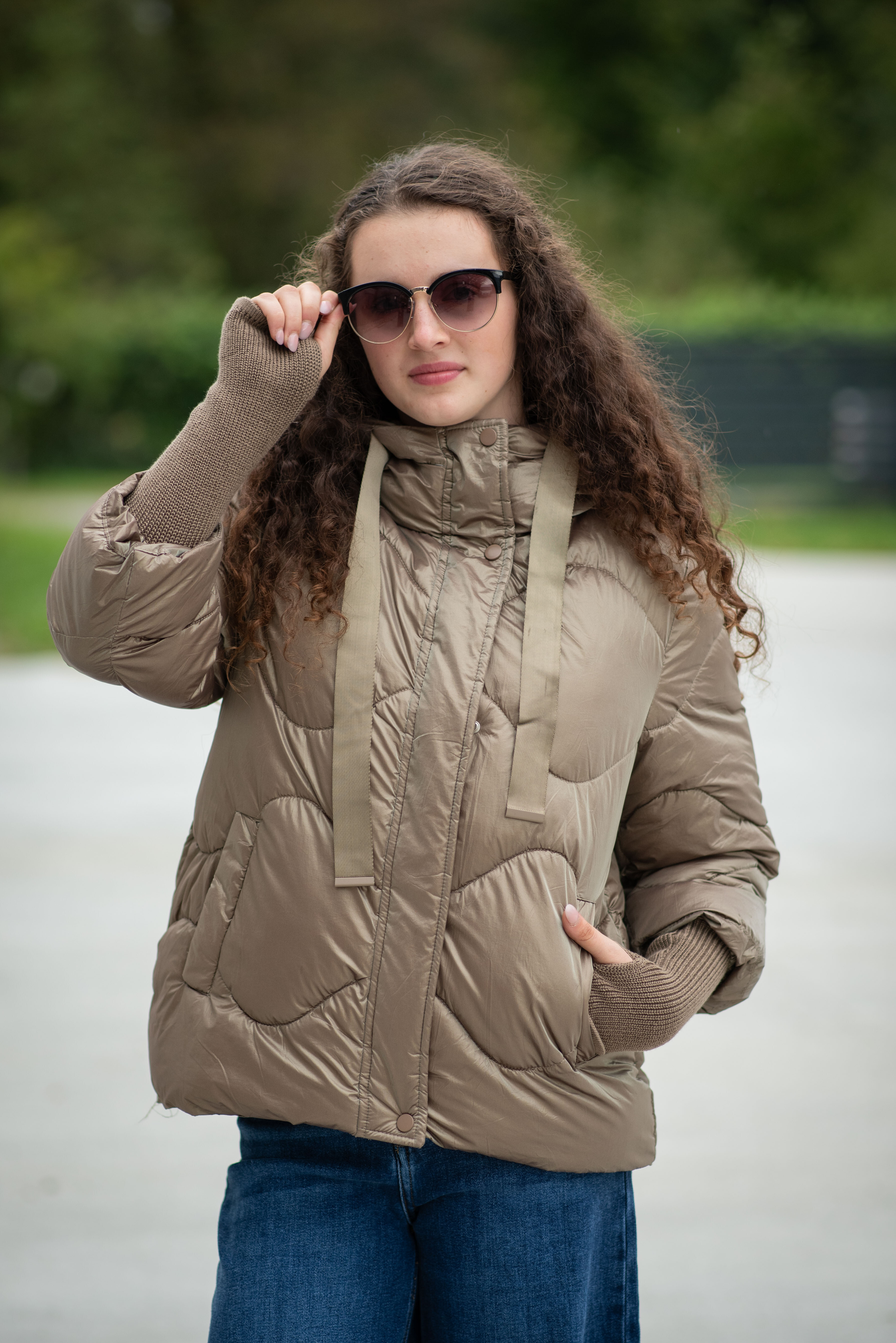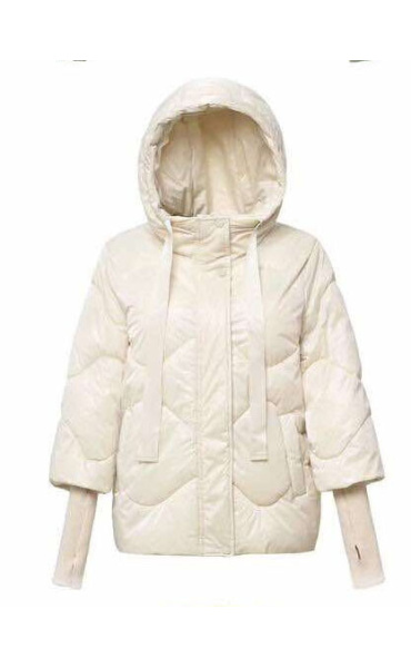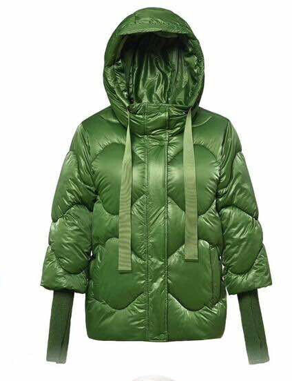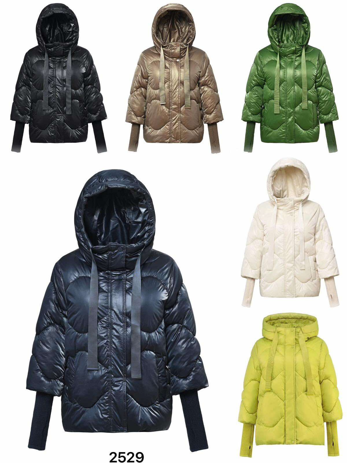 Krátká stylová bunda s kapucí, 3/4rukáv - zbývající délka doplněna úpletem. Přední kapsy jsou na druky. Možnost regulace stažení ve spodní části bundy. Dovoz Itálie