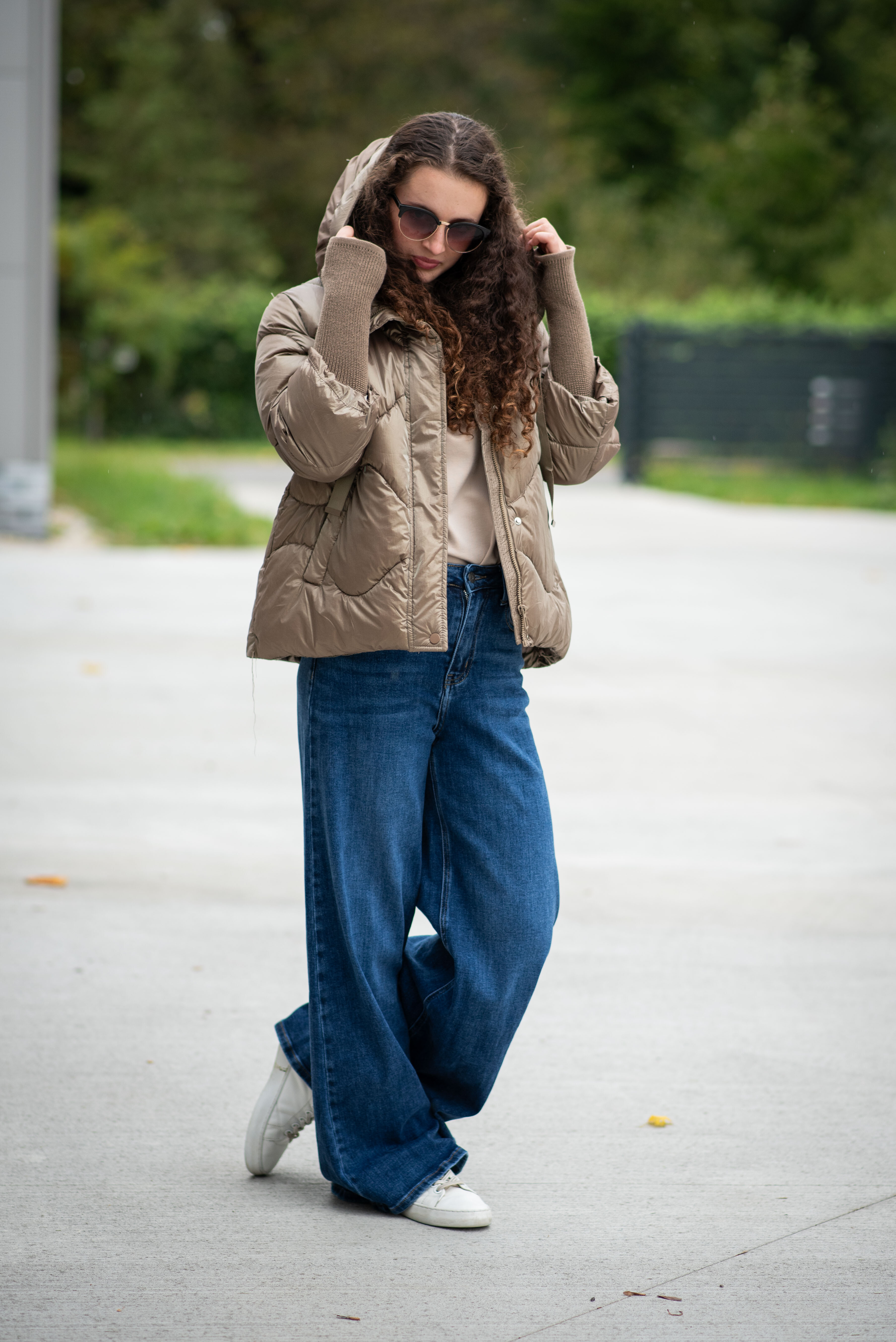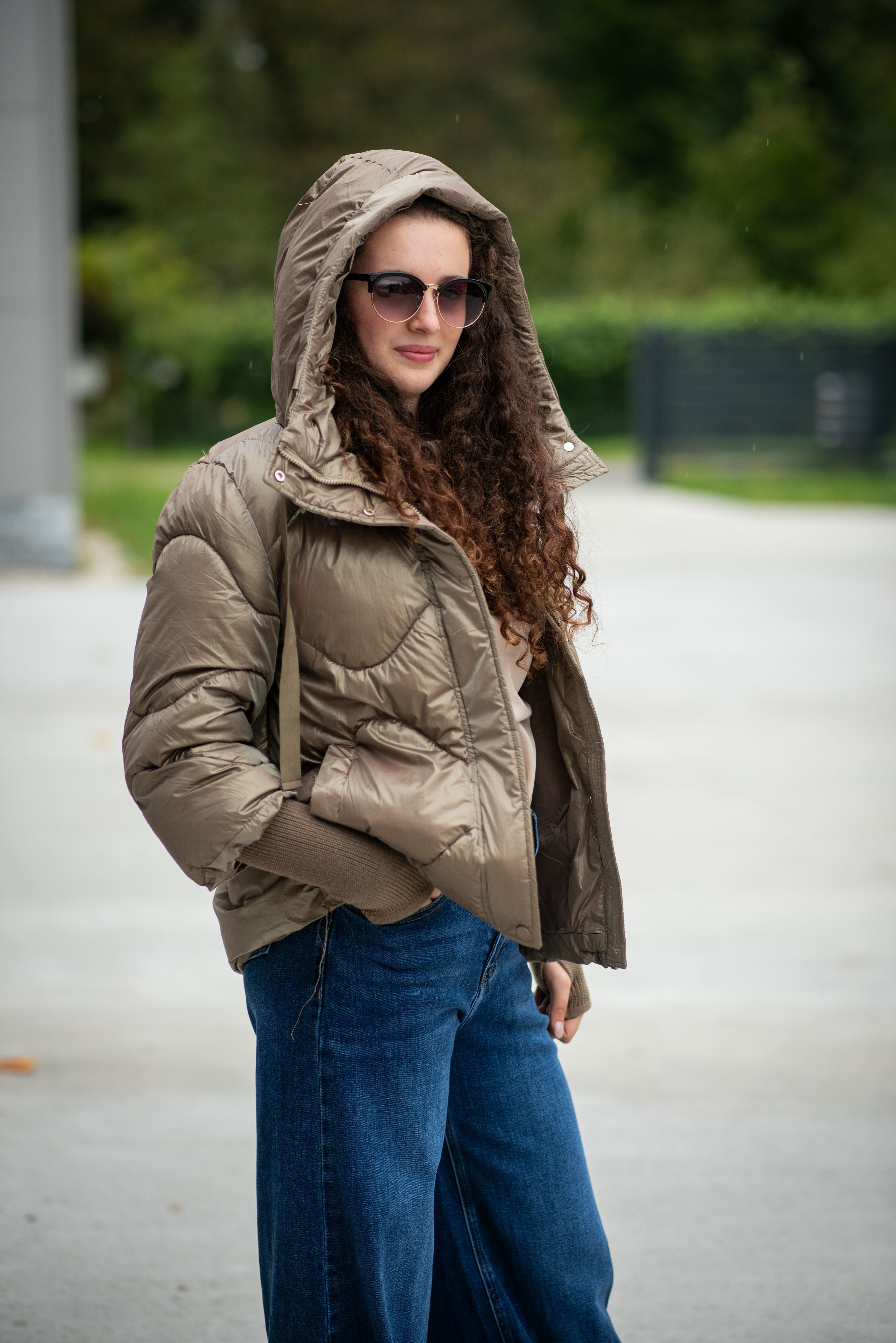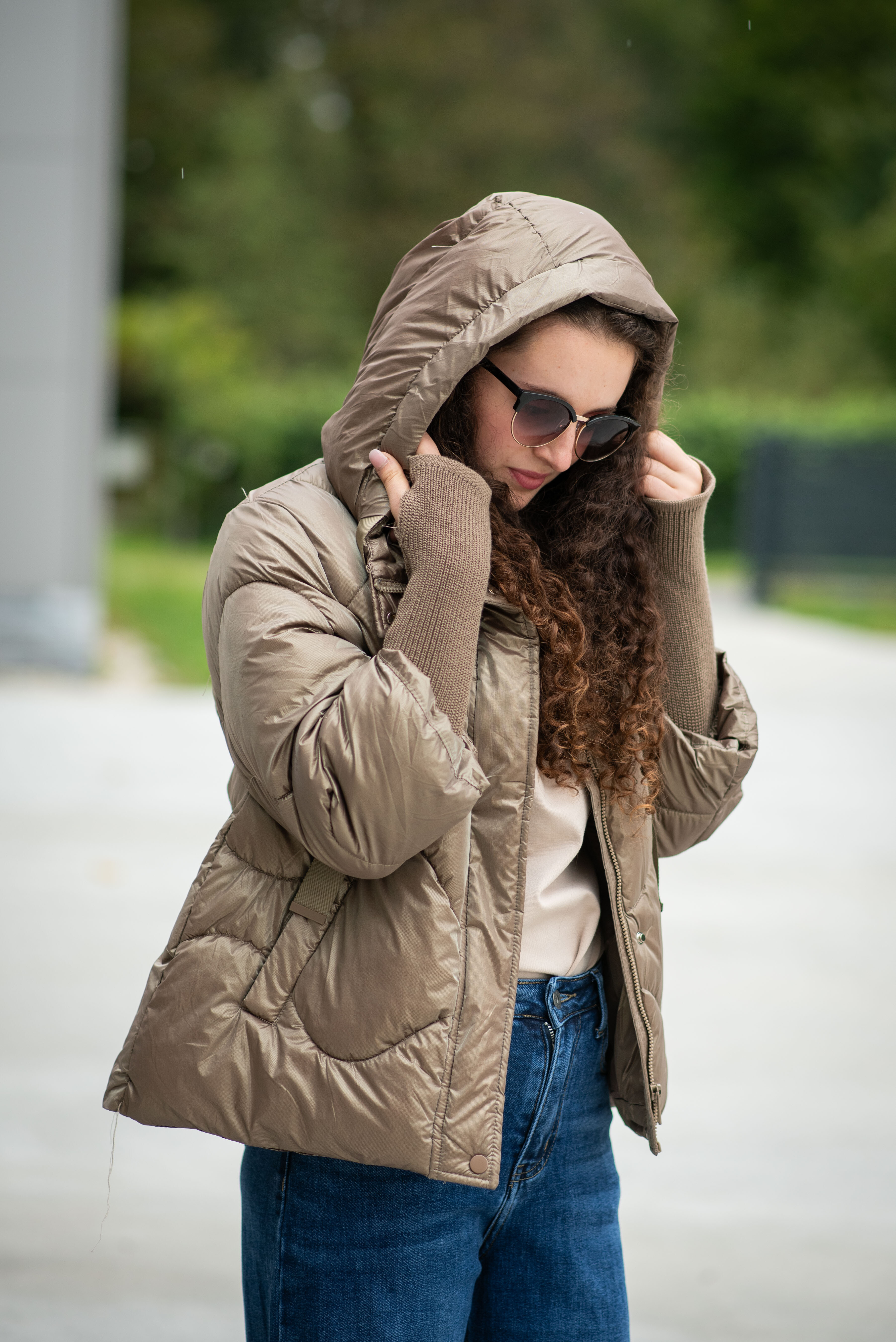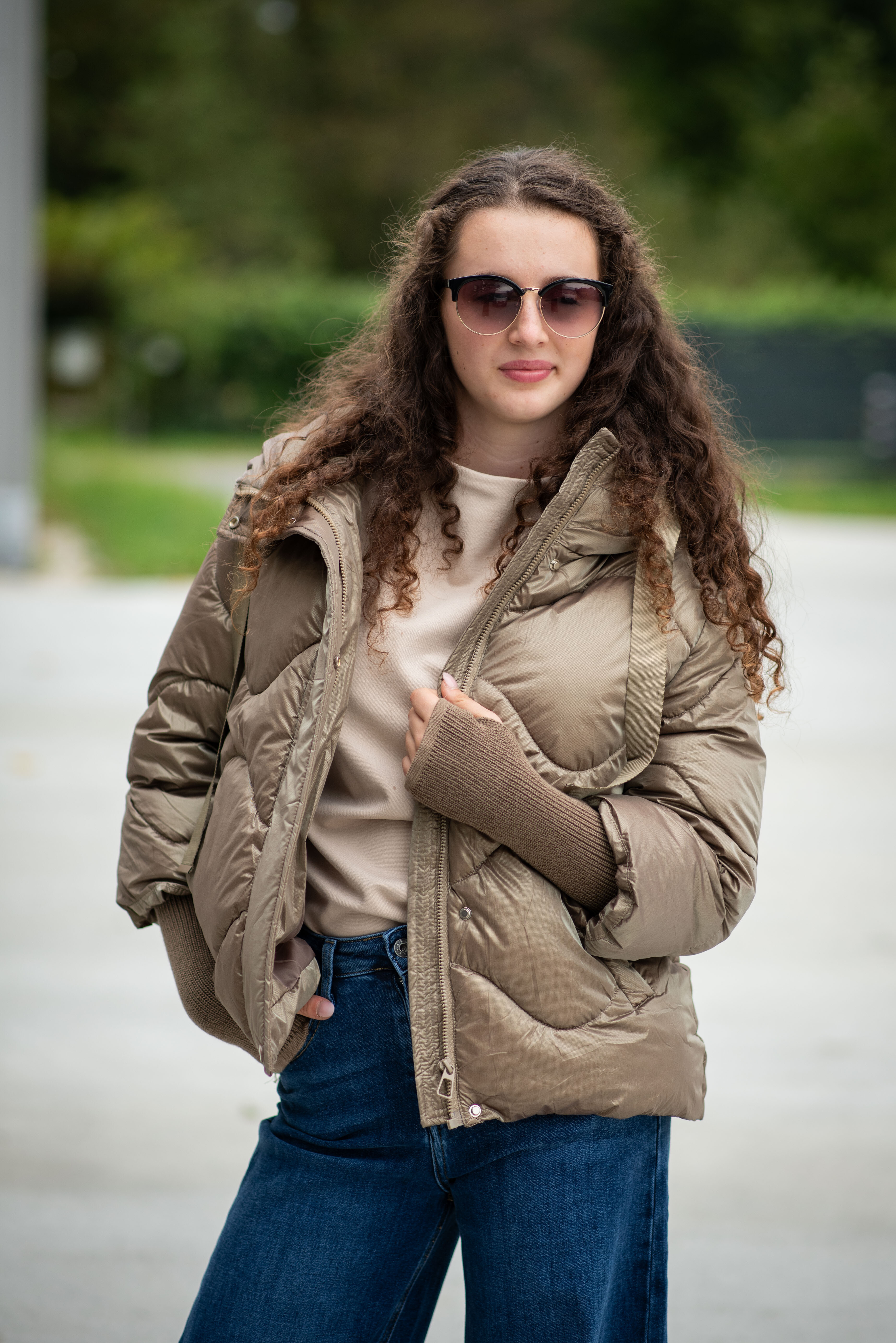 Krátká stylová bunda s kapucí, 3/4rukáv - zbývající délka doplněna úpletem. Přední kapsy jsou na druky. Možnost regulace stažení ve spodní části bundy. Dovoz Itálie