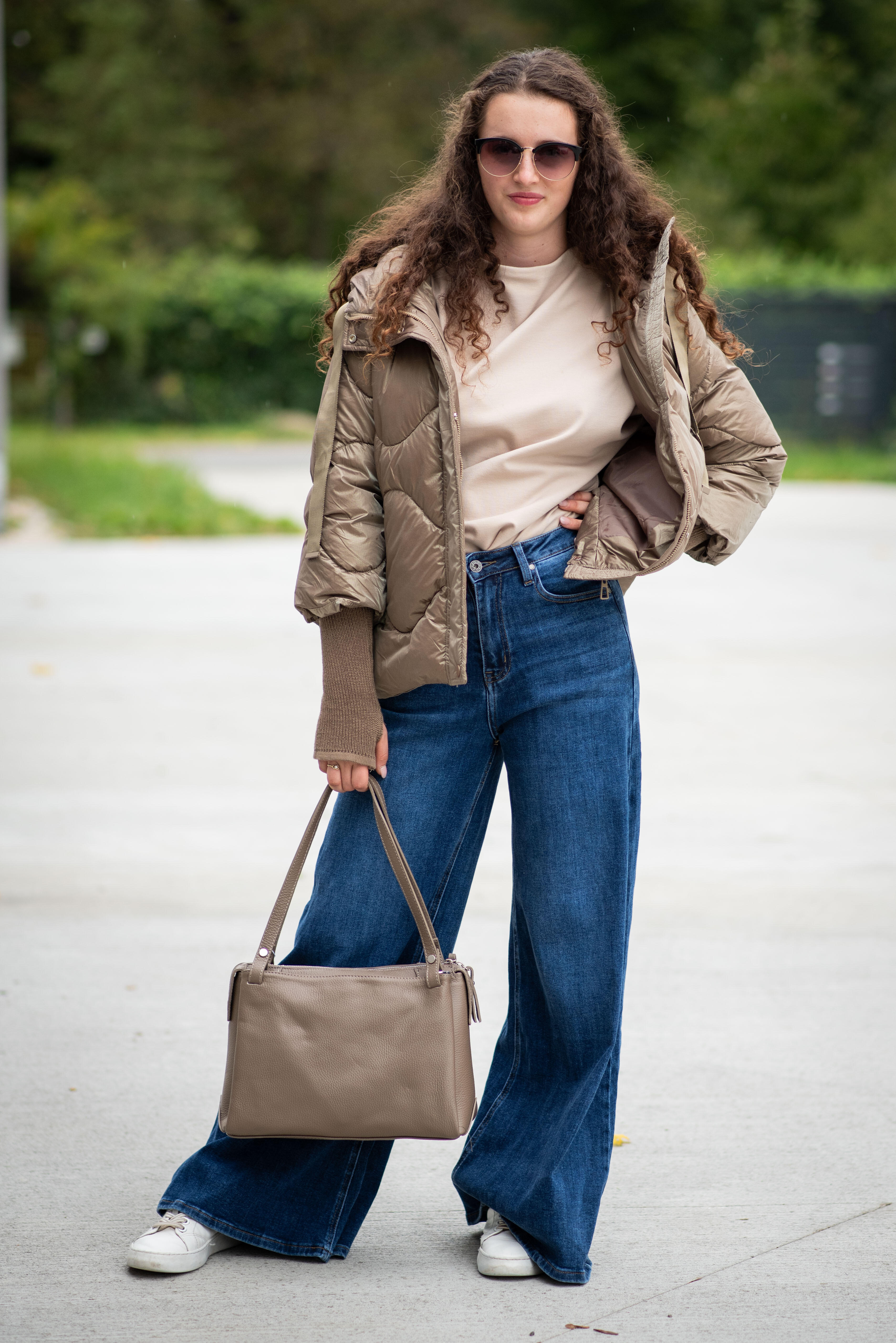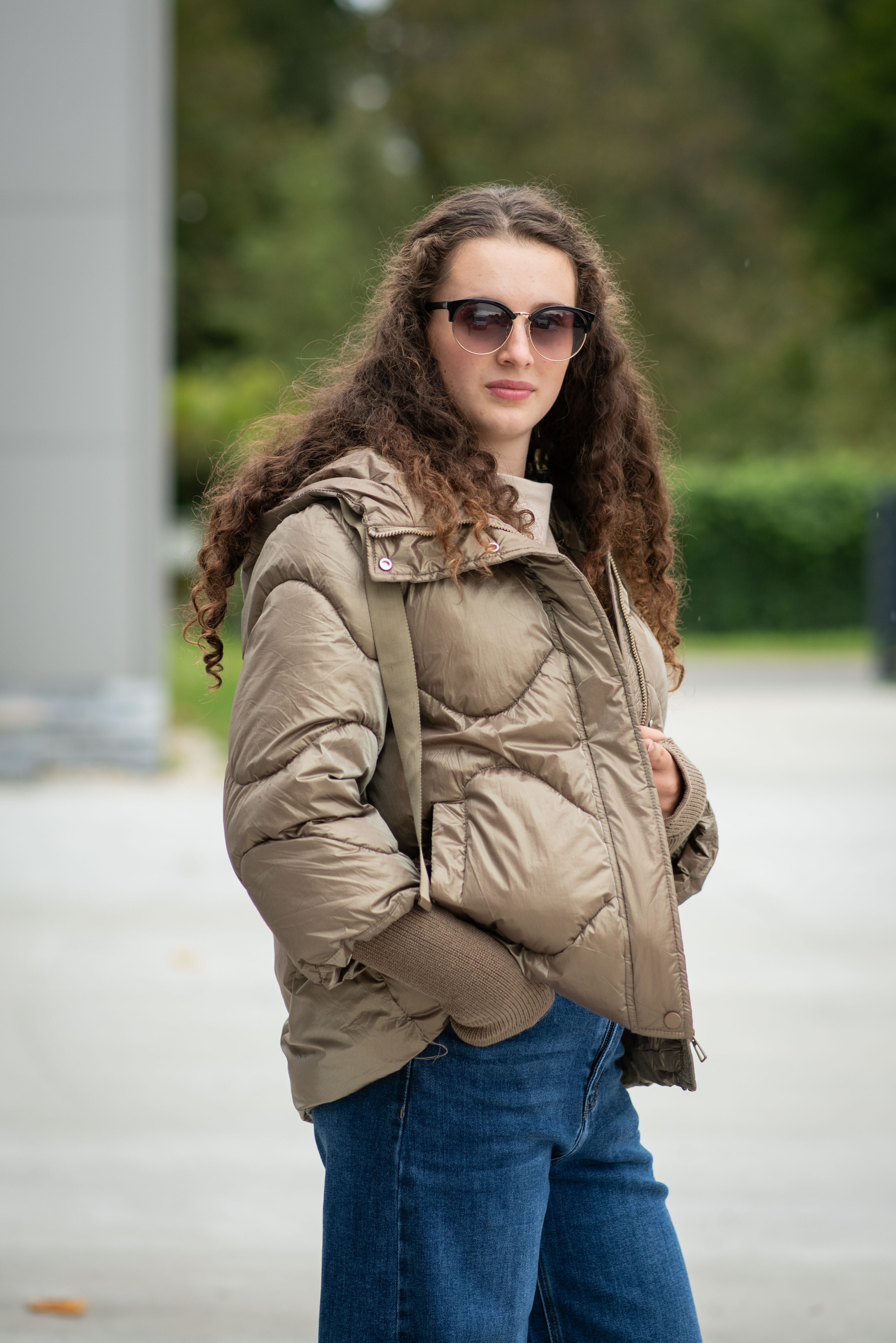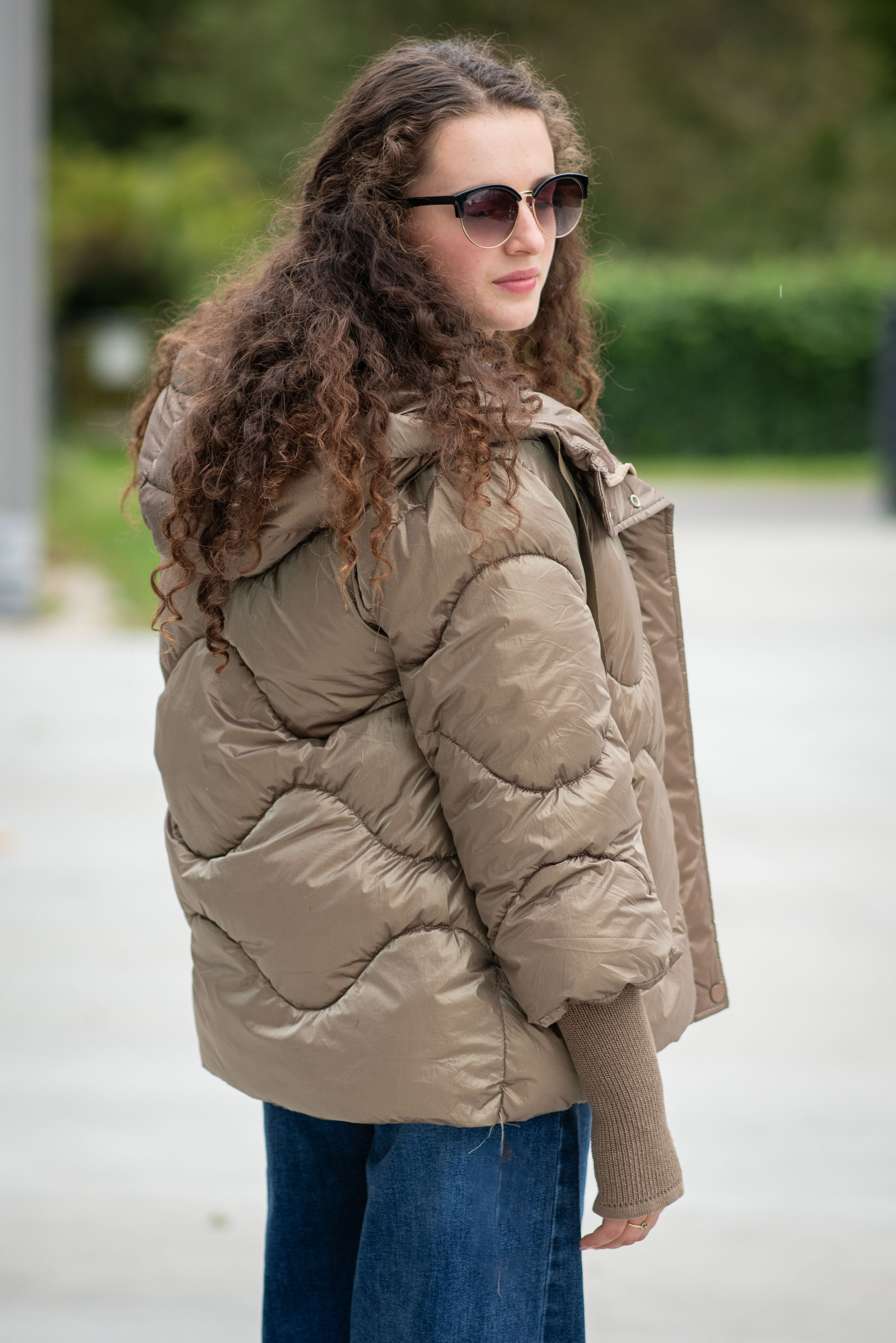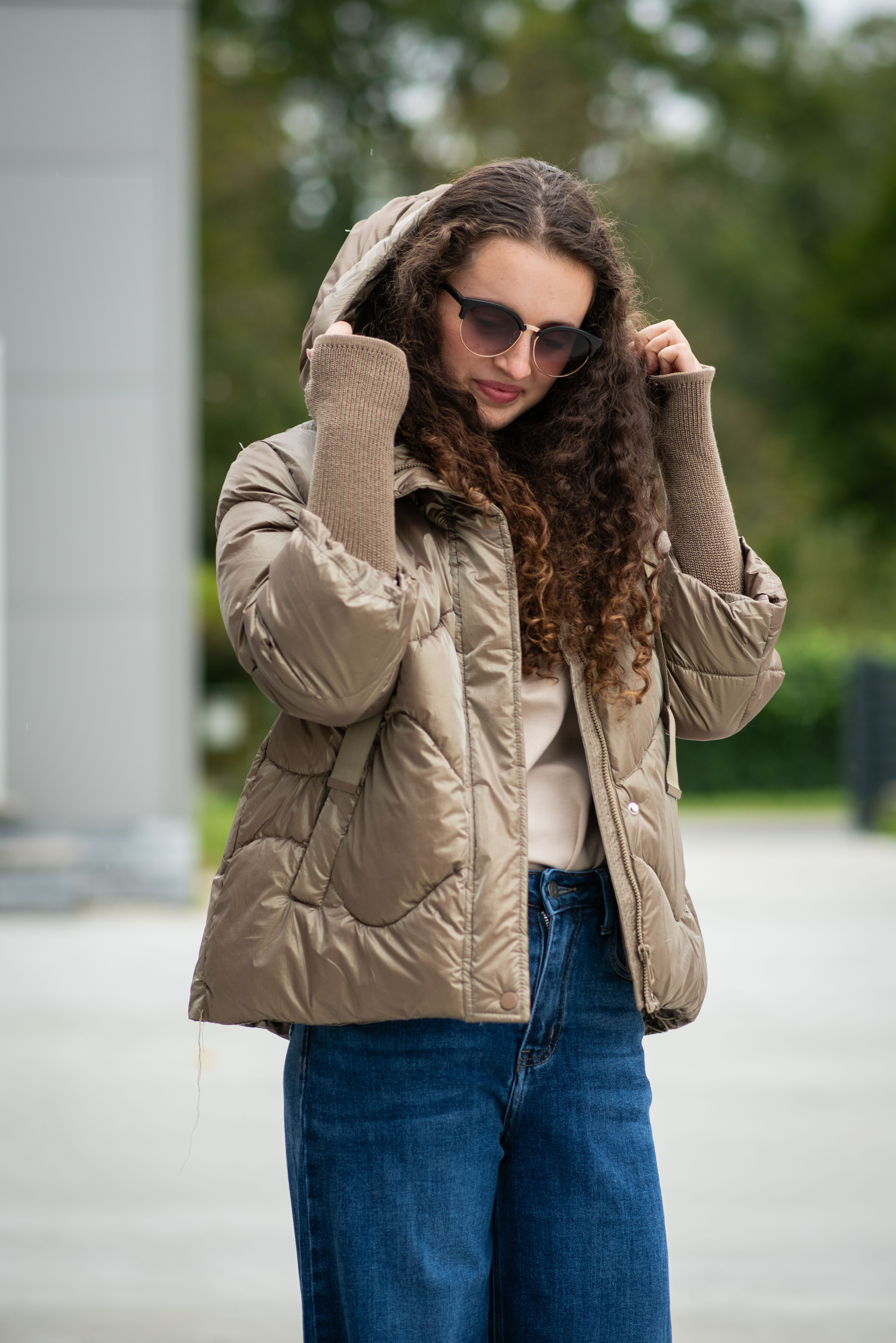 Krátká stylová bunda s kapucí, 3/4rukáv - zbývající délka doplněna úpletem. Přední kapsy jsou na druky. Možnost regulace stažení ve spodní části bundy. Dovoz Itálie