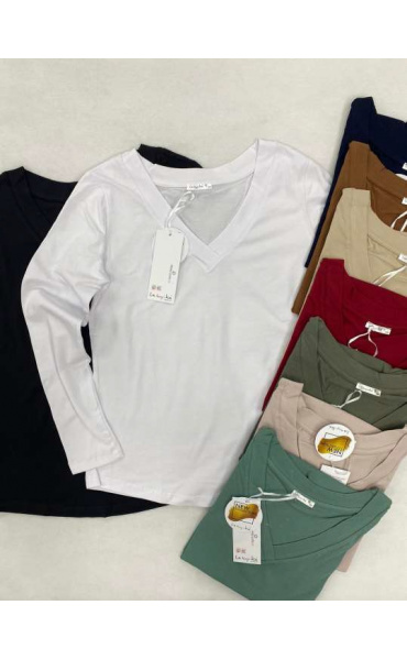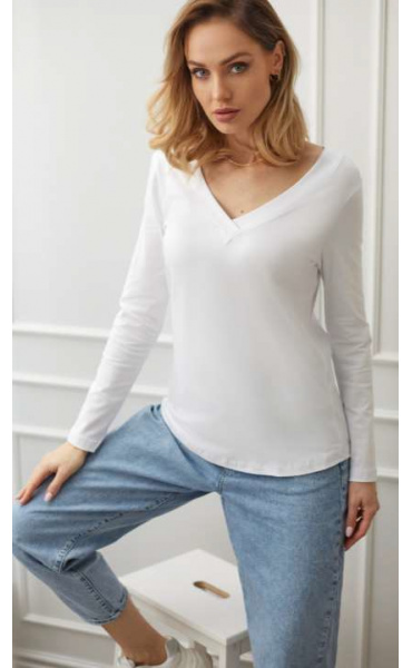 Módní triko s elegantním výstřihem do V, dlouhý rukáv.