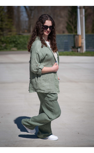 Lněné široké kalhoty 21773